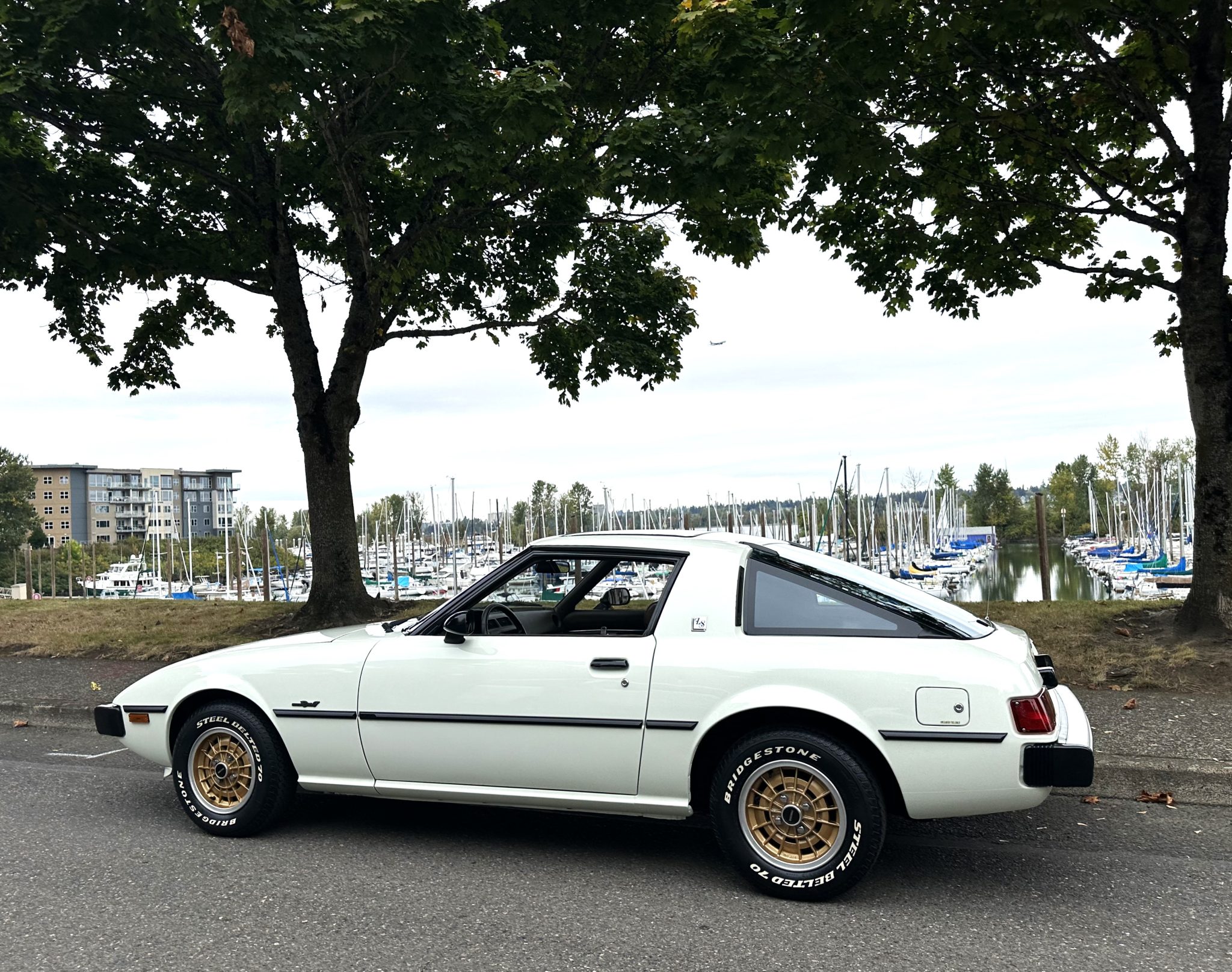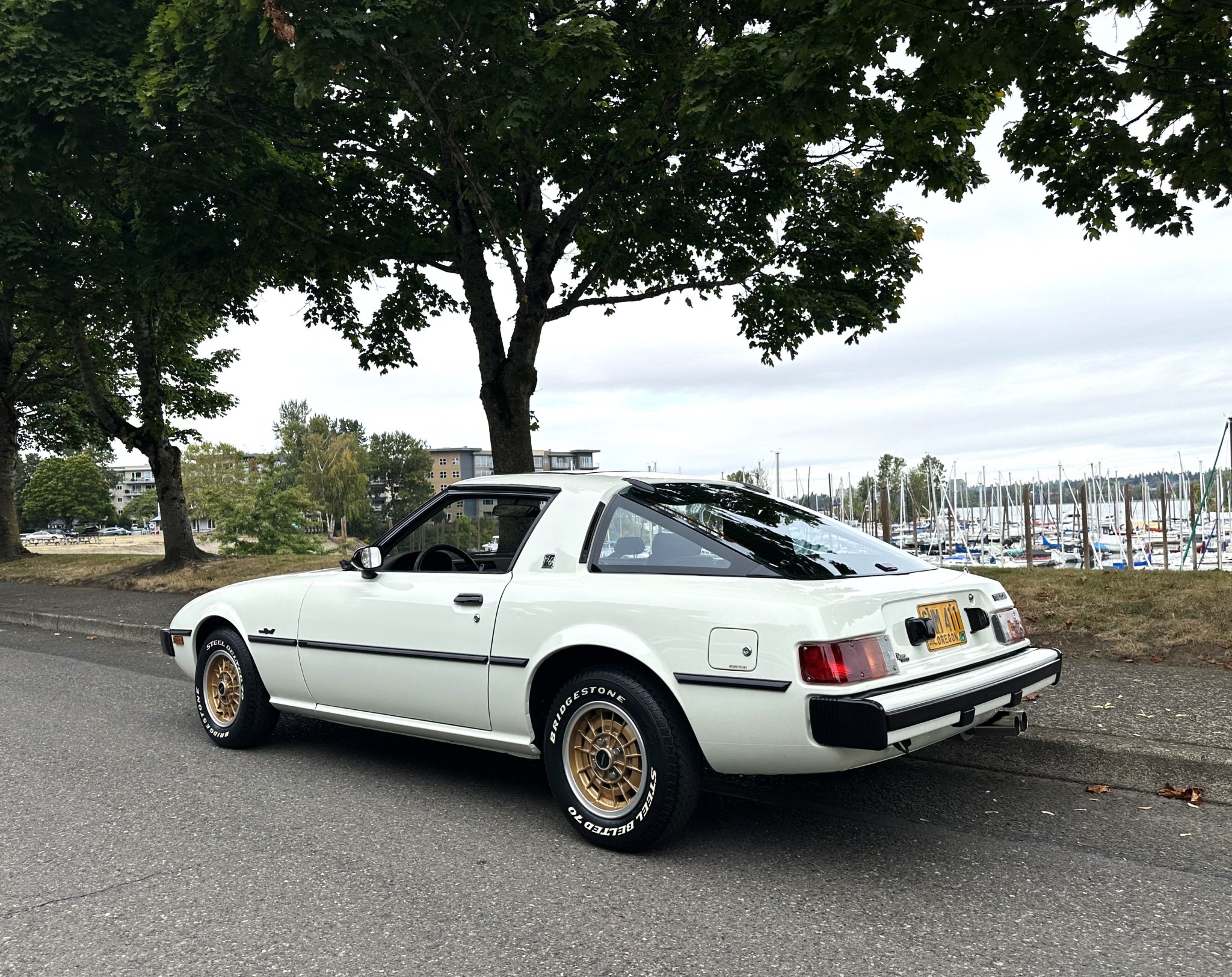 The 13″ gold-painted alloy wheels are mounted with Bridgestone Steel Belted 70 tires. Braking is handled by power-assisted front discs and rear drums.