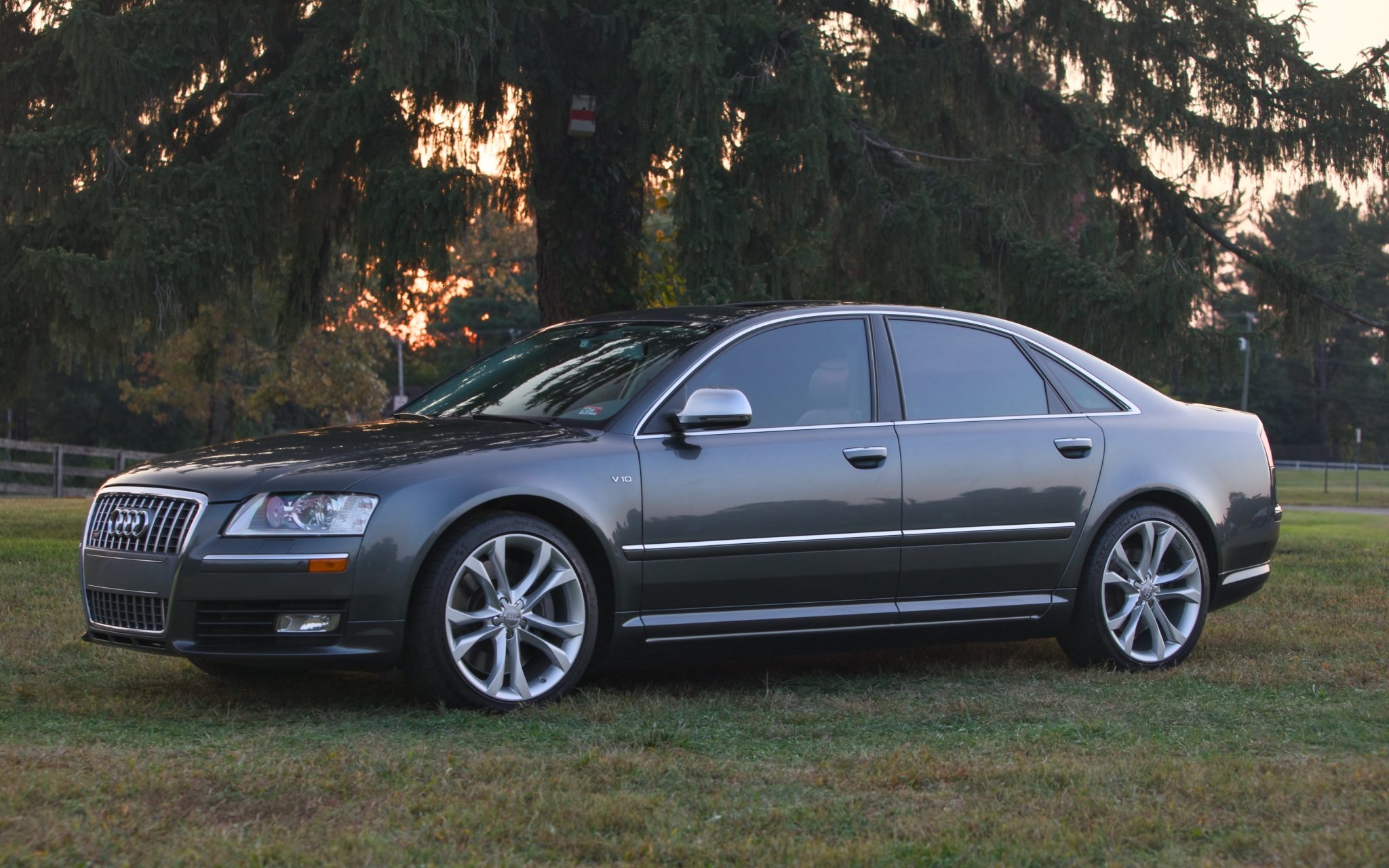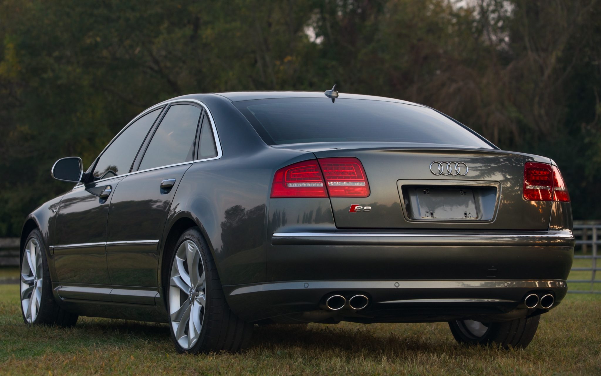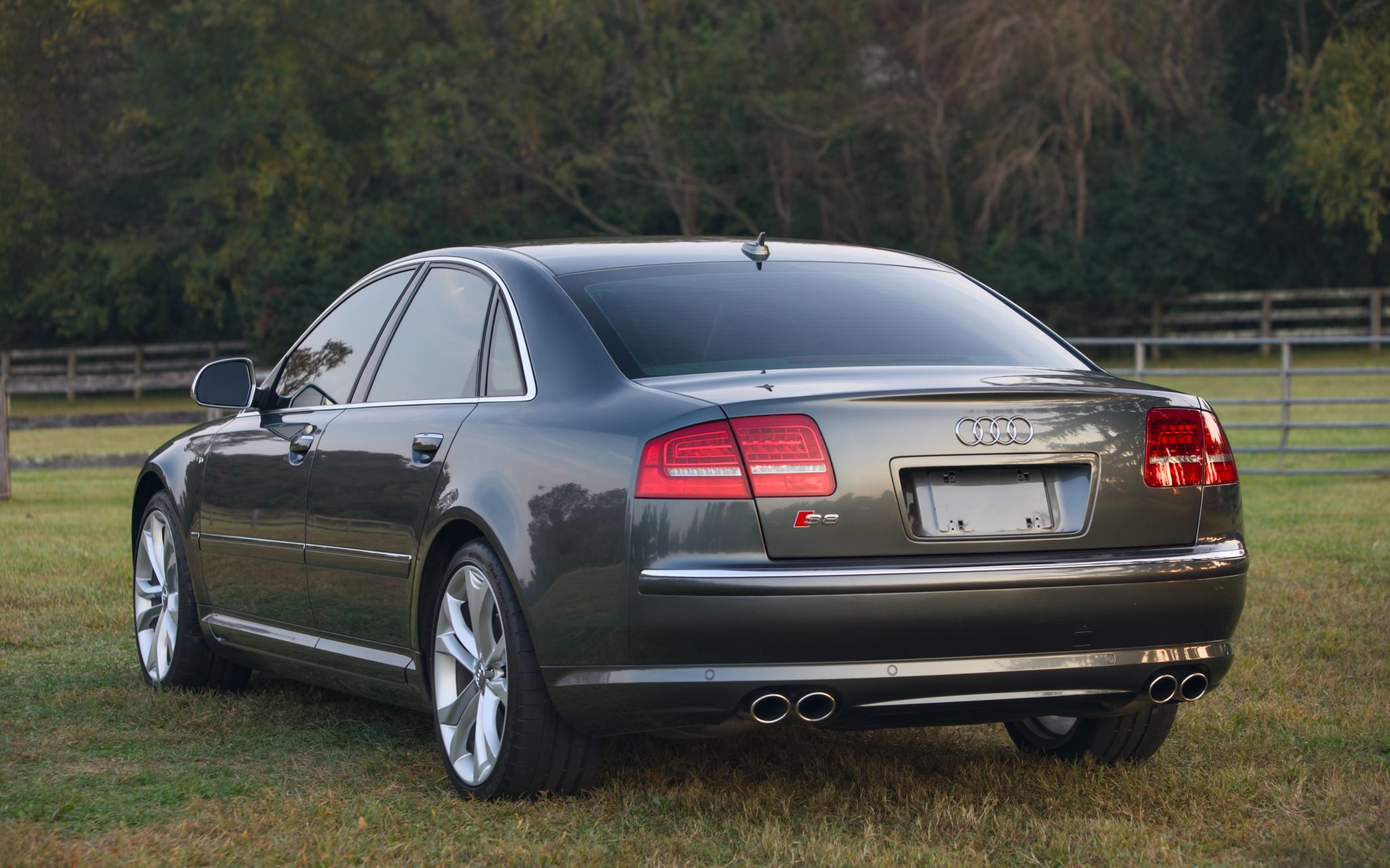 The 20″ double-spoke alloy wheels have been refinished and ceramic-coated, and they are mounted with Michelin tires. The car rides on an adaptive air suspension system, and stopping power is provided by four-wheel disc brakes. Equipment includes a tire-pressure monitoring system.