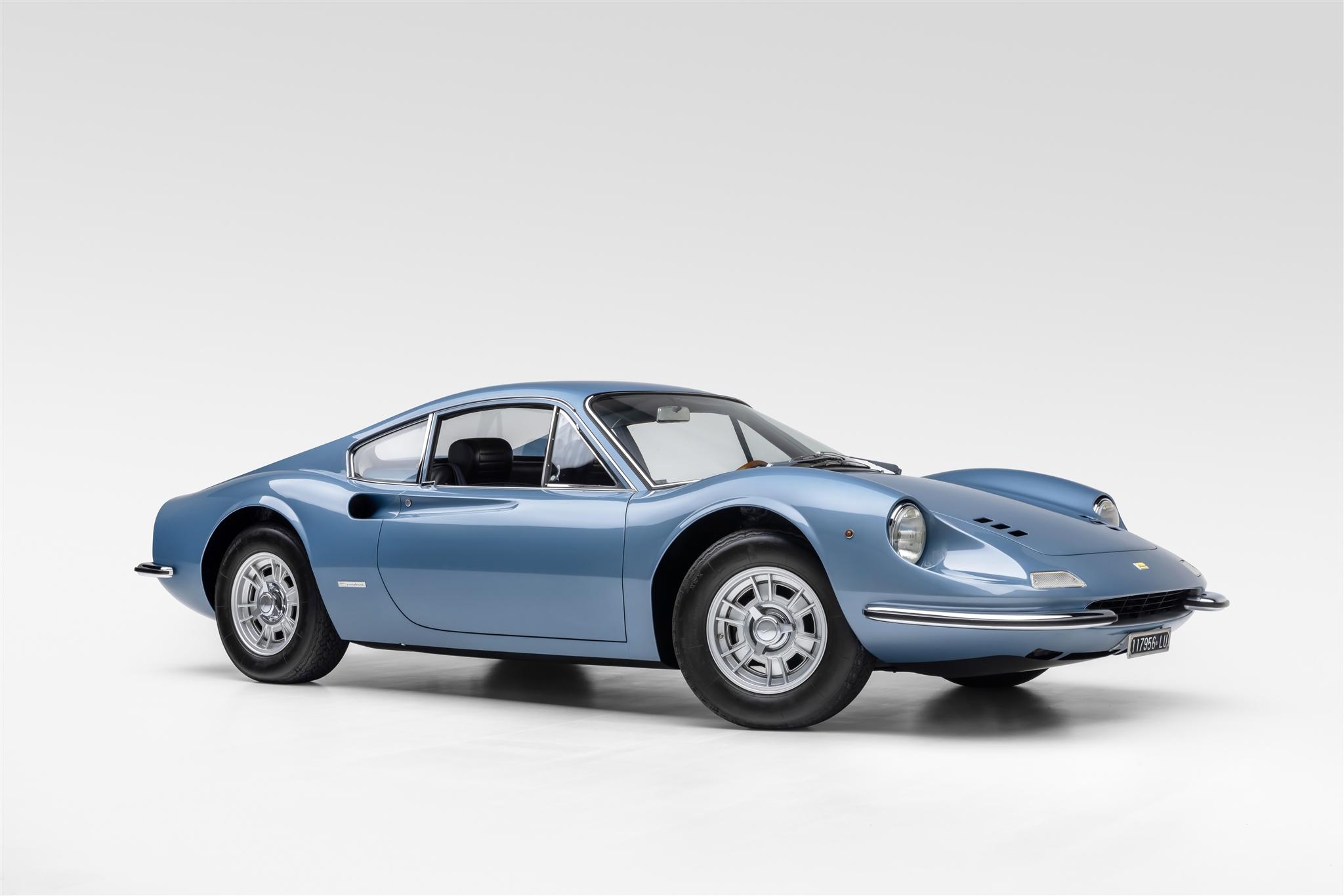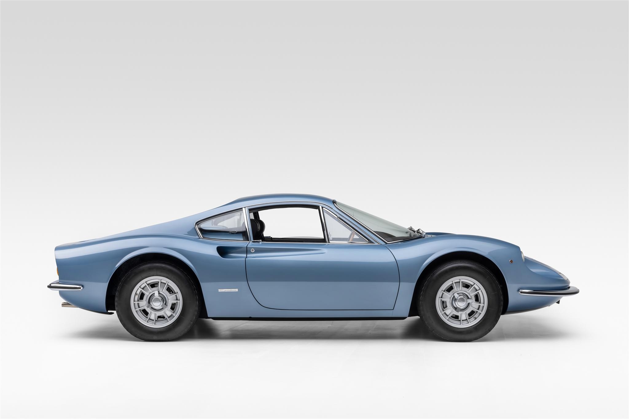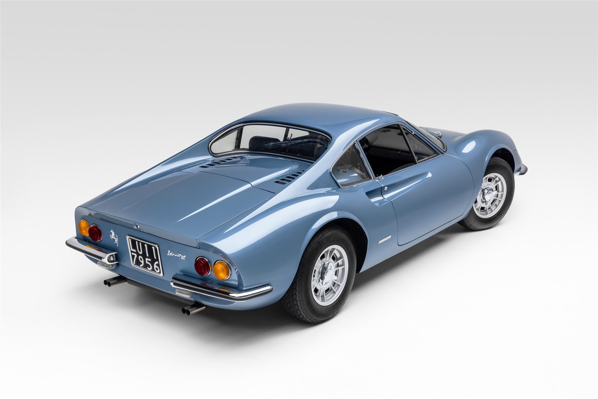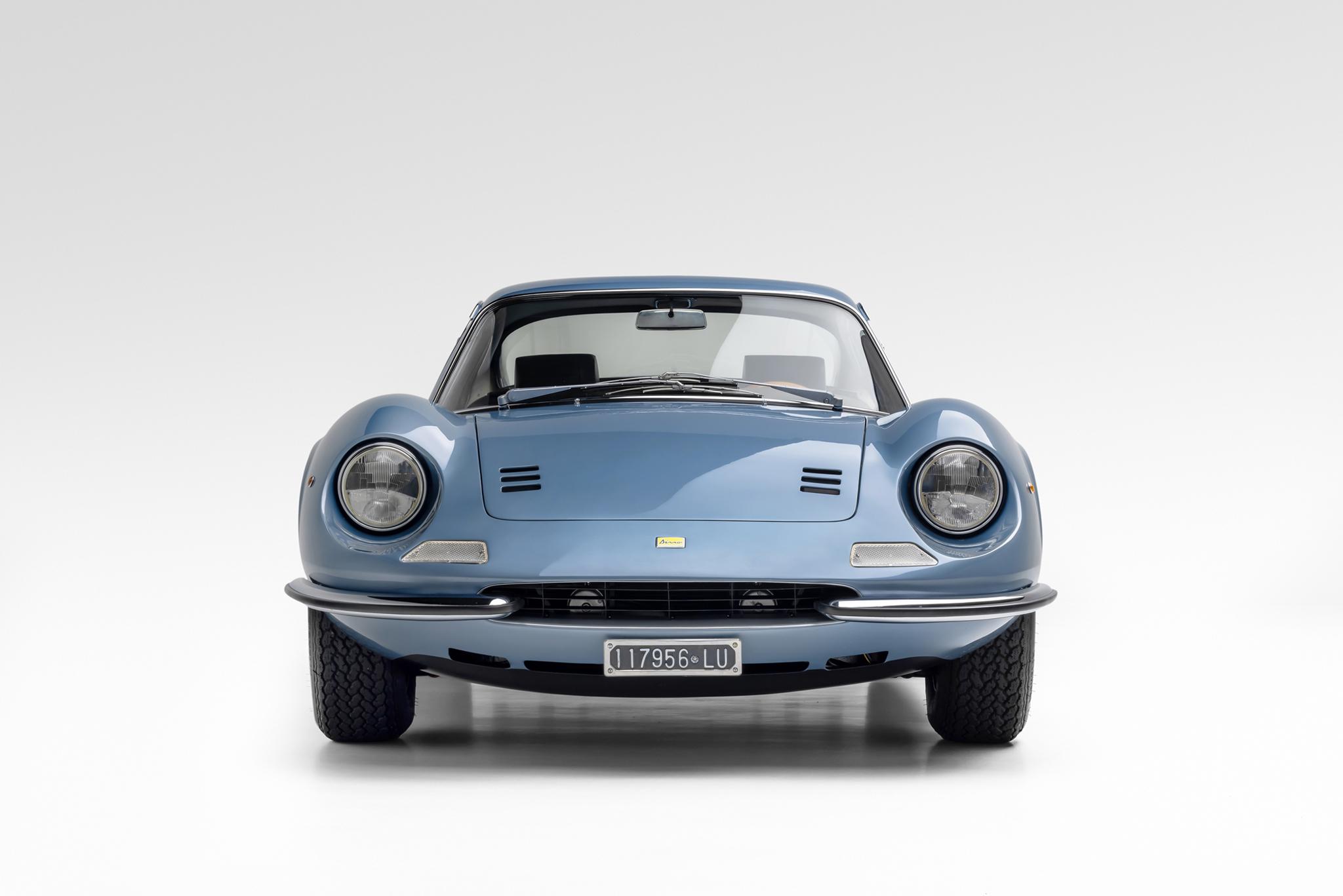 This example’s aluminum body was stripped to bare metal before being refinished in its original shade of Azzurro Metallizzato (106-A-32) during the refurbishment performed between 2017 and 2018 by Rosso Monza in Arcore, Italy. Features include open recessed headlights, an external alloy fuel-filler cap, six vents on each side of the engine decklid, an external trunk button, and quad exhaust outlets. Italian number plates are in place at front and rear and match the number listed in the car’s original registration booklet.