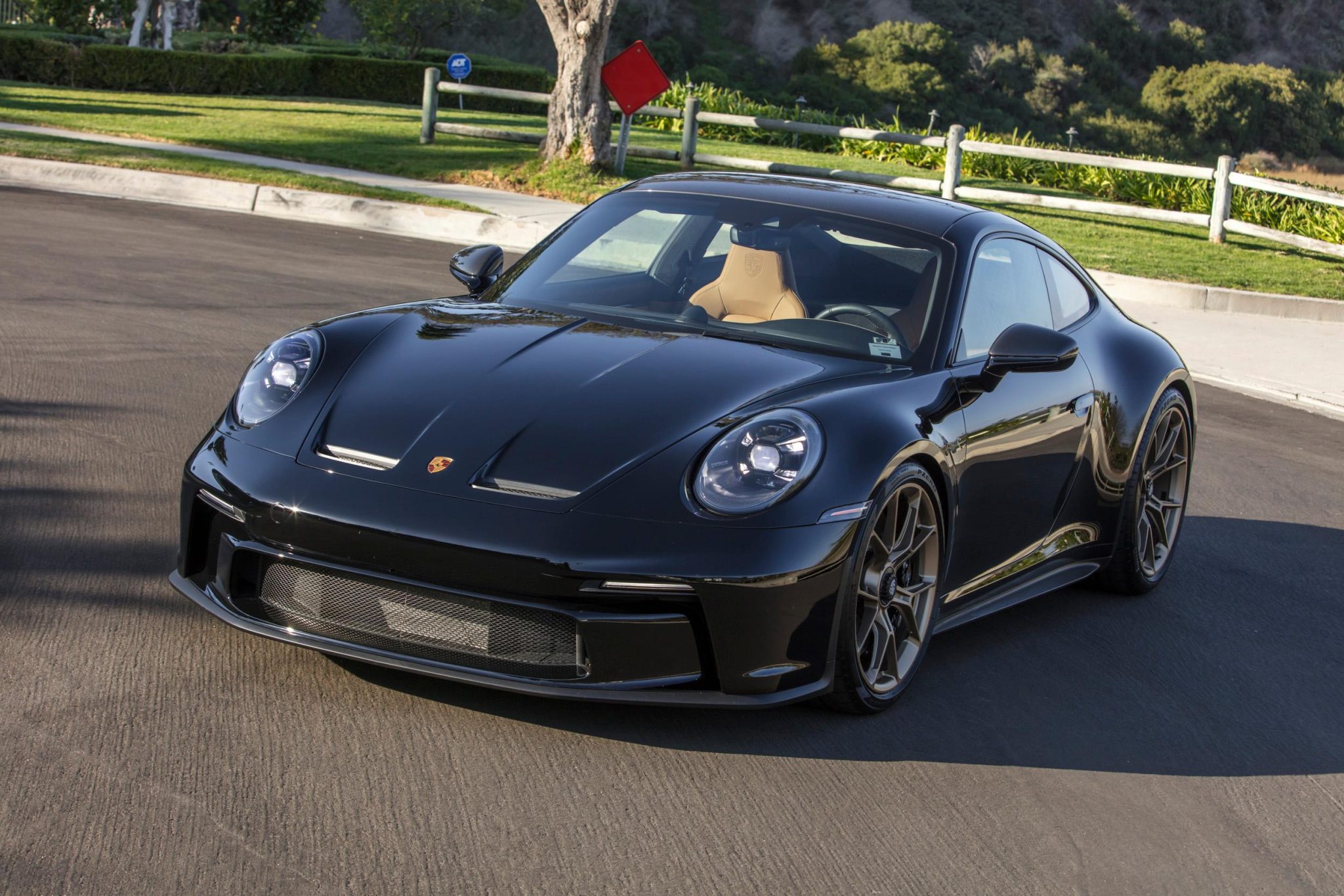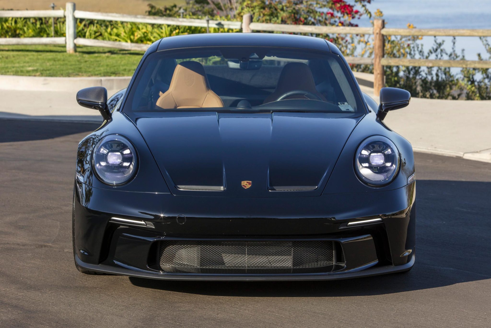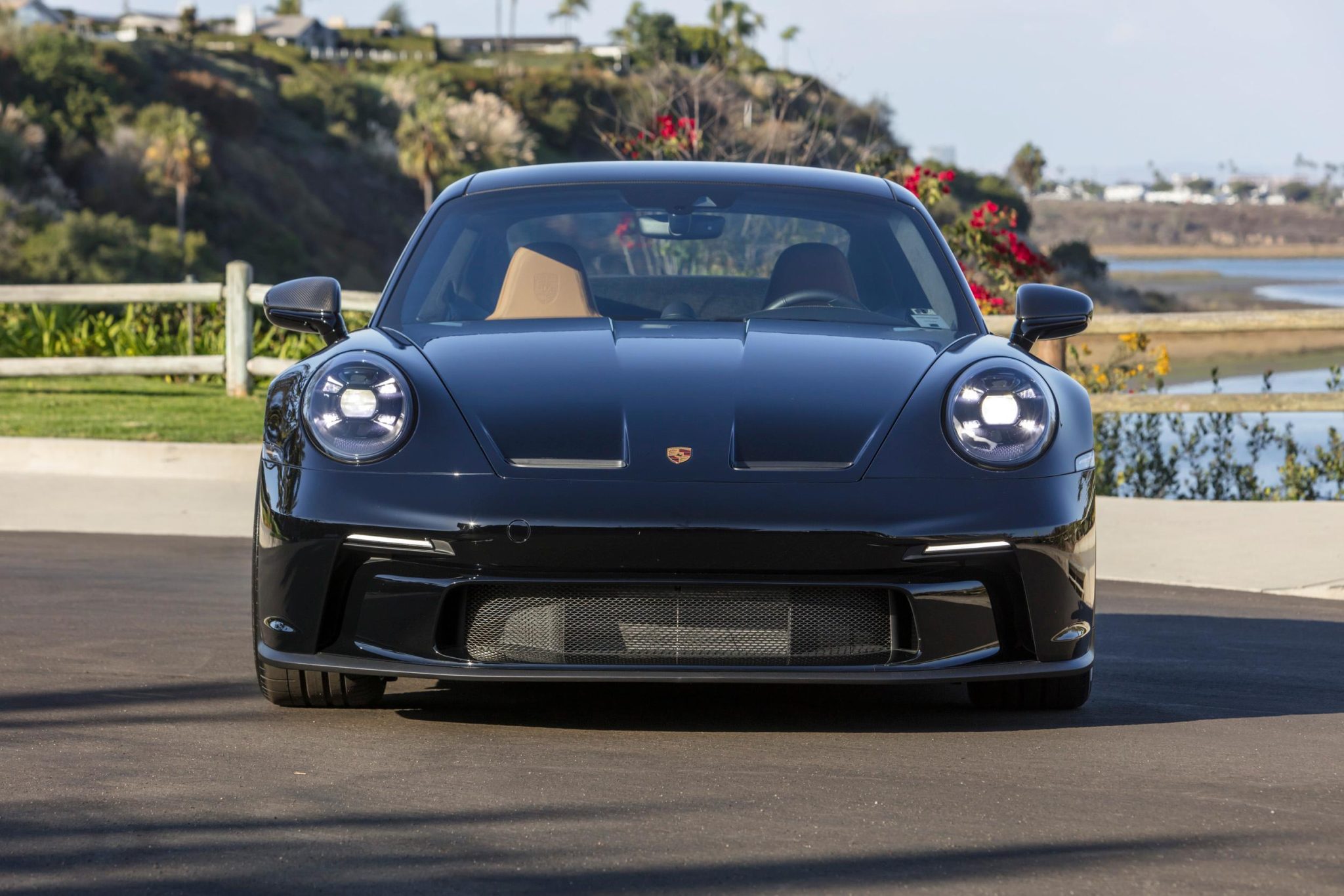The 20″ front and 21″ rear GT3 center-lock wheels are finished in Satin Neodyme and wrapped with Pirelli P Zero Corsa tires measuring 255/35 and 315/30, respectively. The car is equipped with an optional front axle lift system in addition to rear-axle steering, and braking power is provided by Porsche Ceramic Composite Brakes (PCCB) with High Gloss Black calipers.
