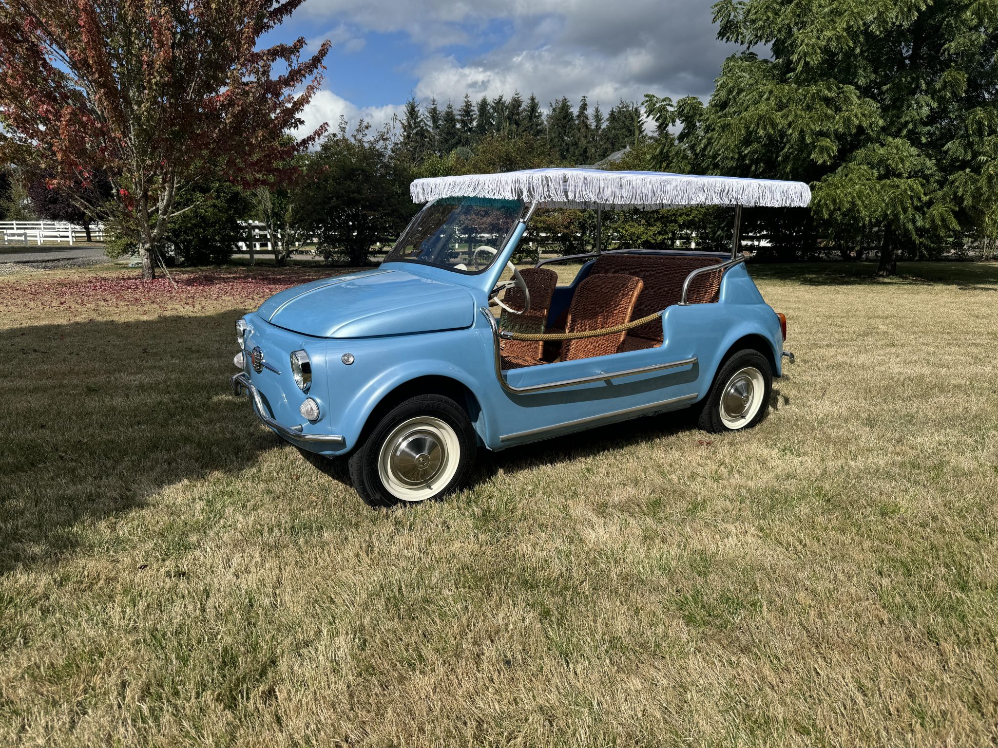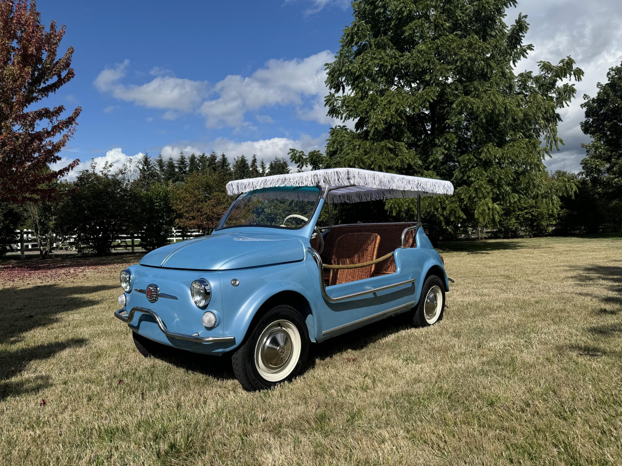 The 12″ steel wheels are mounted with 125R12 Datex Classic tires. Braking is handled by drums at all four corners.