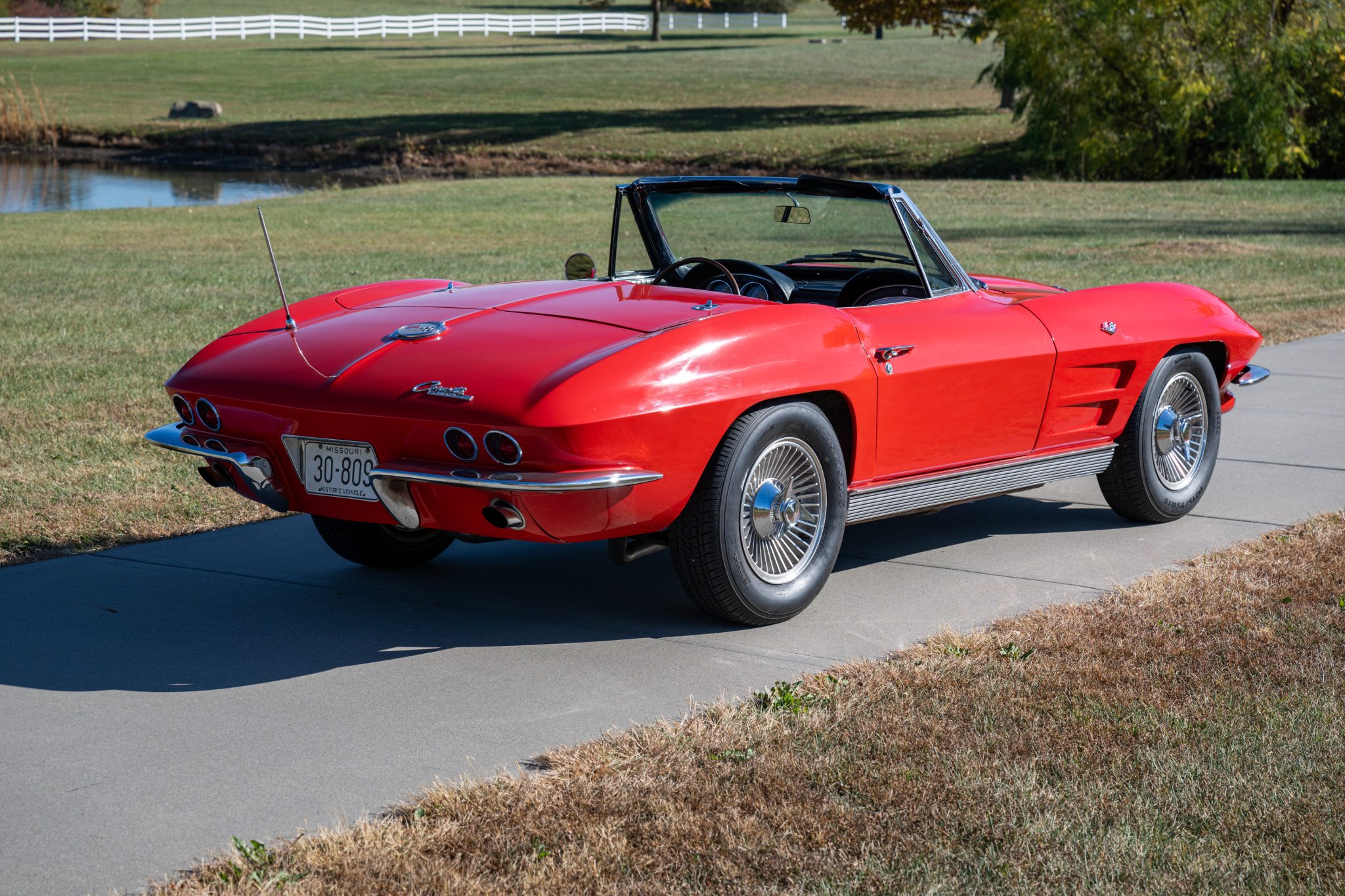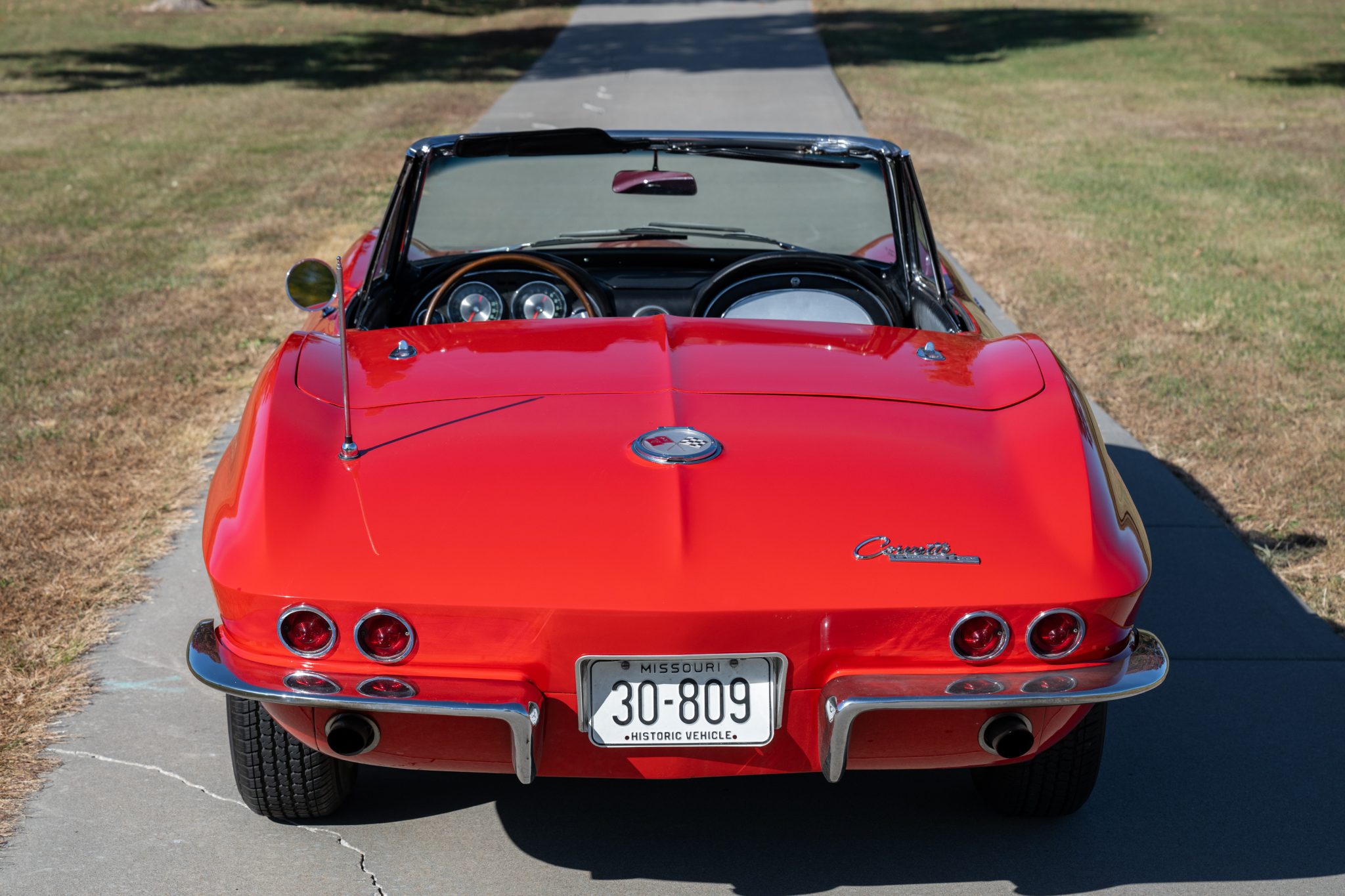 The 15″ turbine-style wheels wear three-eared knock-off spinners and are mounted with an older set of 215/75 Triumph I tires that should be replaced. The C2 was the first Corvette to offer fully independent suspension, with upper and lower control arms at the front and a three-link setup with a transverse leaf spring at the rear. Braking is handled by four-wheel drums.