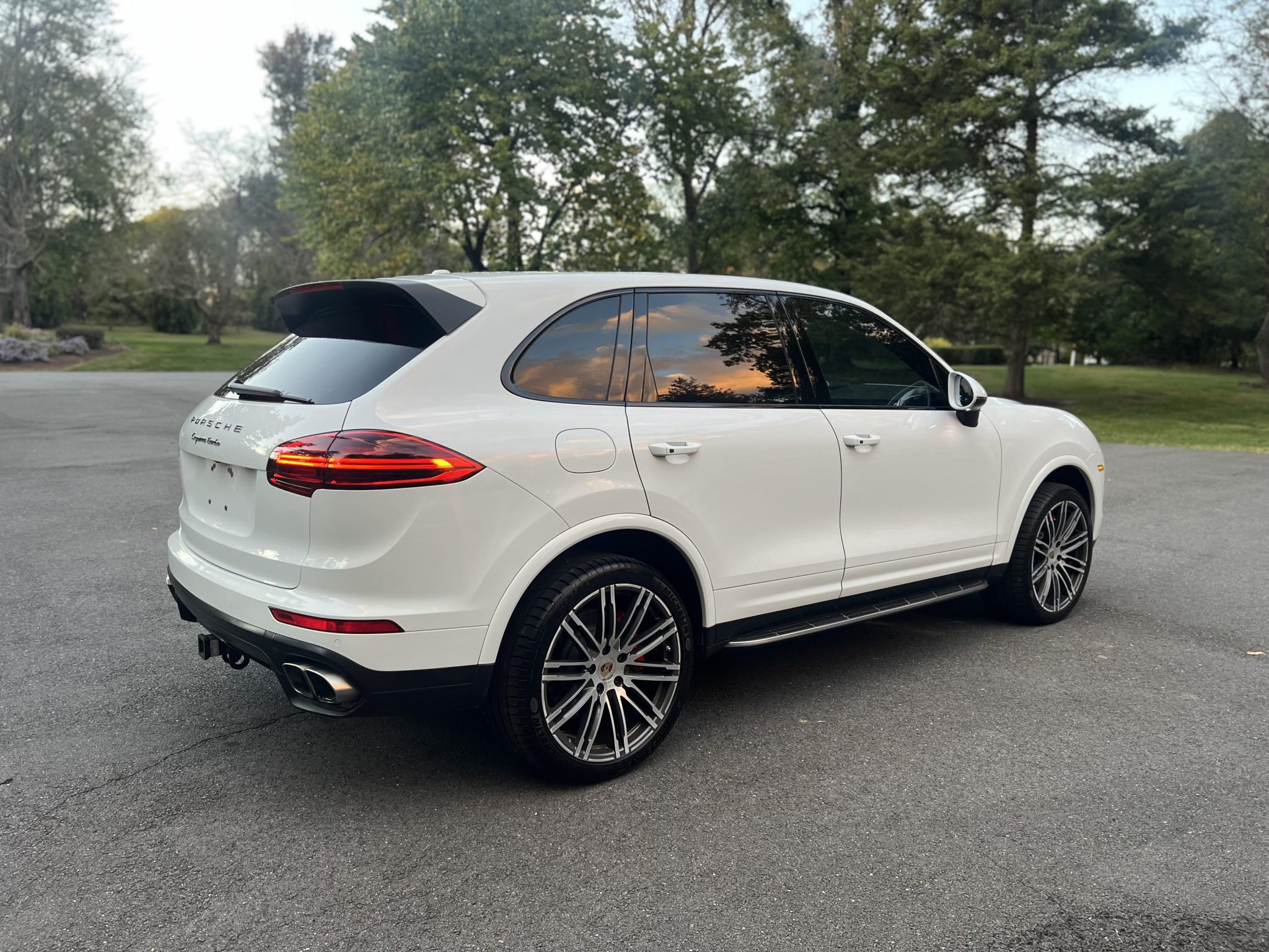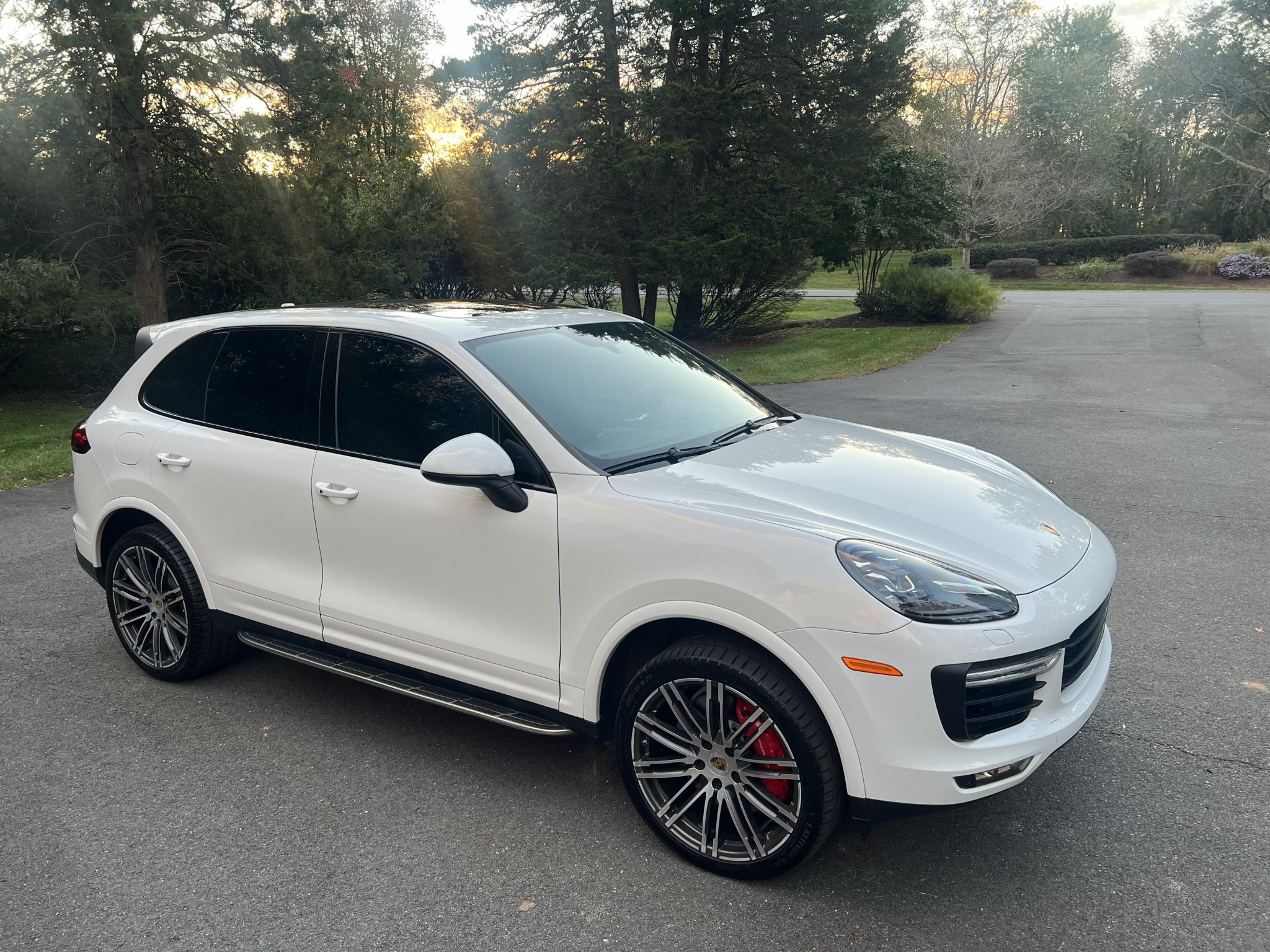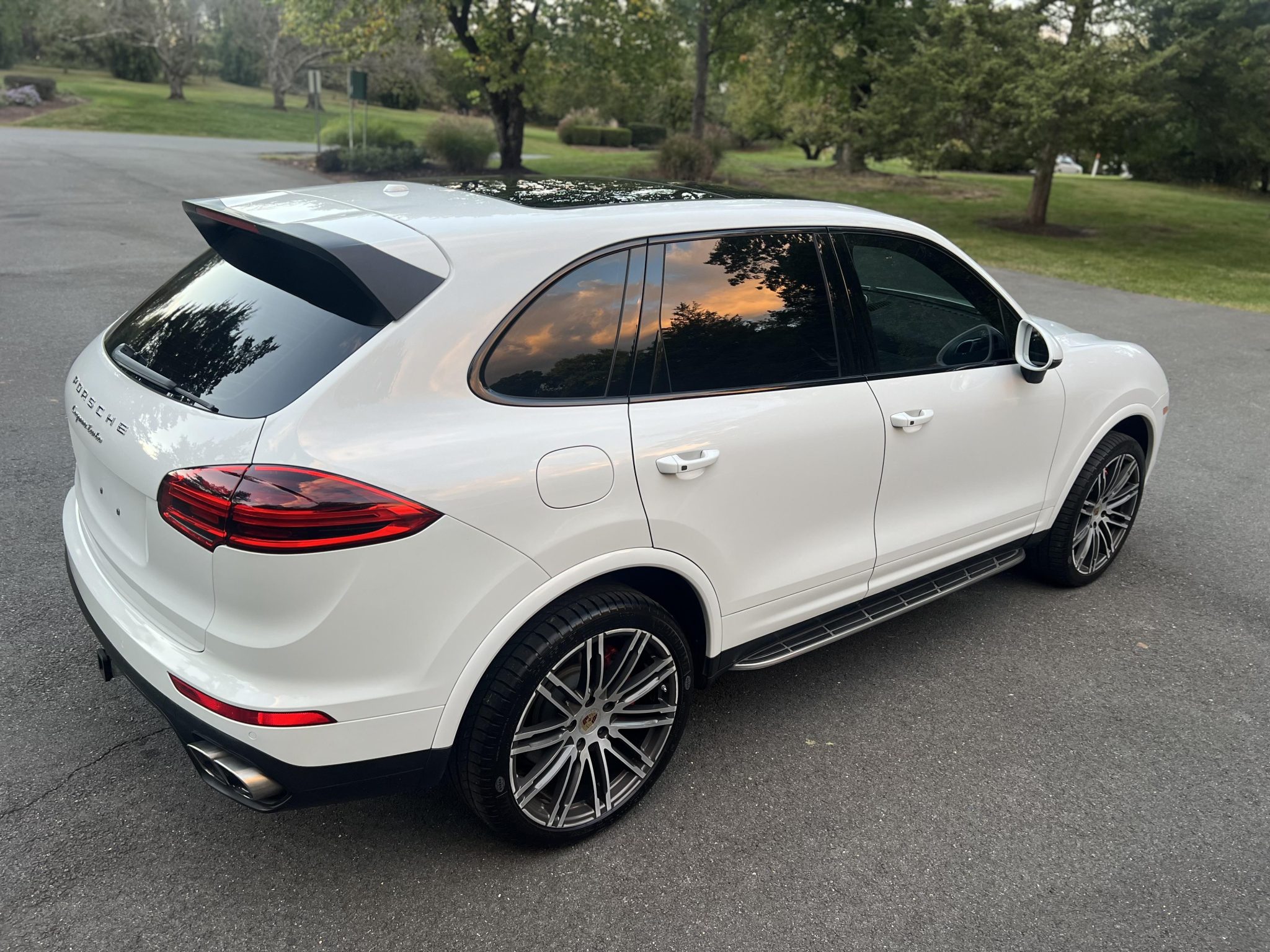 The 21″ 911 Turbo Design alloy wheels are mounted with 295/35 Michelin Latitude Sport 3 tires. The vehicle is equipped with an adjustable air suspension, Porsche Active Suspension Management (PASM), and Power Steering Plus. Stopping power is provided by red-finished six-piston front and four-piston rear brake calipers over ventilated rotors at each corner.