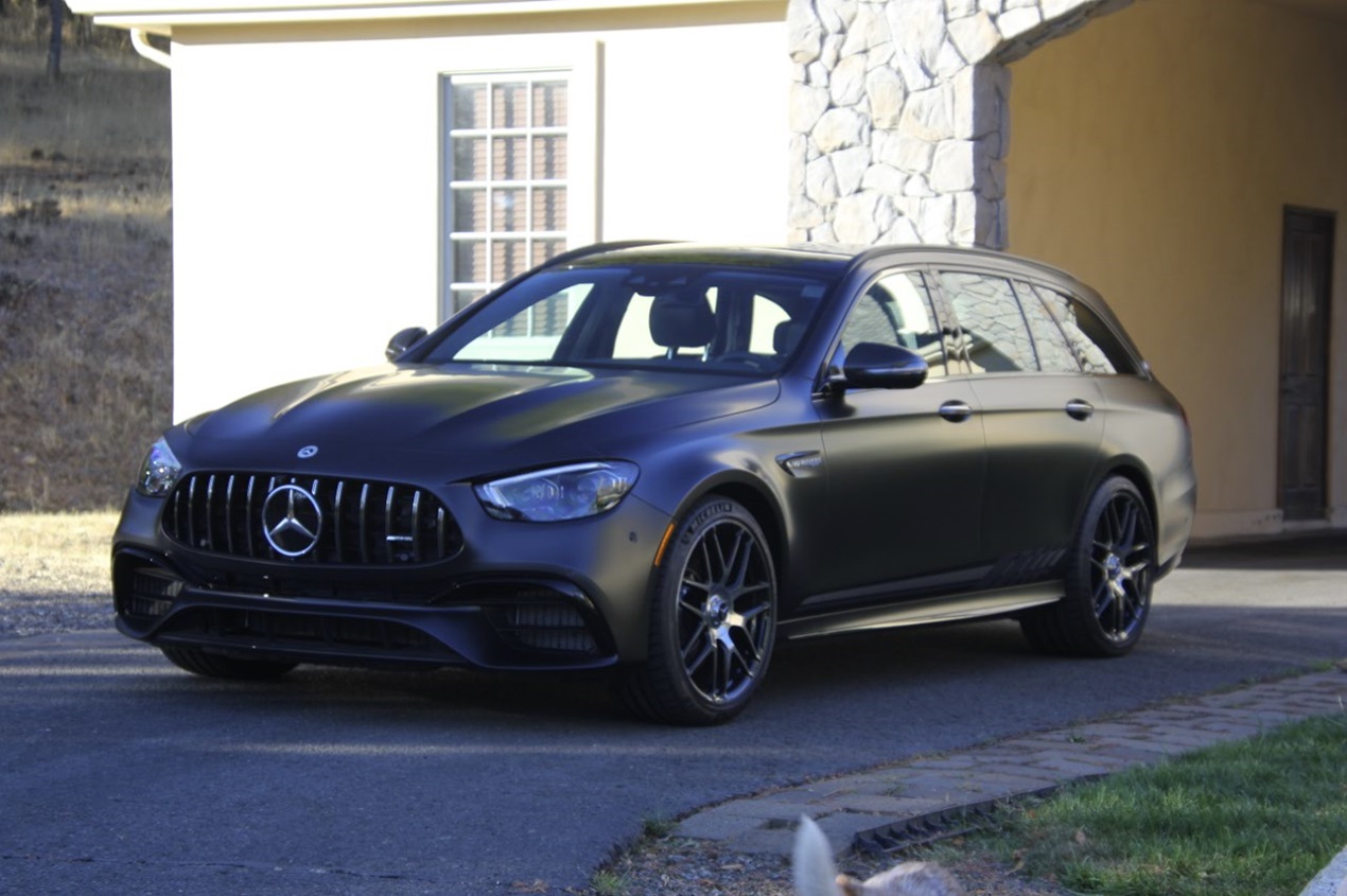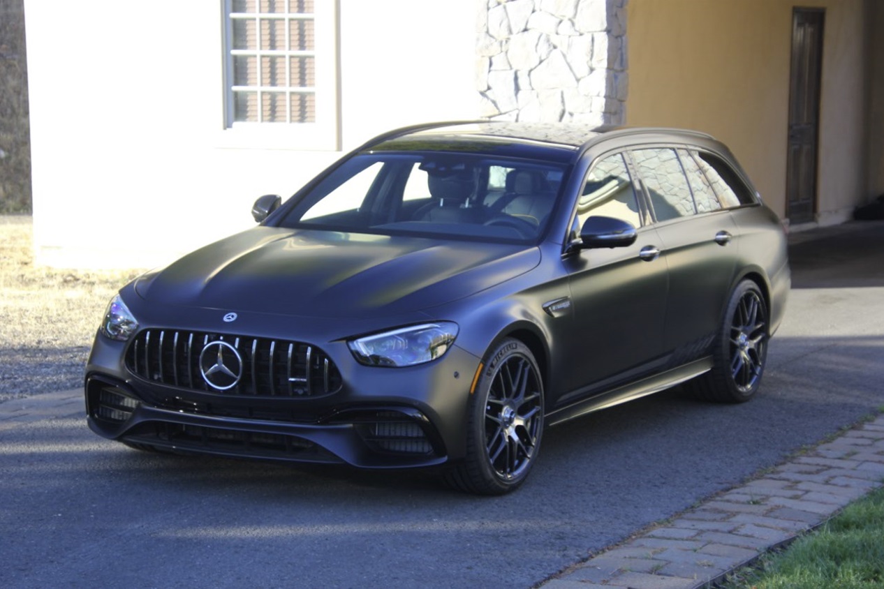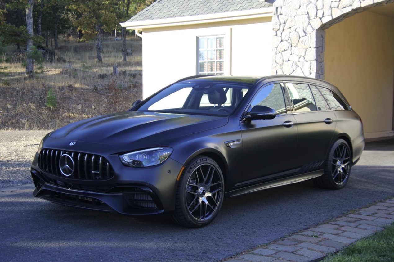 The 20″ AMG forged cross-spoke wheels are mounted with Michelin tires. The car is equipped with an Air Body Control AMG Sport Suspension and an Electronic Stability Program (ESP). Stopping power is provided by black-finished AMG-branded brake calipers over cross-drilled and slotted rotors at all four corners.