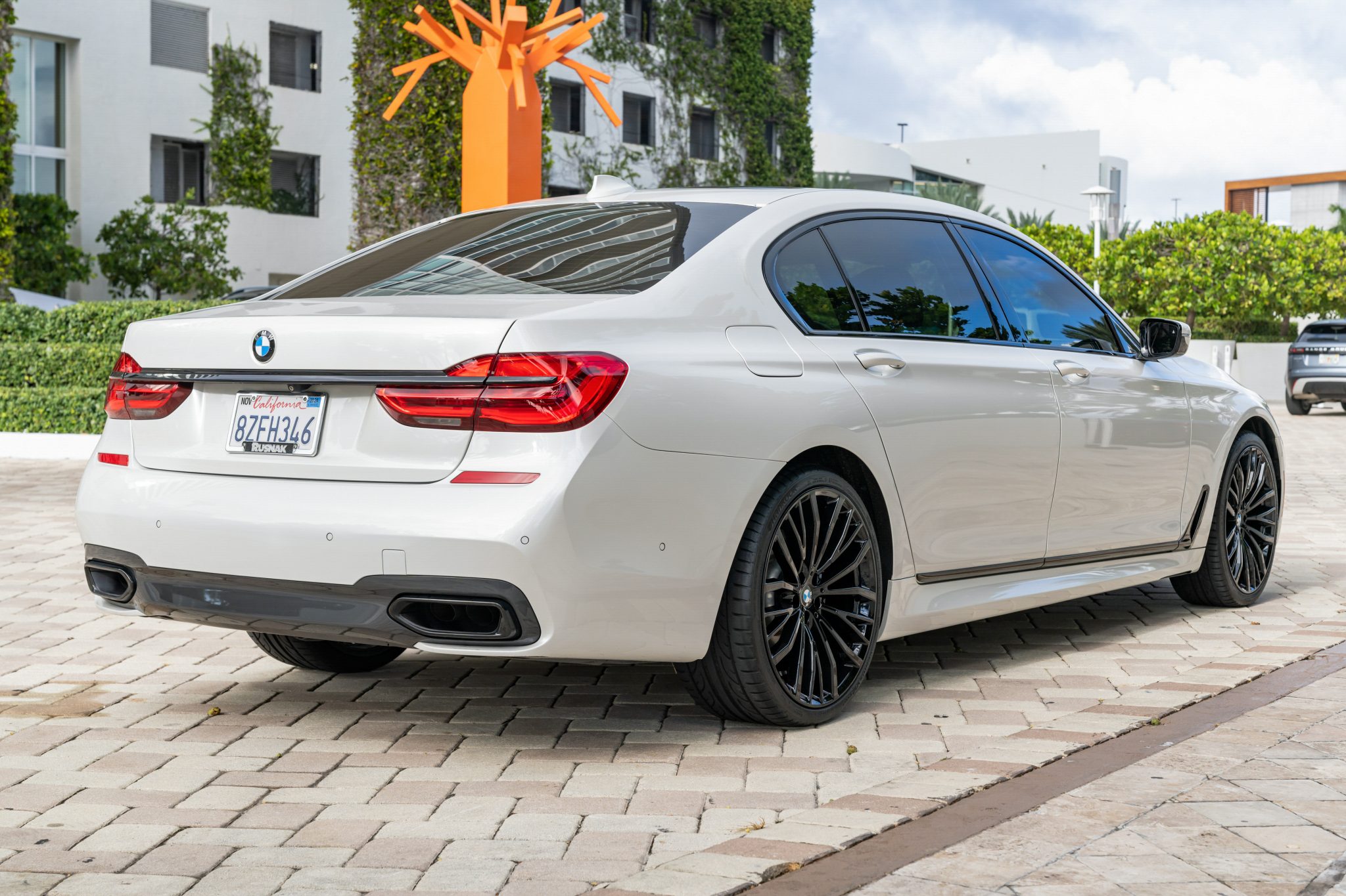 The 21″ Style 687 alloy wheels have been powder-coated in black and were fitted with Hankook tires in 2023. The car is equipped with an adaptive air suspension and Dynamic Damper Control. Stopping power is provided by ventilated discs at each corner.