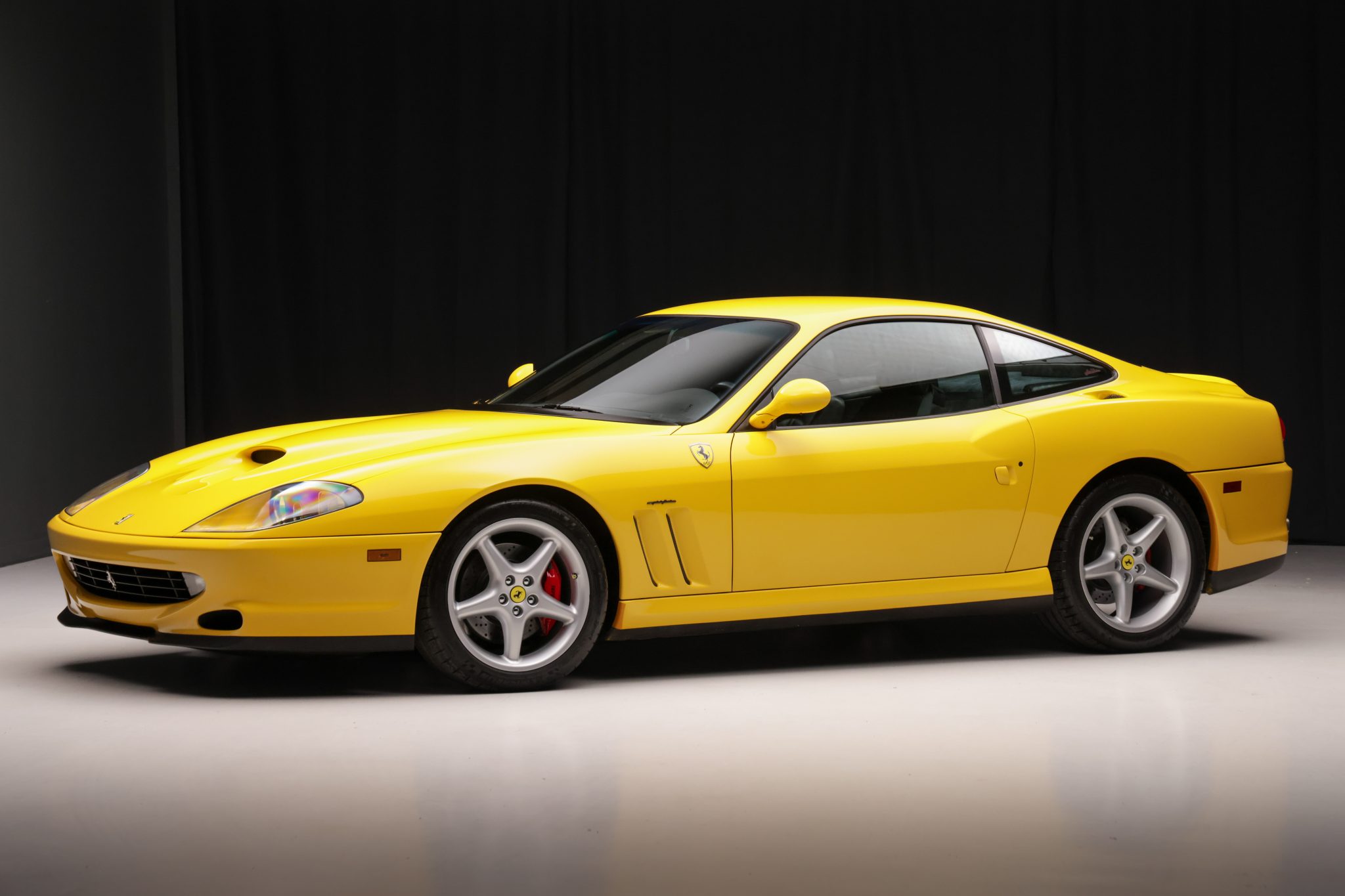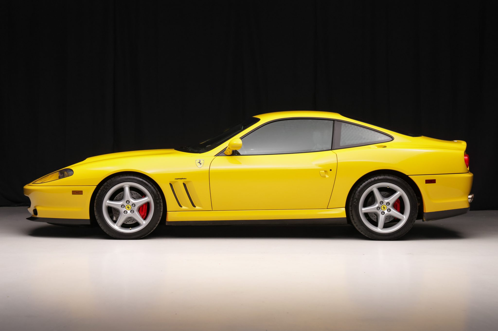 The 18″ five-spoke alloy wheels are mounted with Michelin Pilot Super Sport tires, which show date codes from 2023 and 2024. Braking is handled by red-finished Ferrari-branded calipers over cross-drilled and ventilated rotors at all four corners.