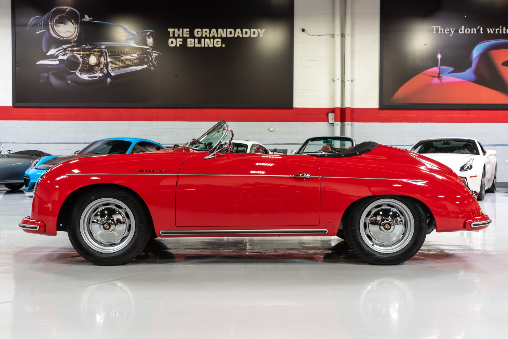 The 15″ Vintage 190 wheels wear chrome-finished hubcaps with full-color Porsche-crest centers and are mounted with 195/65 MOMO Outrun M20 Pro tires. Stopping power is provided by four-wheel disc brakes.