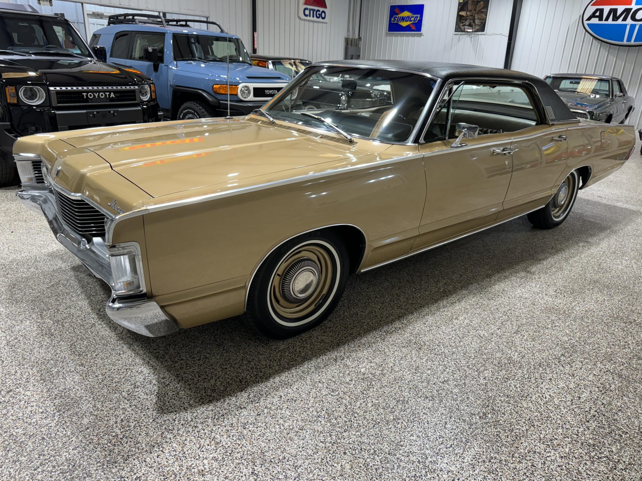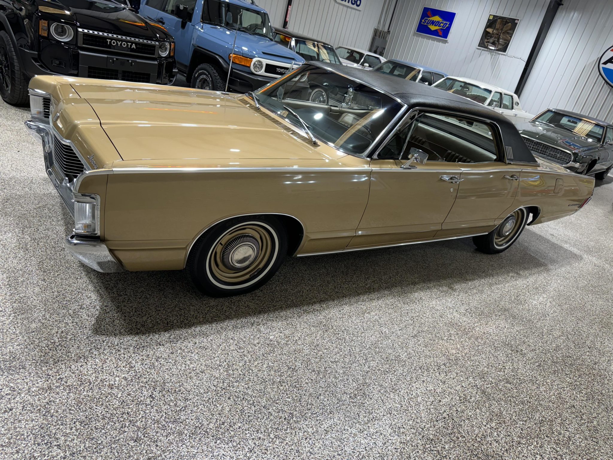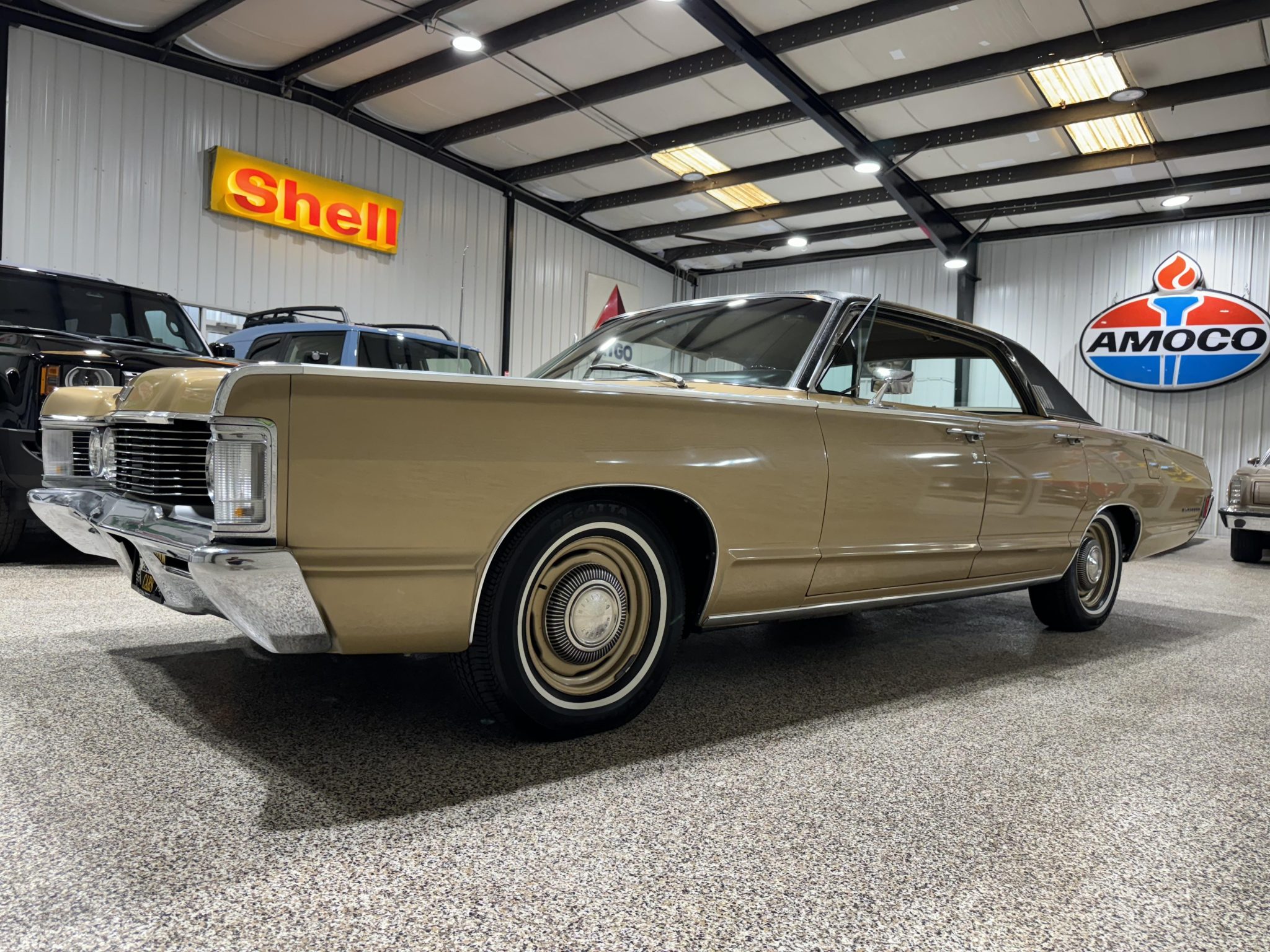 Body-color 15″ steel wheels wearing Mercury-branded turbine-style hubcaps are mounted with 215/75 Goodyear Regatta whitewall tires. The steering is power assisted, as are the front disc and rear drum brakes.