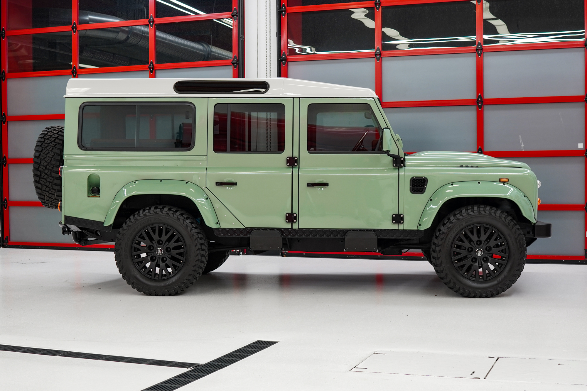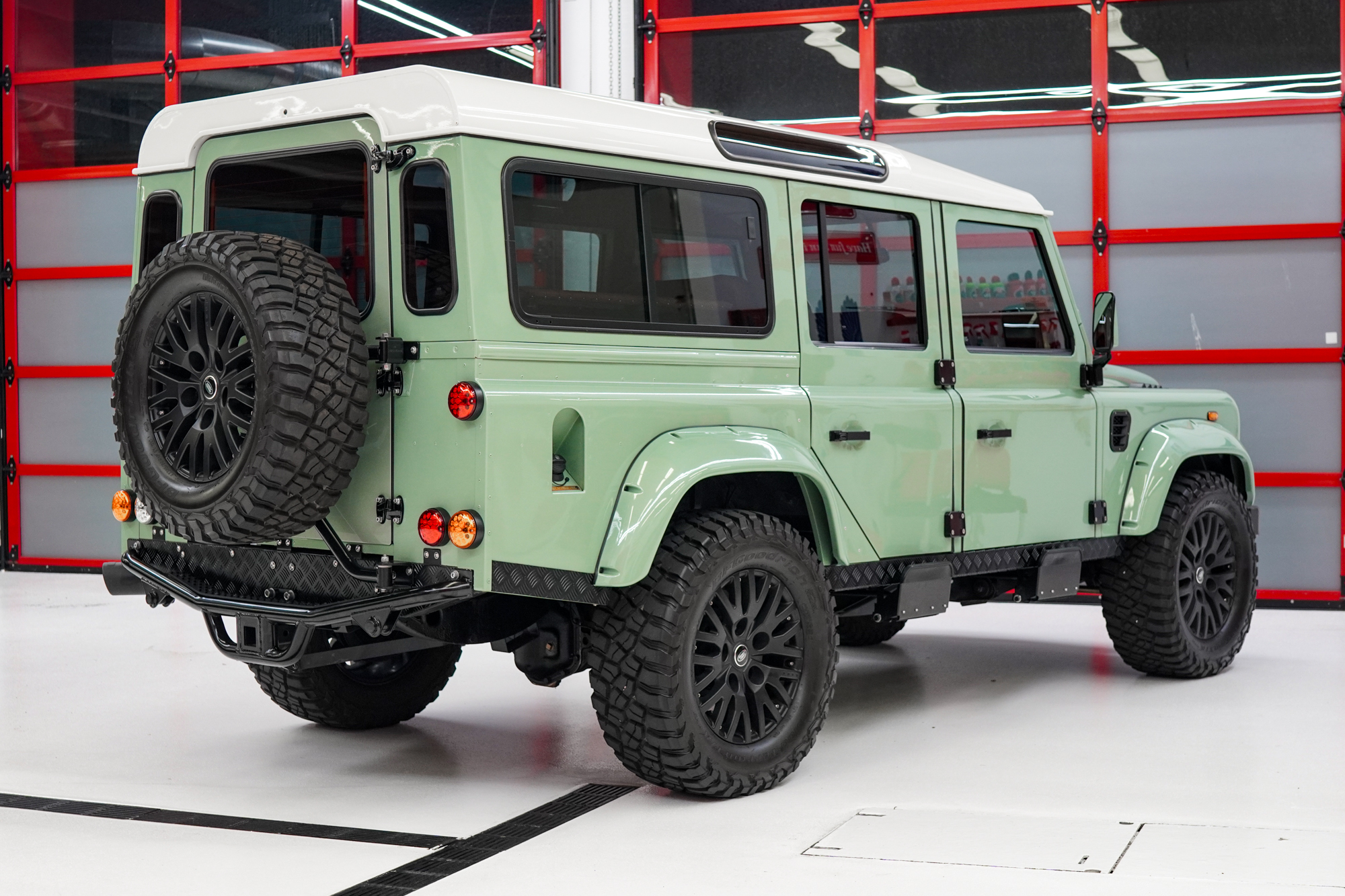 The 18″ Kahn 1983 alloy wheels are mounted with 265/65 BFGoodrich Mud Terrain KM3 tires, and a spare is secured to a swing-out carrier at the rear. Eibach springs and Bilstein shocks have been installed, and stopping power is provided by front discs and rear drums. The tie rods were replaced and the steering box was adjusted in preparation for the sale.