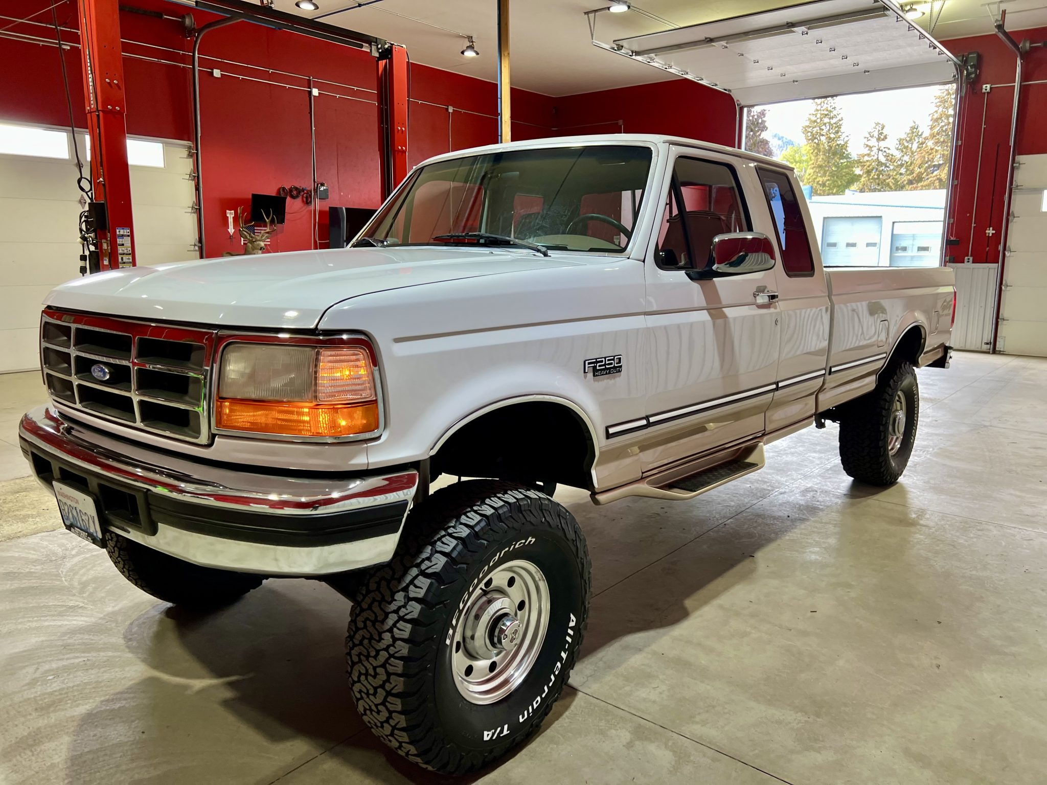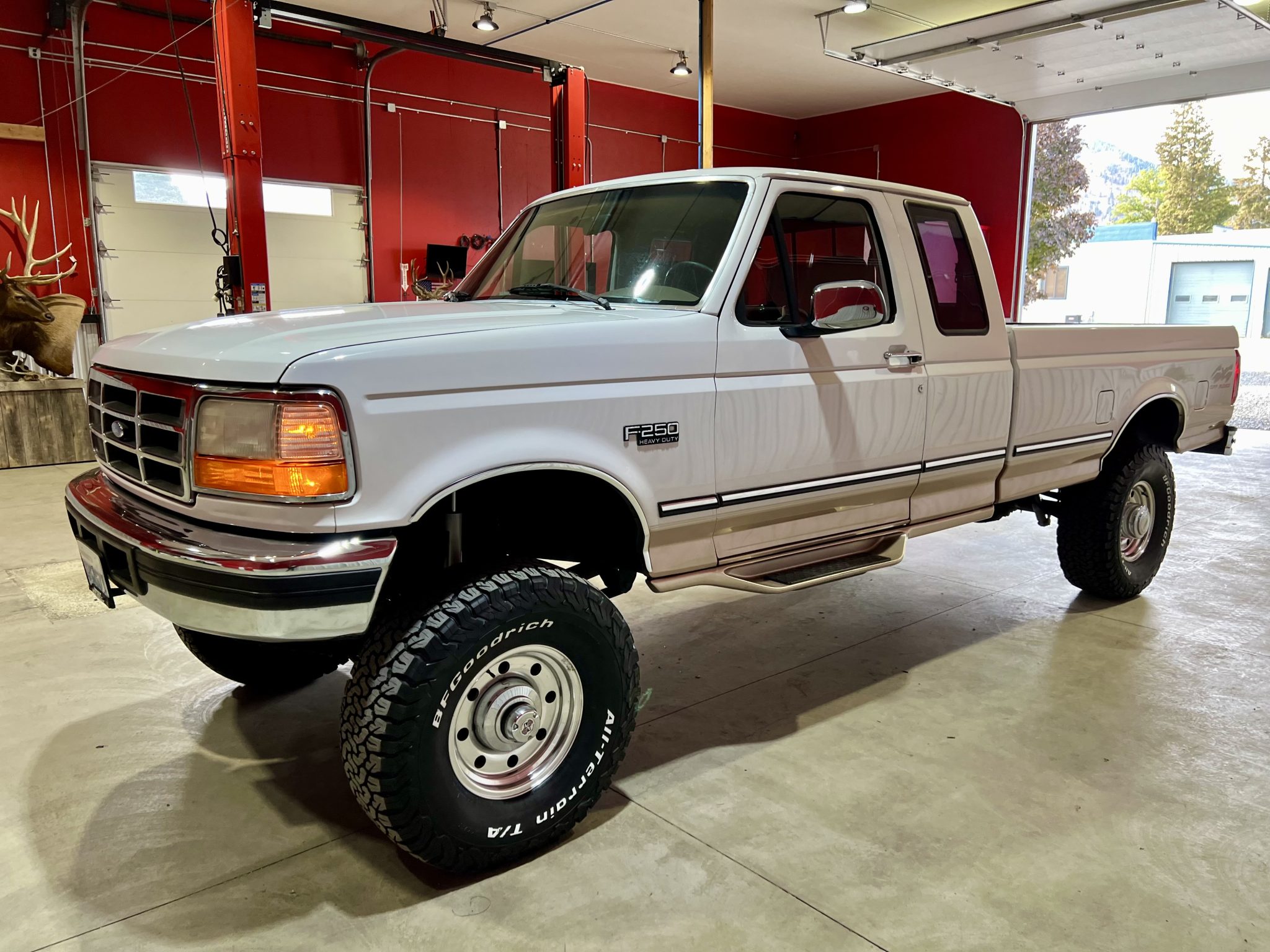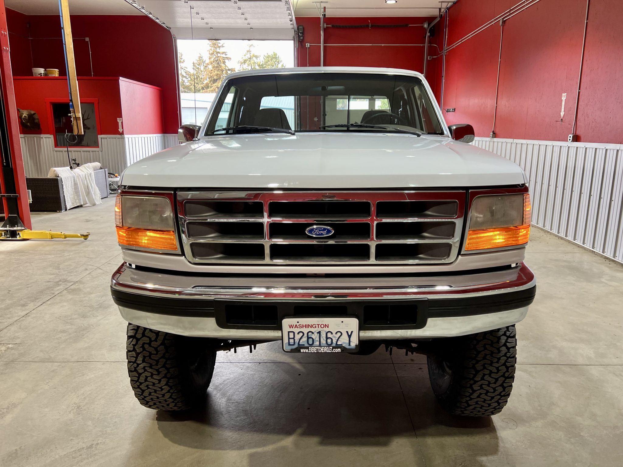 The 16″ eight-hole alloy wheels are mounted with 315/75 BFGoodrich All-Terrain T/A white-letter tires. Braking is handled by power-assisted front discs and rear drums, with the latter featuring ABS. Work under current ownership consisted of installing four tires, fitting a 4″ suspension lift, and performing a wheel alignment.