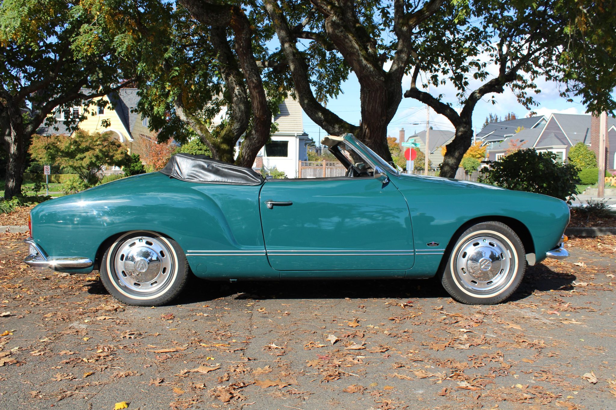 The 15″ steel wheels wear polished beauty rings and chrome VW-stamped hubcaps and are mounted with BFGoodrich GT-100 Radial thin-whitewall tires. Stopping power is provided by drum brakes at each corner.