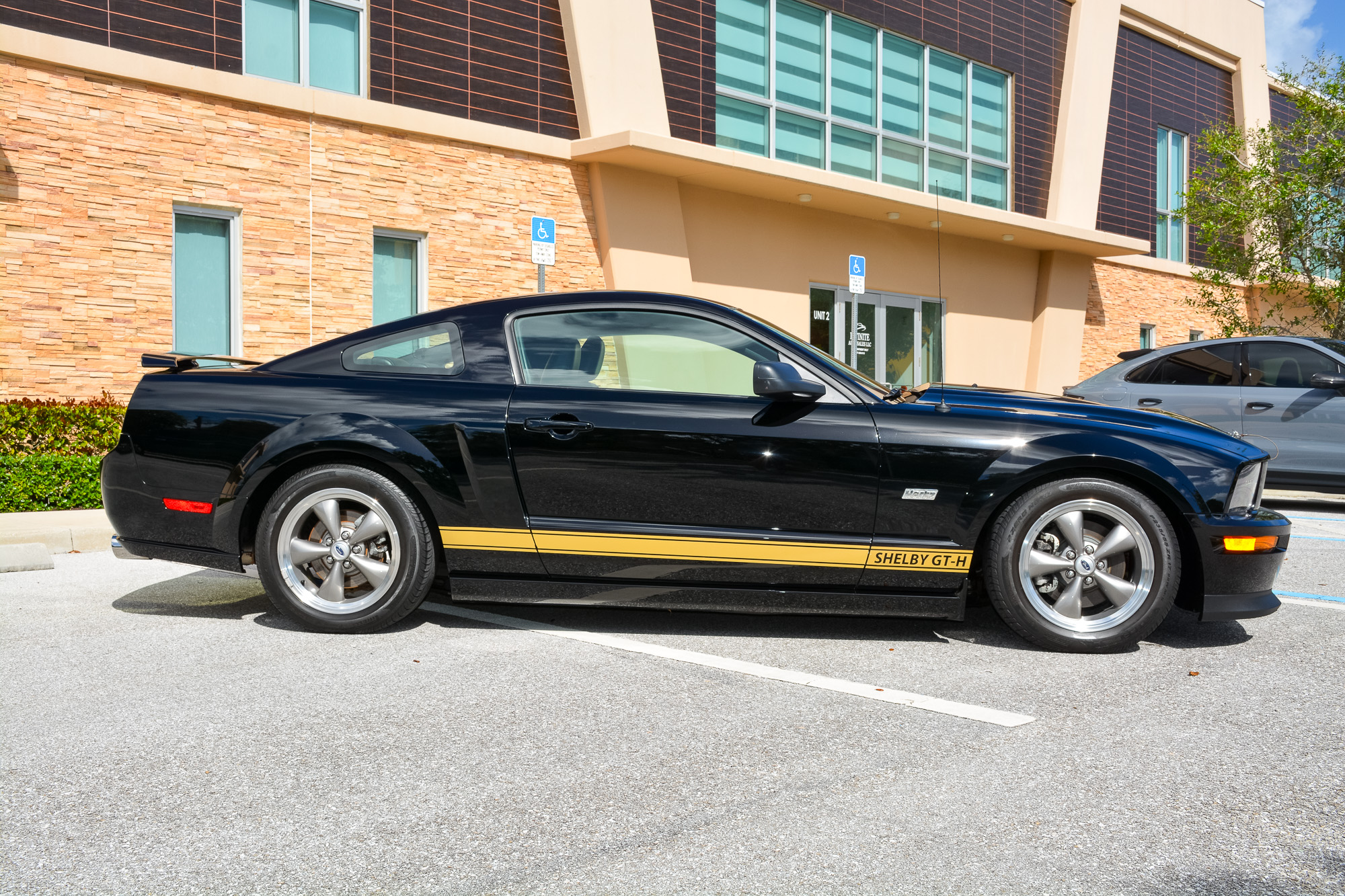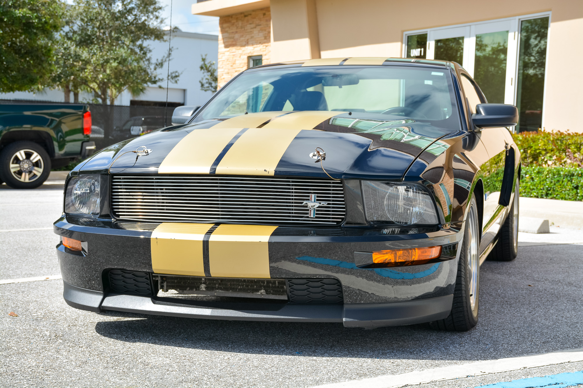 Painted 17″ cast aluminum wheels are mounted with 235/55 Pirelli P Zero Nero tires. The Shelby GT package included Ford Racing lowering springs, dampers, and front and rear sway bars. Stopping power is provided by ventilated rotors at each corner.