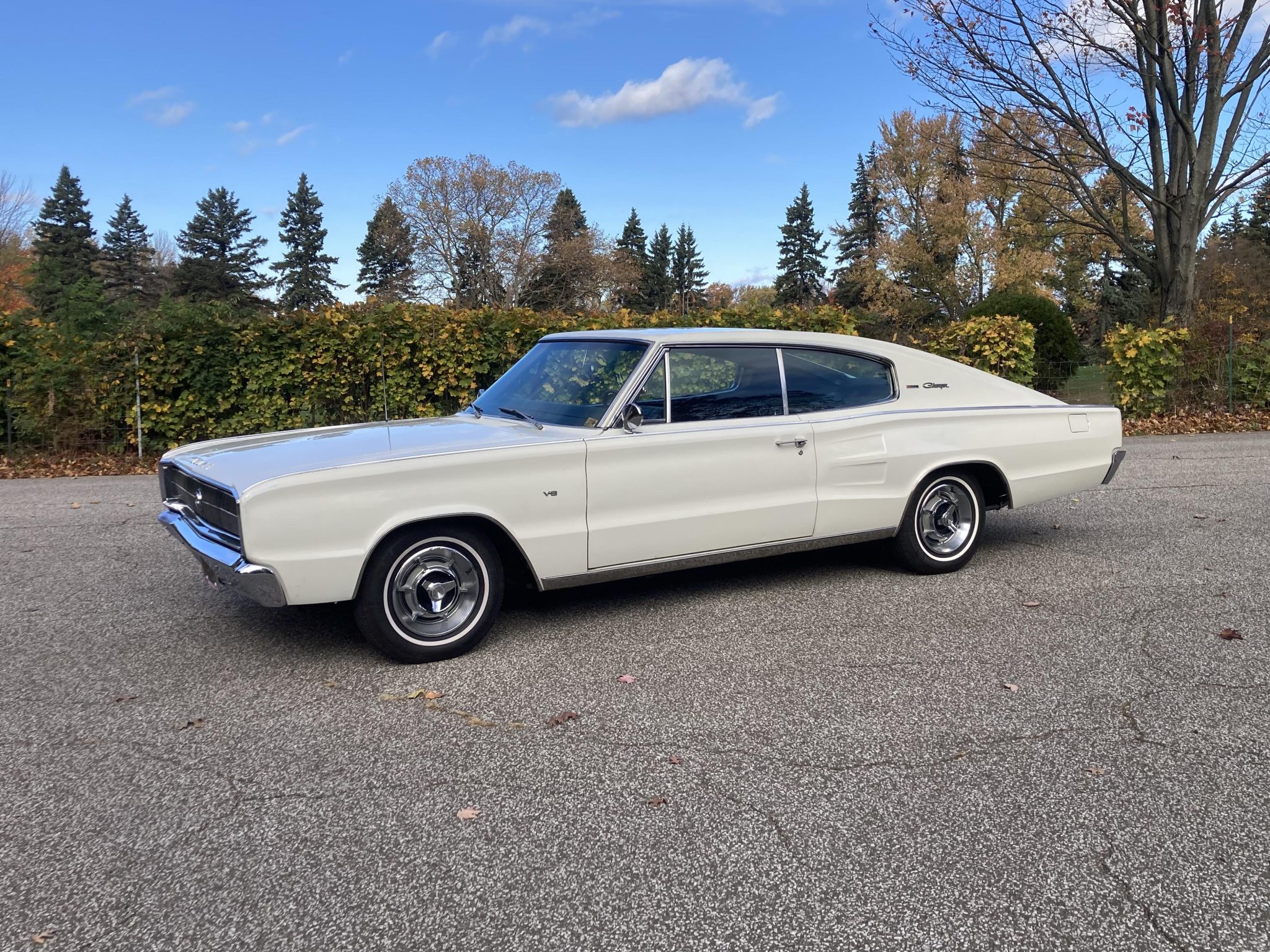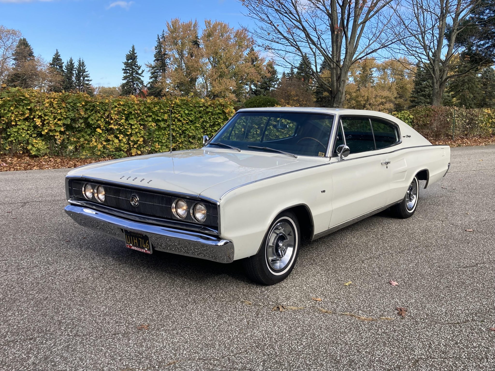 The 14″ steel wheels with styled covers were mounted with Travelster whitewall tires under current ownership. The car is equipped with power steering, and braking is provided by power-assisted front and rear drums that were serviced at the time of the selling dealer’s purchase.