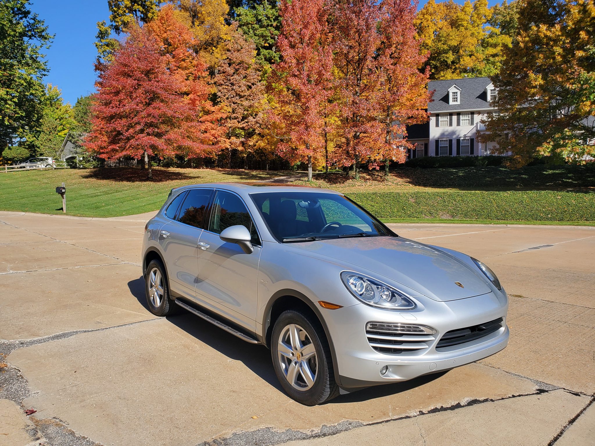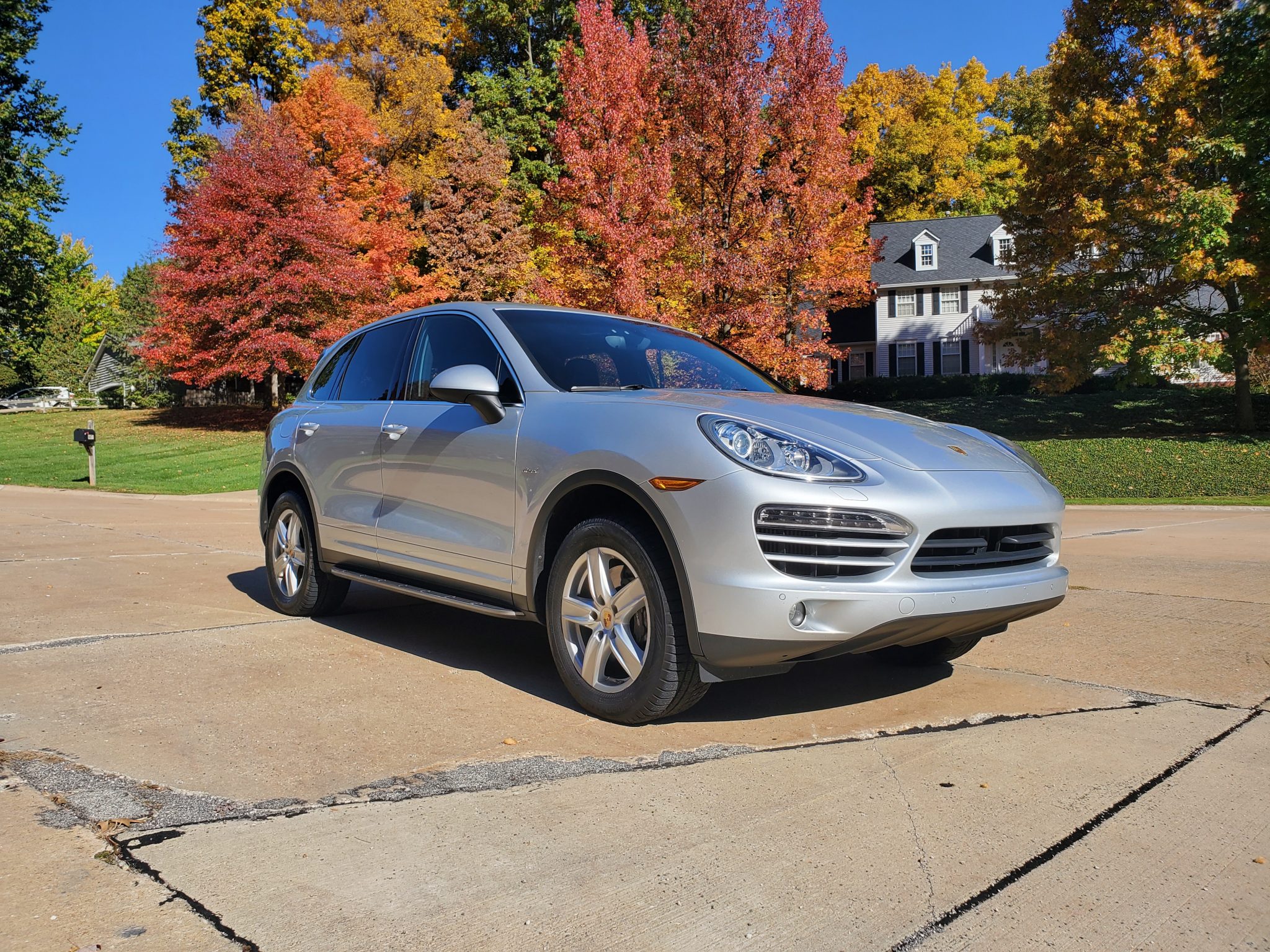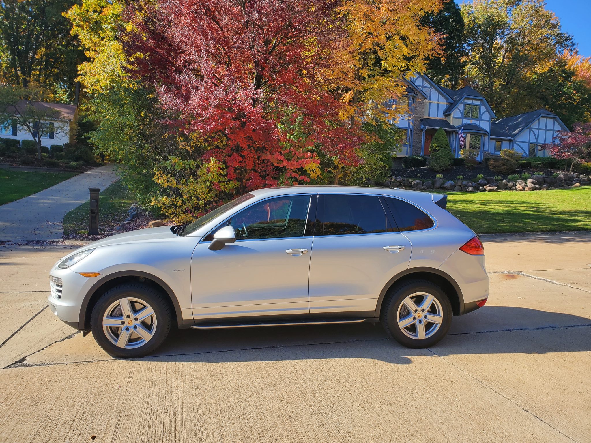 Finished in Classic Silver Metallic, the SUV features a panoramic sunroof, projector-beam headlights, fog lights, front and rear parking sensors, running boards, and a power-operated tailgate with a spoiler, heated glass, and a wiper. A receiver hitch was added under current ownership. Dents are present on the front-left and rear-right doors, and chipped paint on various body panels is shown in photos provided in the gallery.