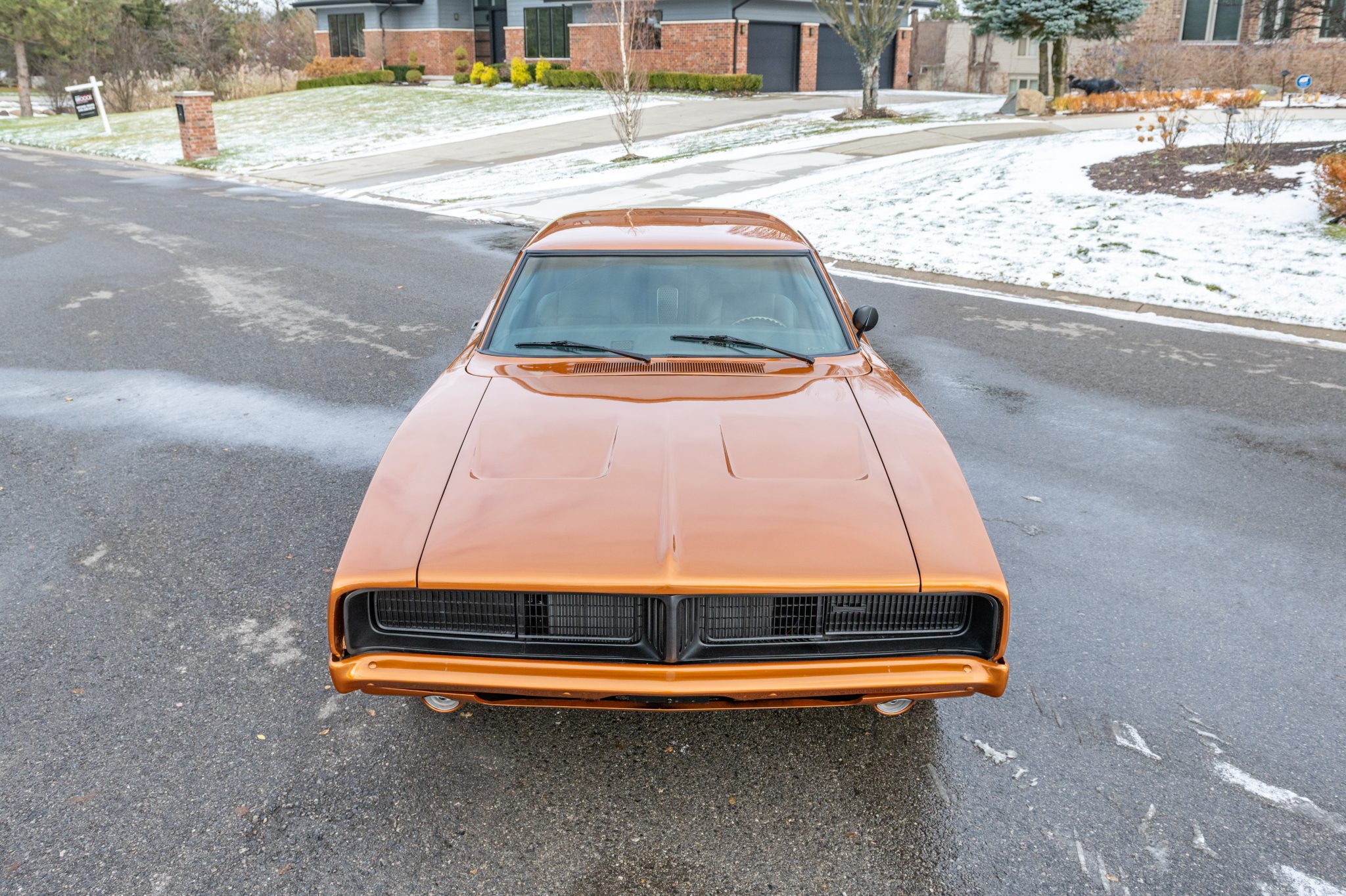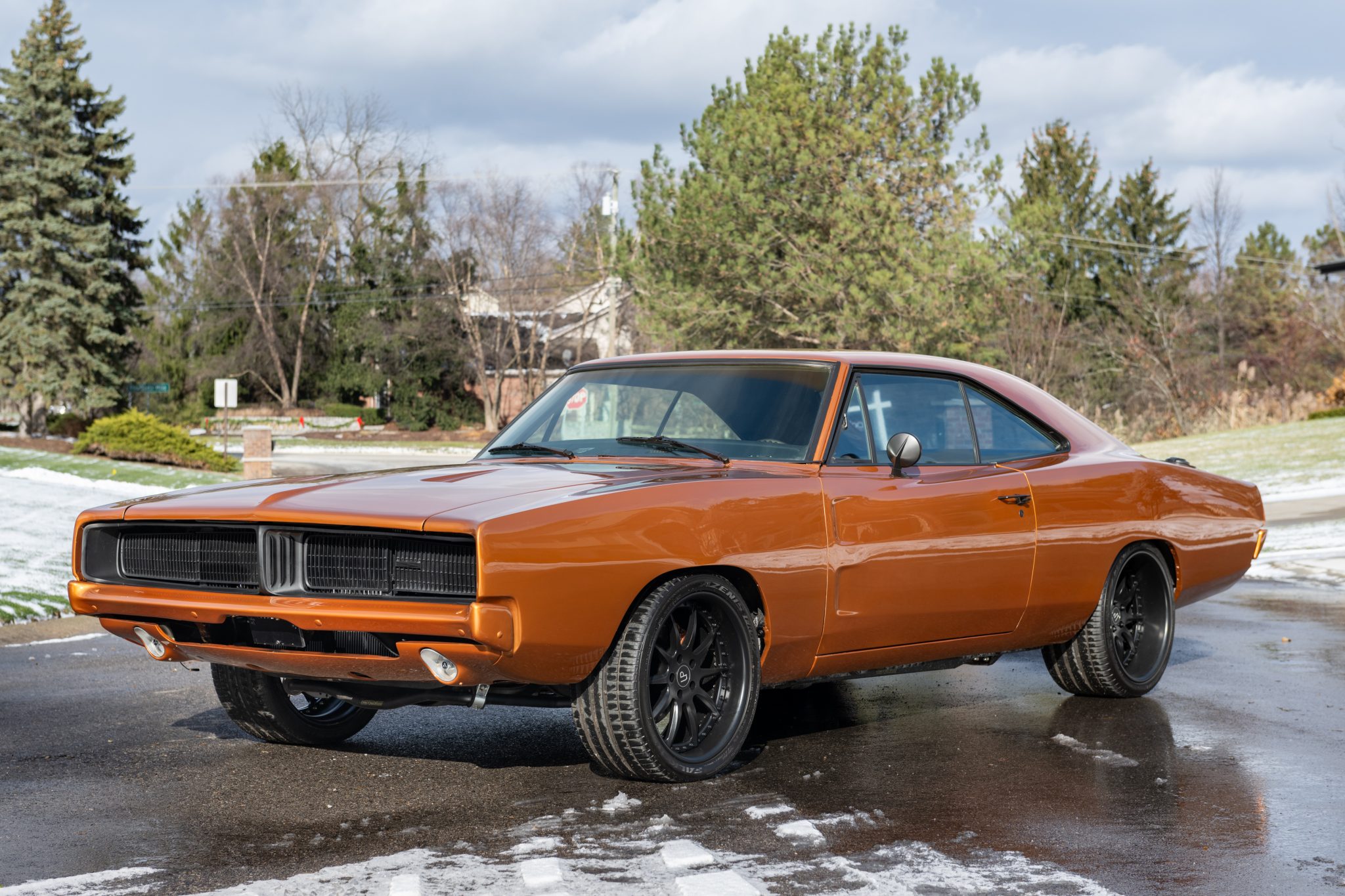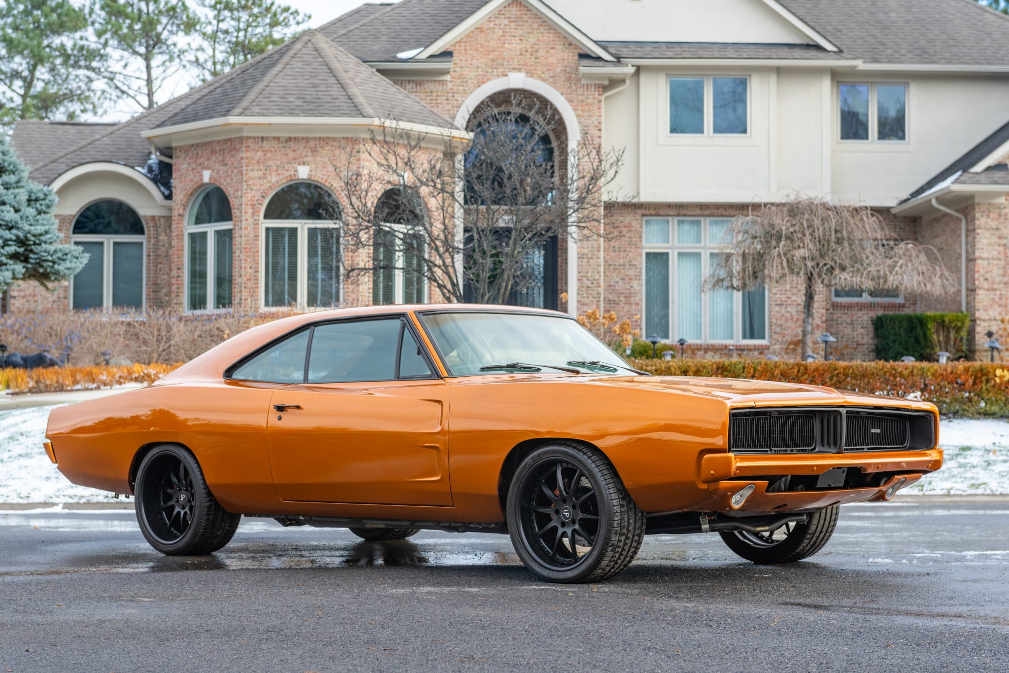 Custom ten-spoke, three-piece wheels with Uribe Performance–logo centers measure 19×9.5″ at the front and 19×11.5″ in the rear. Falken Azenis FK510 tires are sized 275/35 in front and 305/30 out back. A Wilwood hydro-boost four-wheel-disc braking system features drilled and slotted rotors as well as body-color calipers (six-piston front and four-piston rear). A Hotchkis TVS suspension system has been installed, and the car also has power steering.