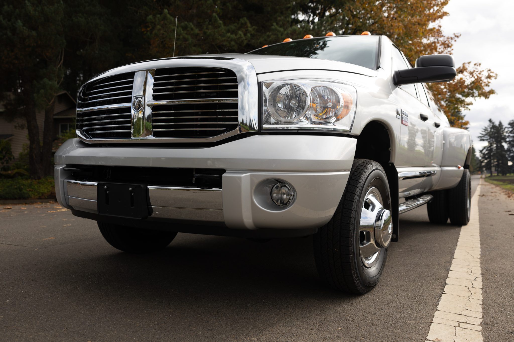 The 17″ steel wheels are mounted with older General Ameritrac tires, and braking is provided by discs at each corner with ABS.