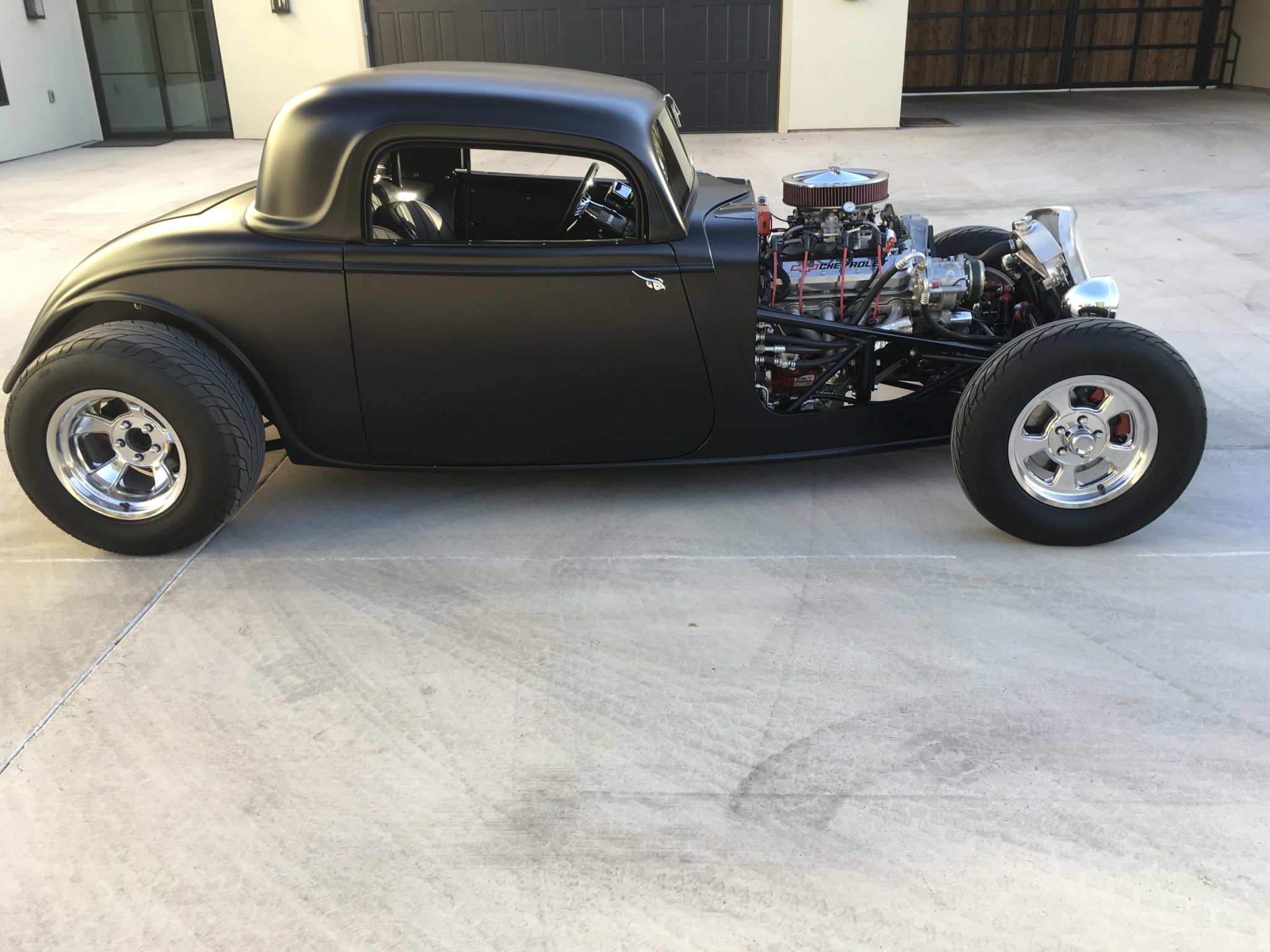 The 15″ five-spoke alloy wheels are mounted with 28×6.00″ KT front and 28×12.00″ LT rear Mickey Thompson tires. The tubular steel chassis features a cantilever front suspension, a four-link rear setup, and adjustable coilovers all around. Braking is handled by four-wheel discs with red-finished calipers.