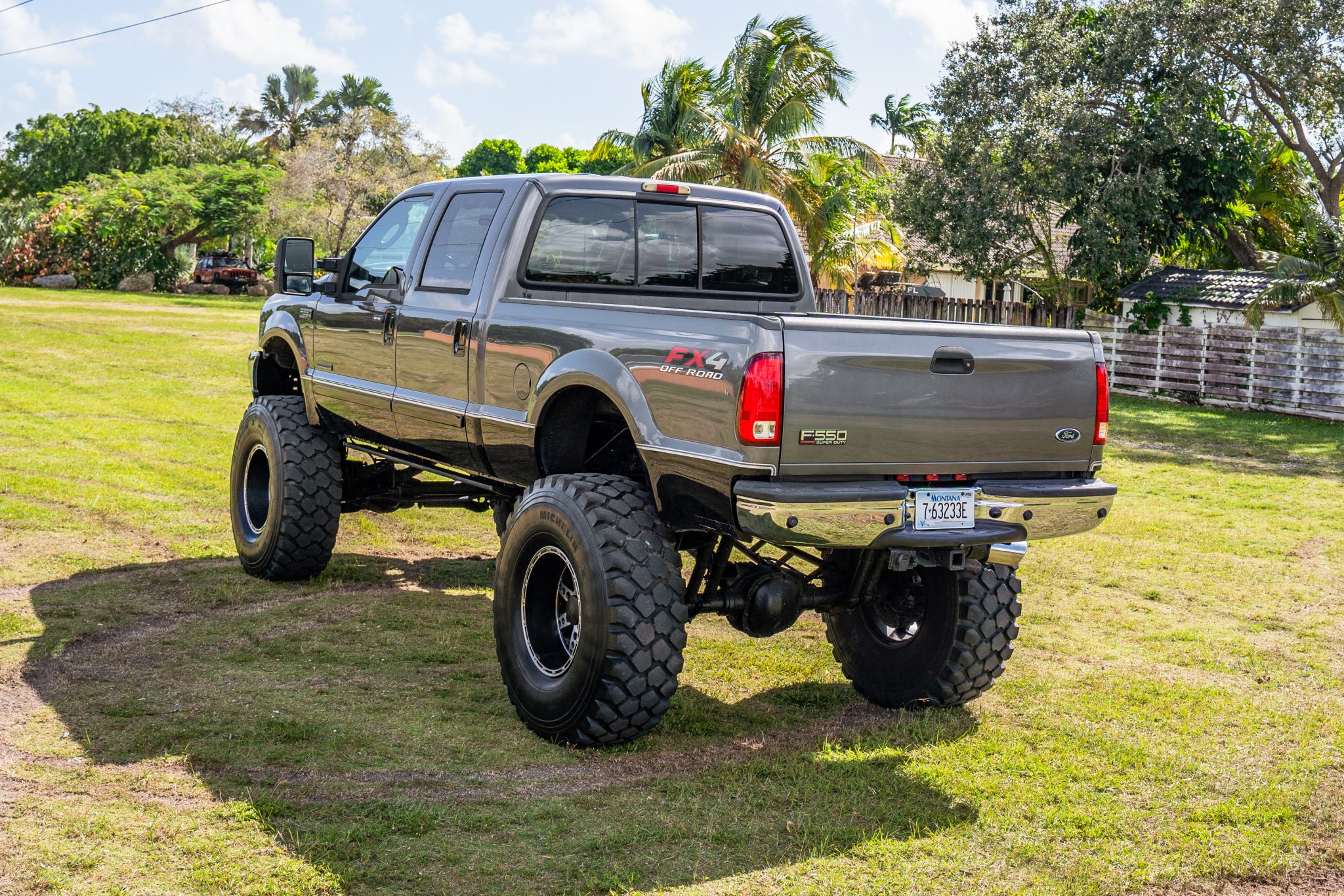 The 20″ XD Series wheels are mounted with 365/85 Michelin XZL tires with 2008 date codes. The truck has been fitted with a custom-fabricated 14″ suspension lift kit with Atlas leaf springs, while traction bars have been added out back. The front axle is equipped with Warn manually locking hubs, and stopping power is provided by four-wheel disc brakes.