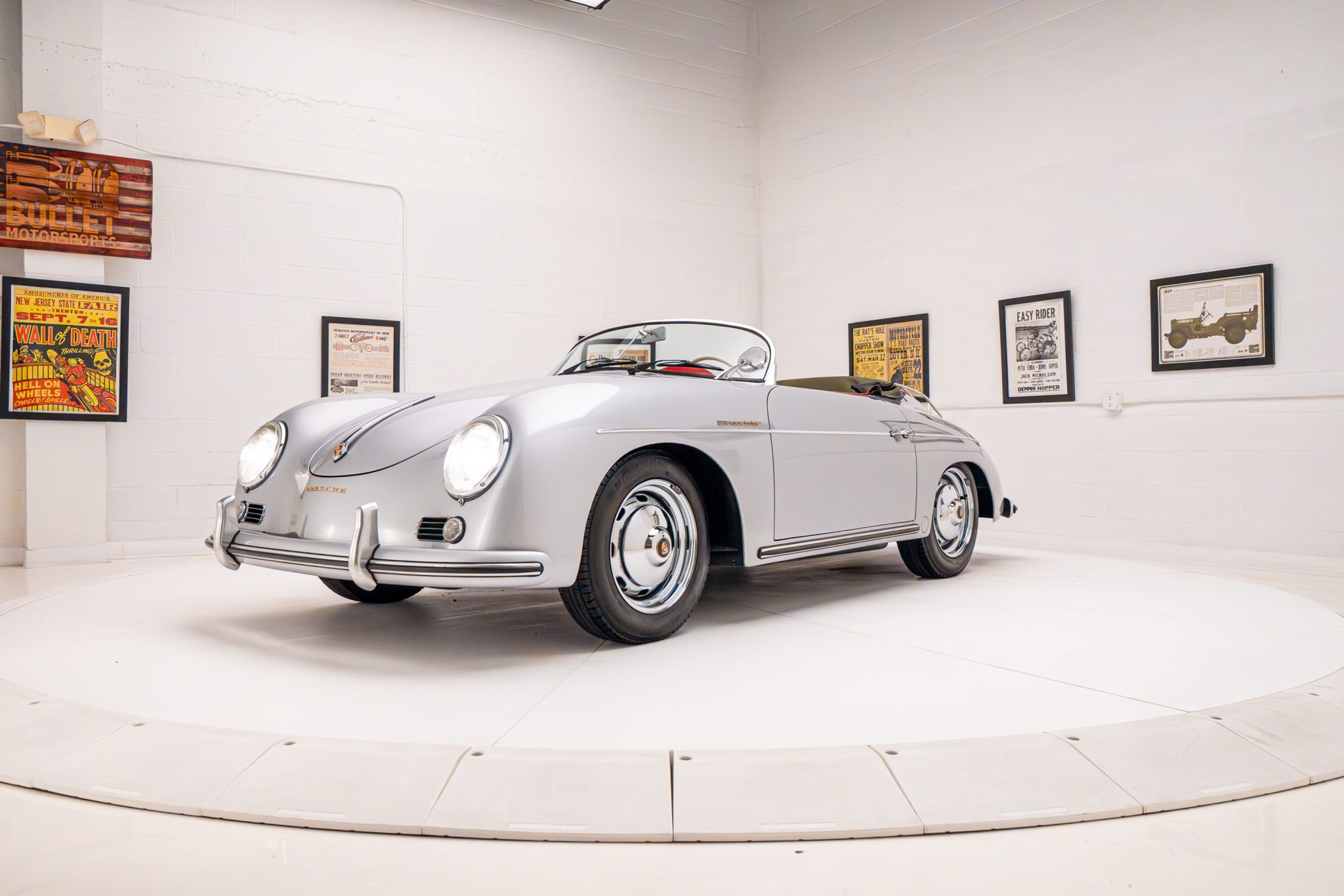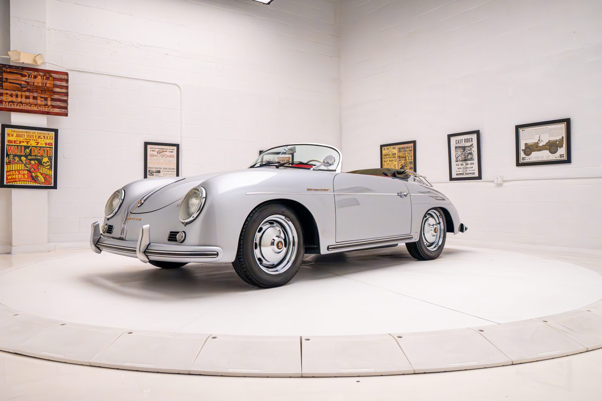 Chrome 15″ steel wheels wear matching hubcaps with full-color Porsche crests and are mounted with 155/80 BFGoodrich Radial T/A tires. Stopping power is provided by front disc and rear drum brakes.