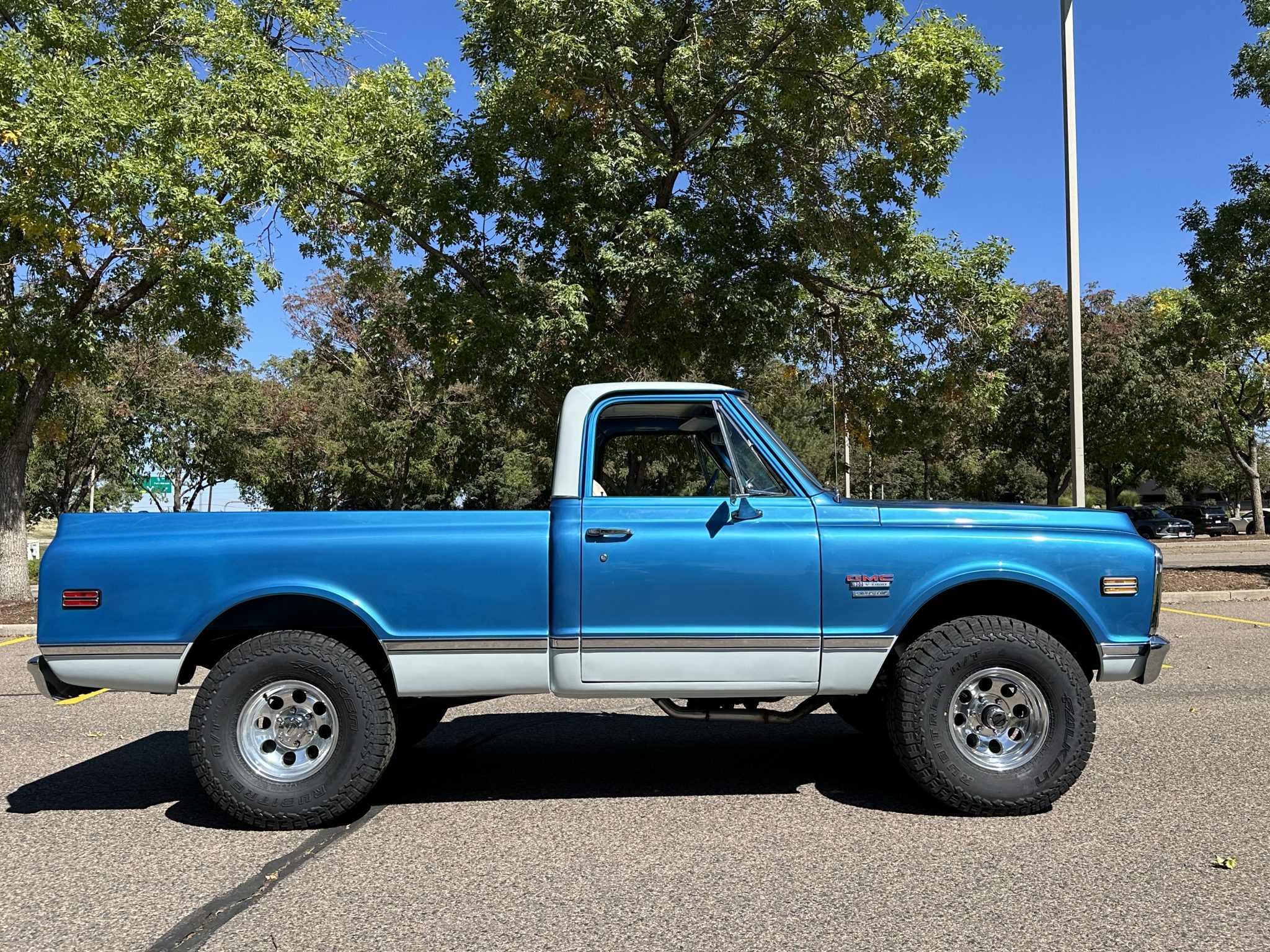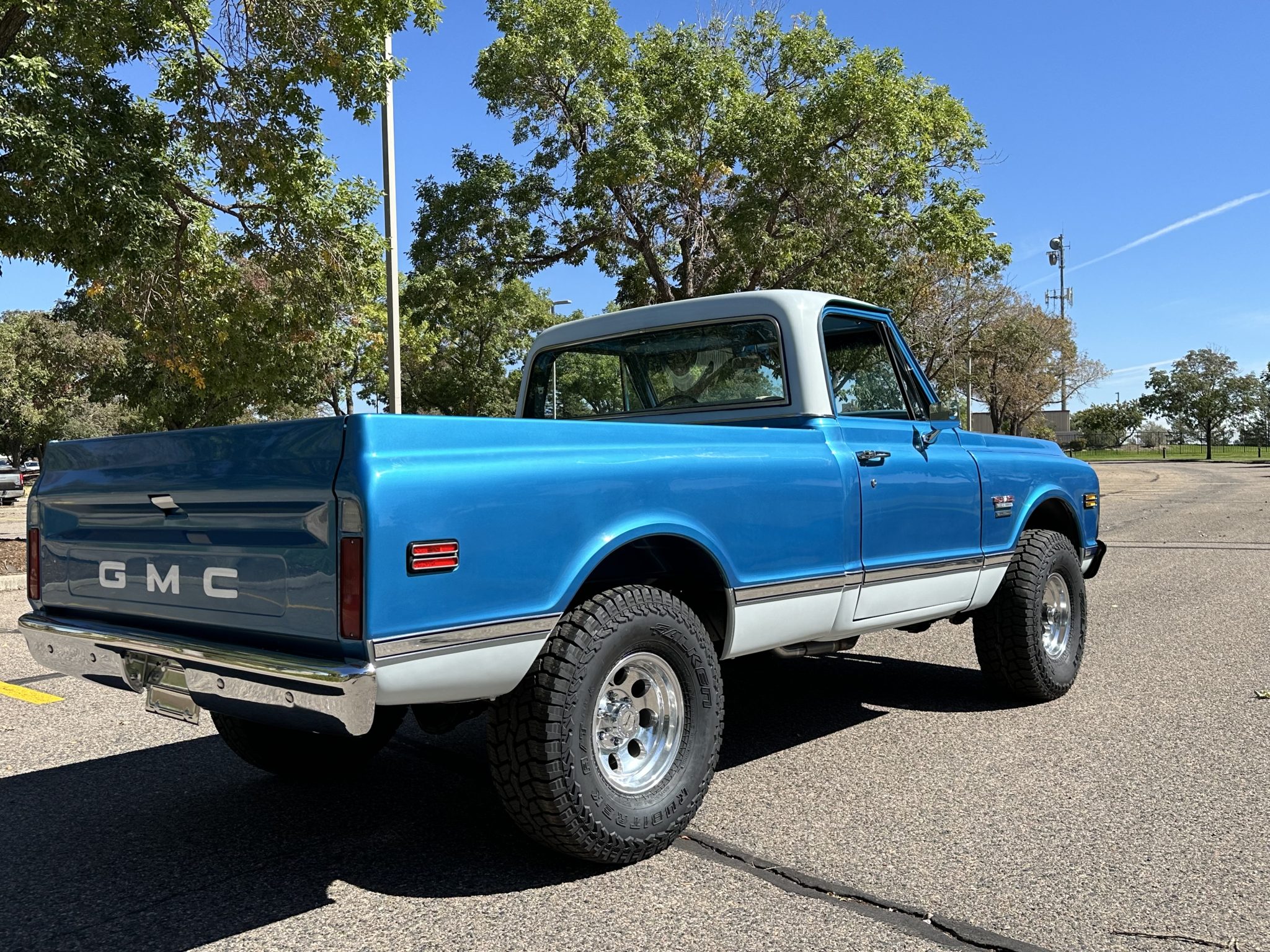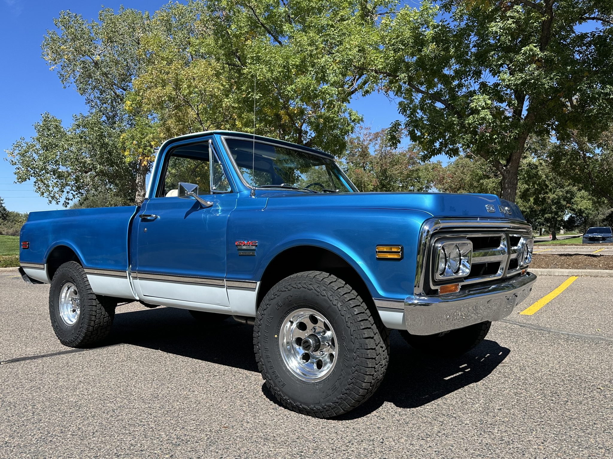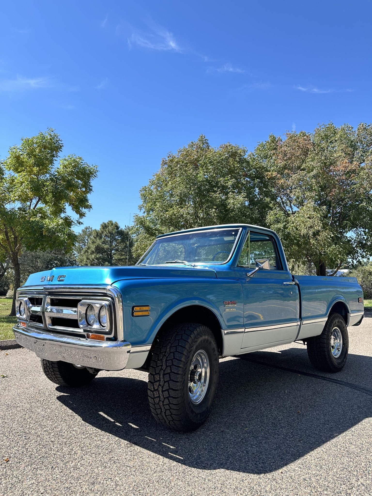 Polished 15″ Pro Comp wheels are mounted with 33×12.5″ Falken Rubitrek A/T tires. The truck rides on Napa shock absorbers and is equipped with power steering along with manually locking front hubs. Braking is provided by power-assisted front discs and rear drums.