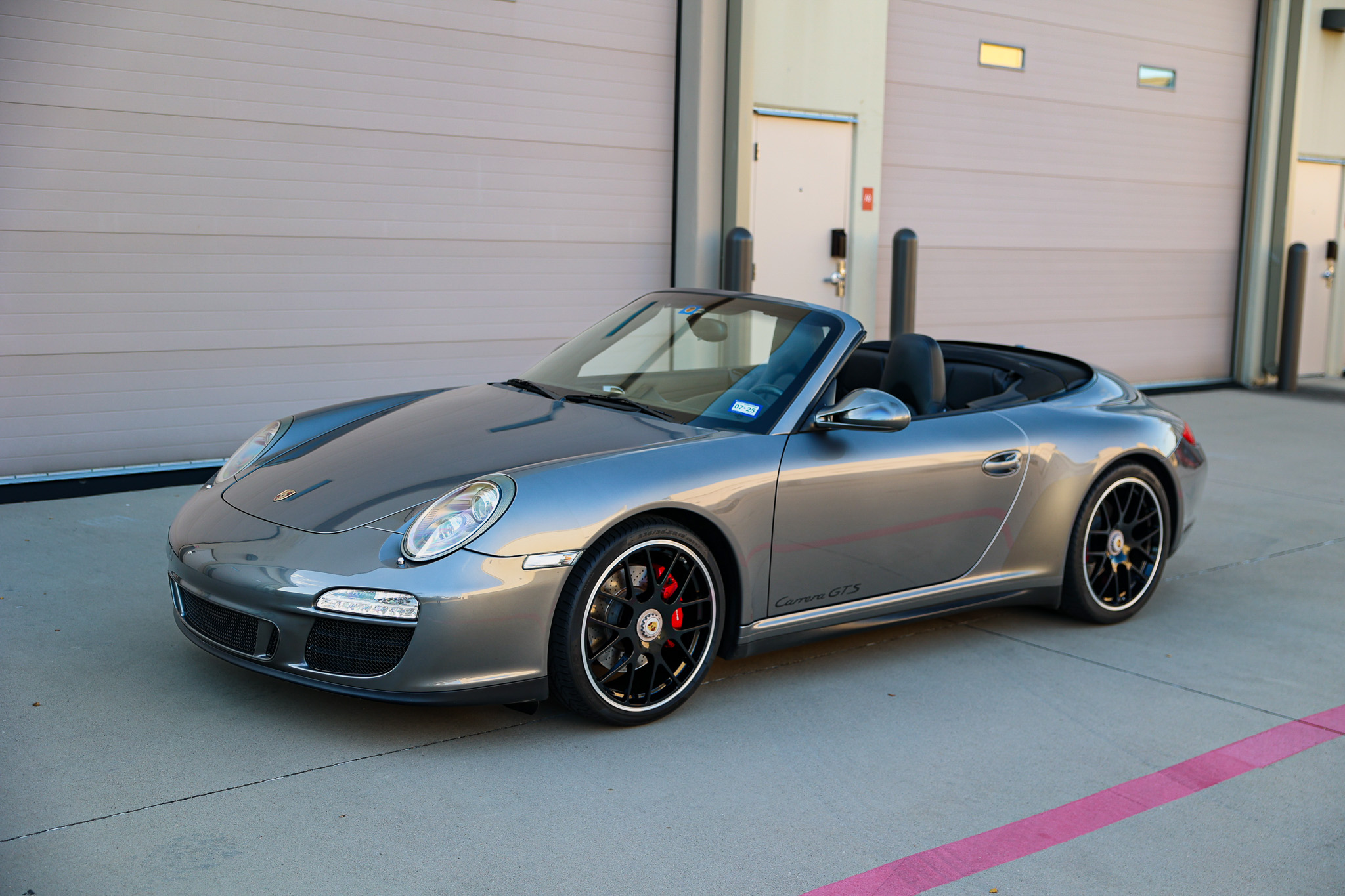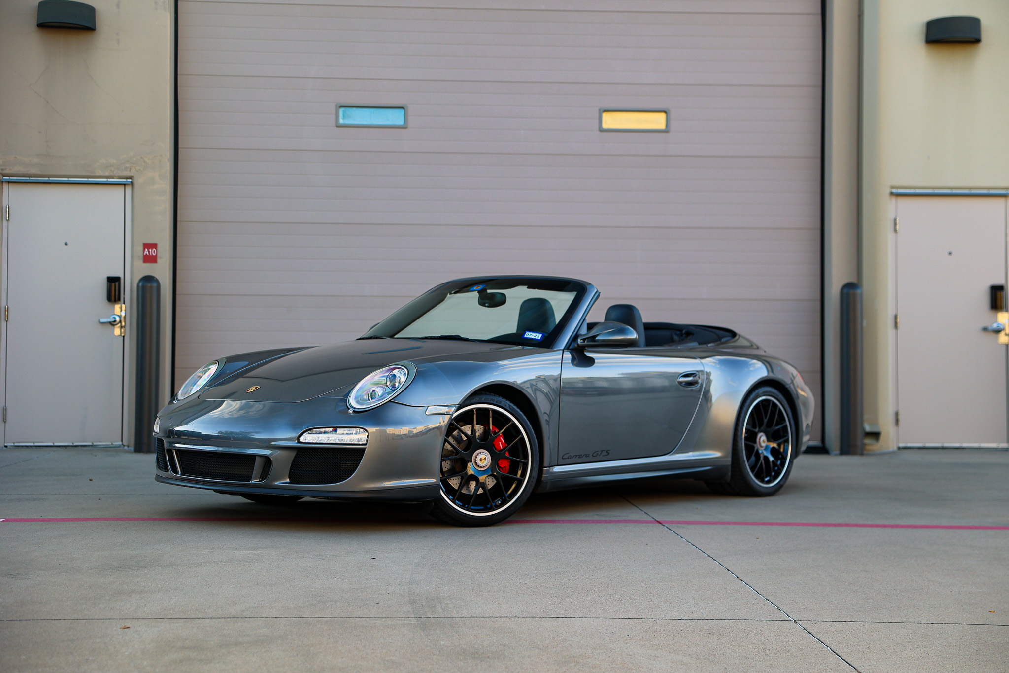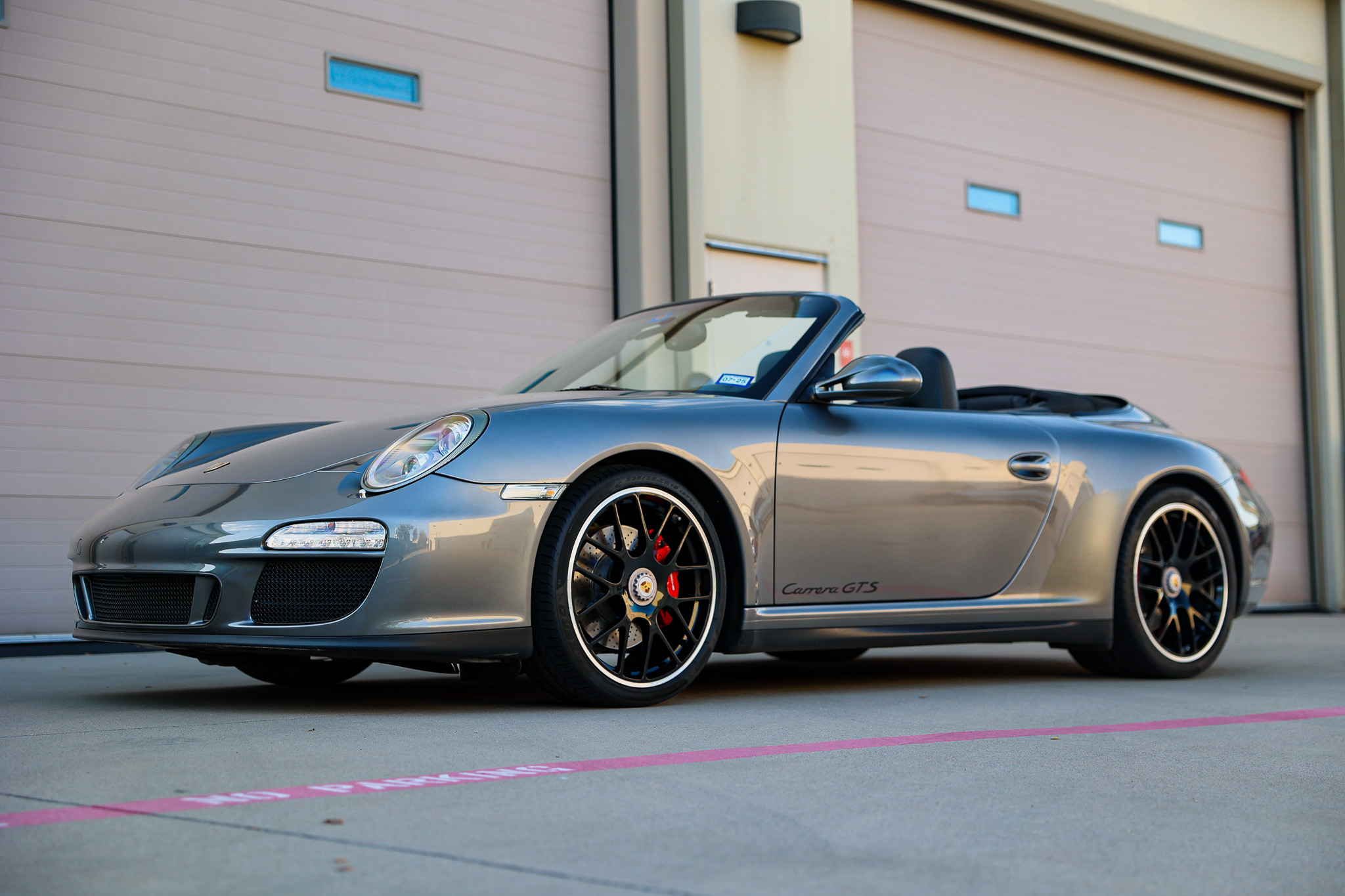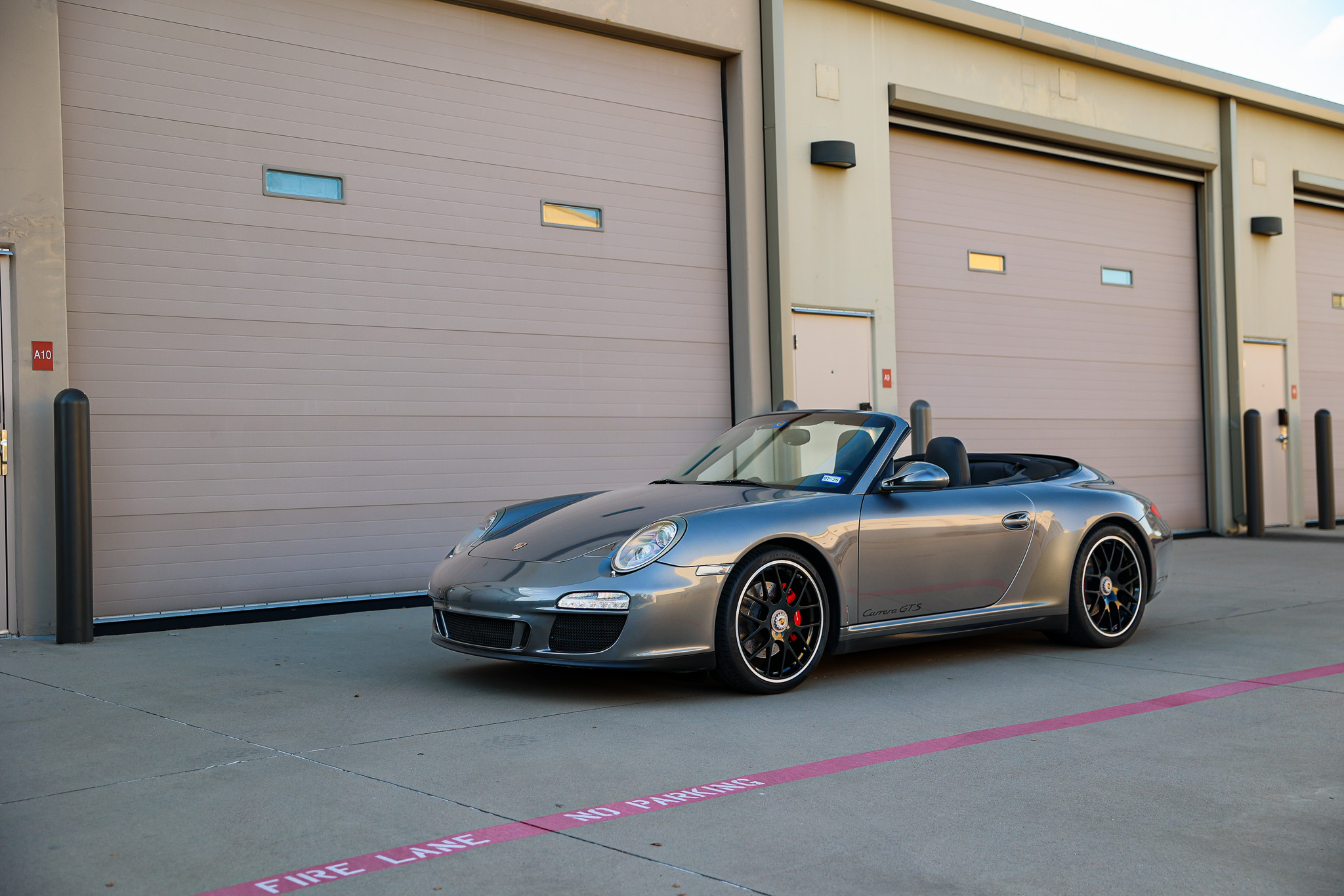 Black 19” RS Spyder center-lock wheels have lighter outer rims and are mounted with Pirelli P Zero tires measuring 235/35 up front and 305/30 out back. Braking is handled by red Porsche-branded four-piston calipers over 13″ cross-drilled and vented rotors. The car is equipped with Porsche Stability Management (PSM), an automatic brake differential (ABD), and Porsche Active Suspension Management (PASM) with a ride height that is lowered by 10mm when compared with the standard Carrera.
