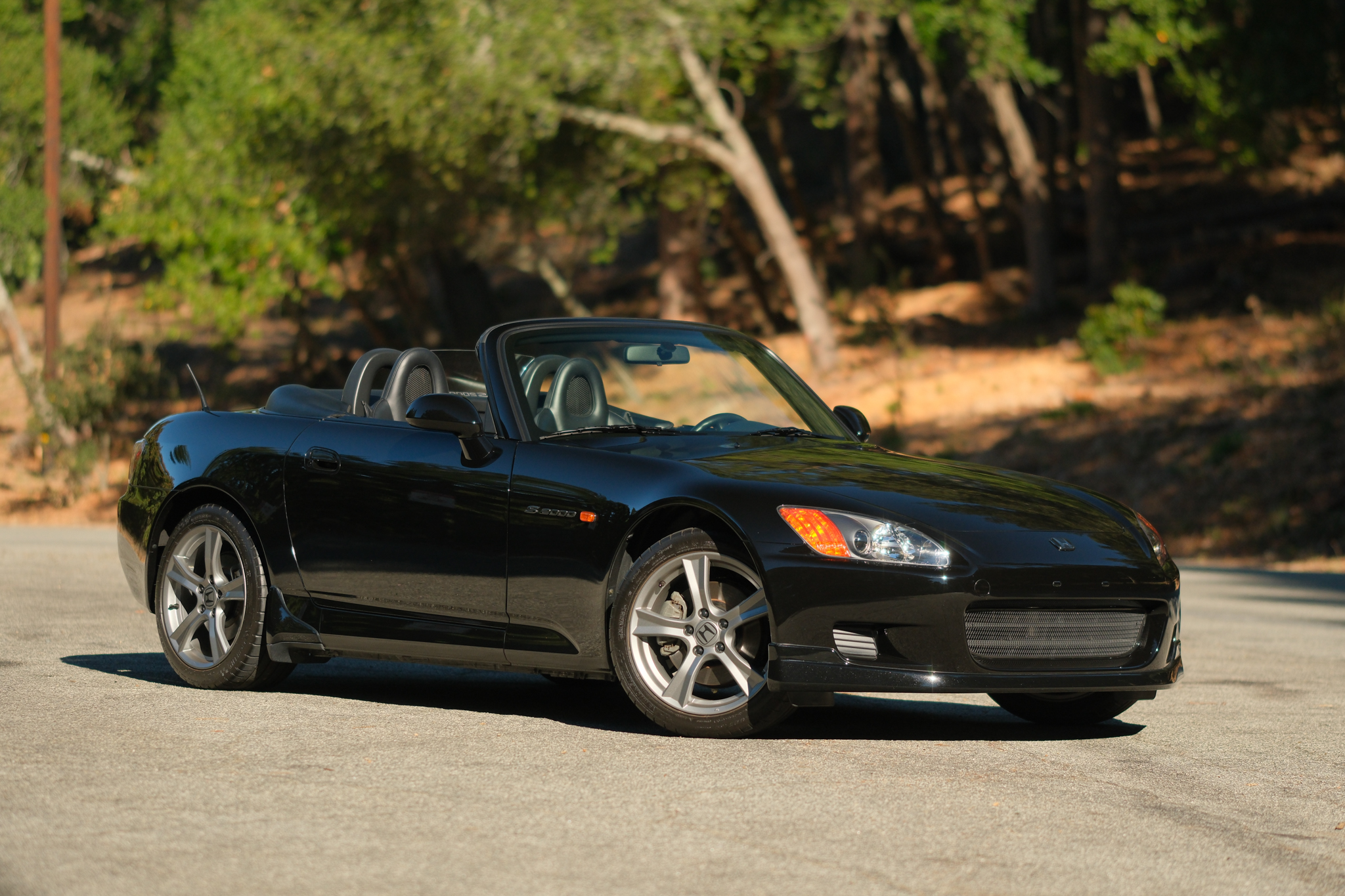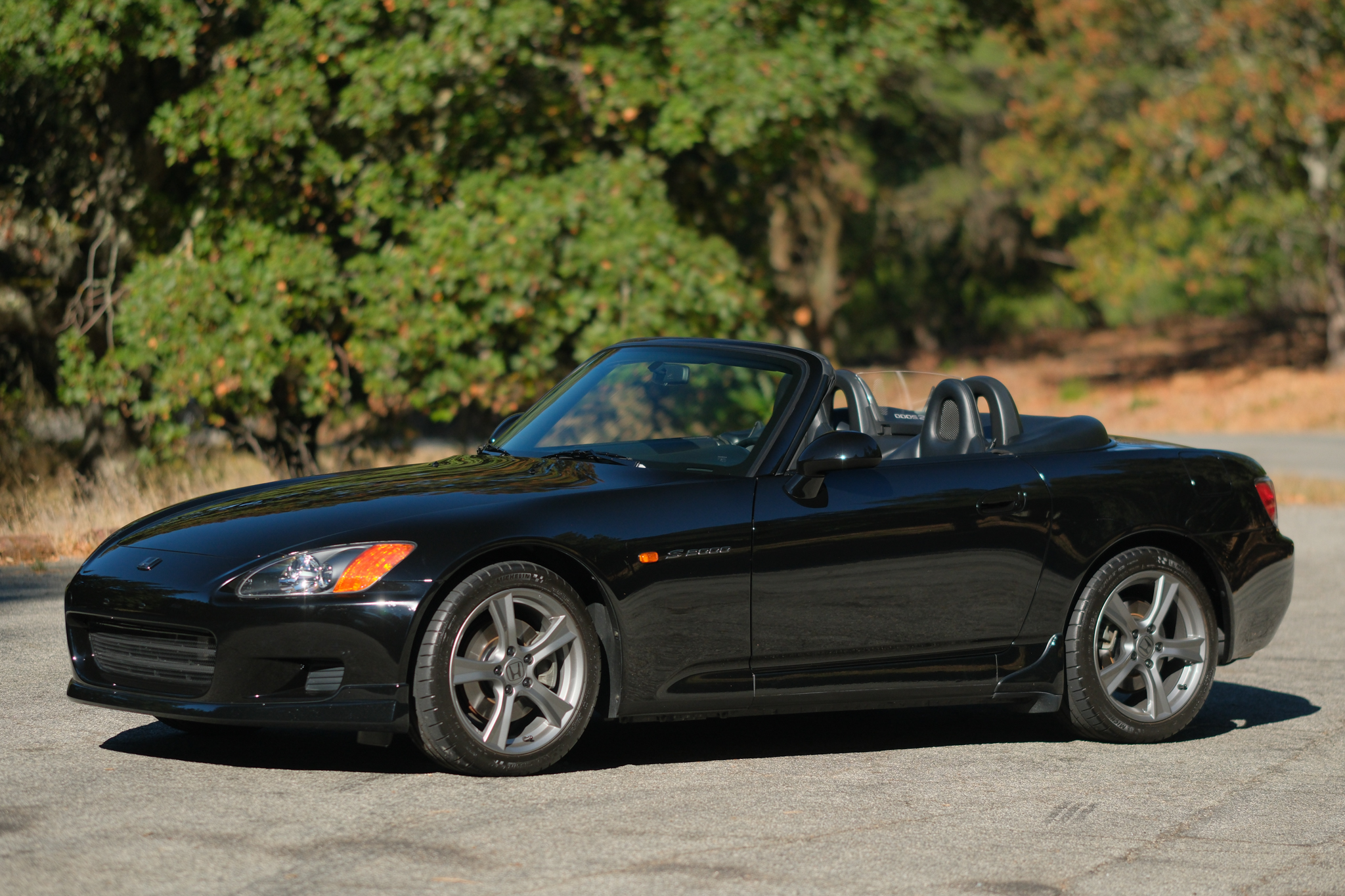 The 17″ S2000 CR wheels were purchased and installed in 2016 and are mounted with Michelin Pilot Super Sport tires. A space-saver spare is stowed in the trunk. The car was factory-equipped with front and rear double-wishbone suspension, and braking is handled by four-wheel discs with ABS. The brake fluid was flushed in 2022.
