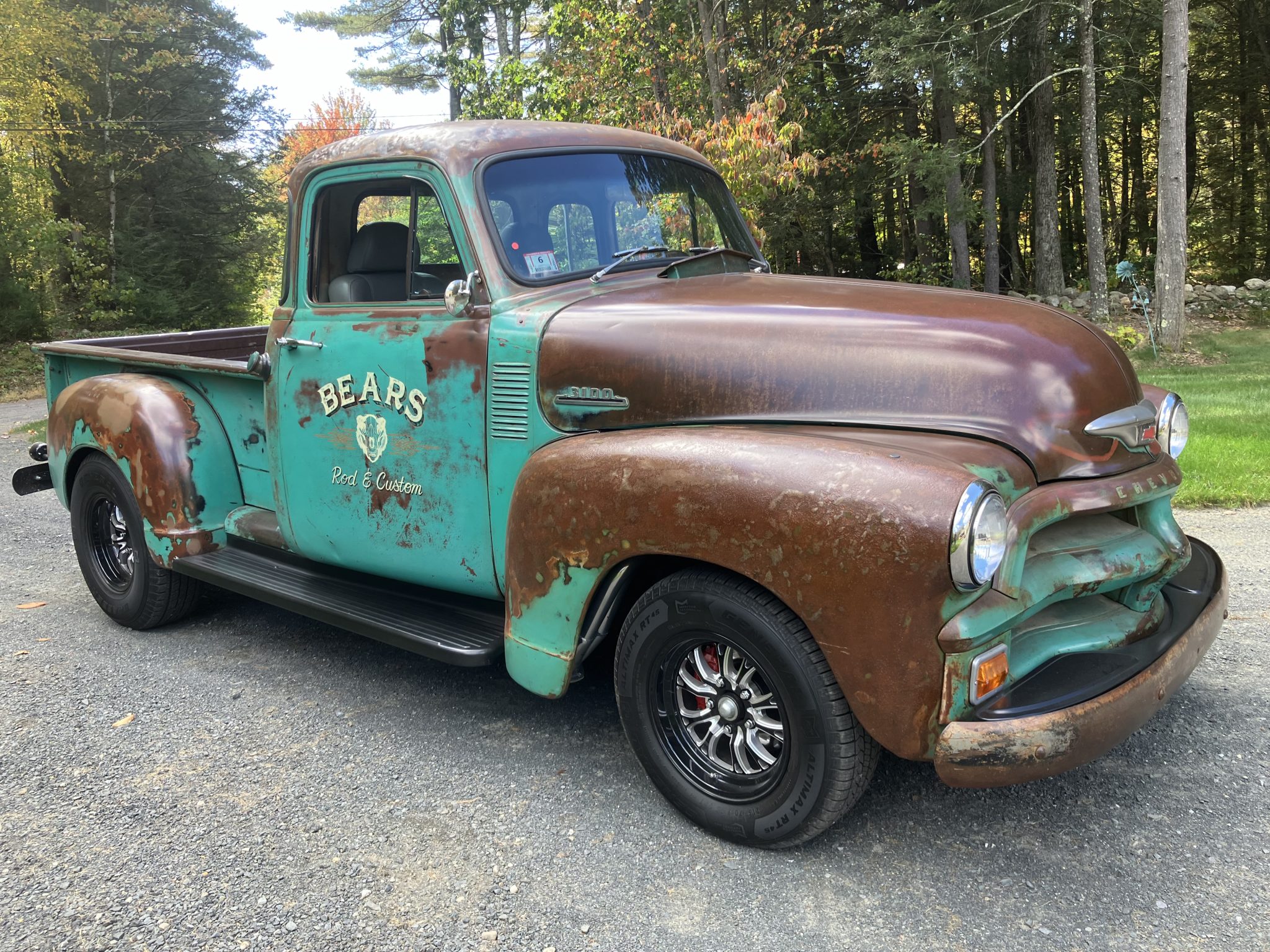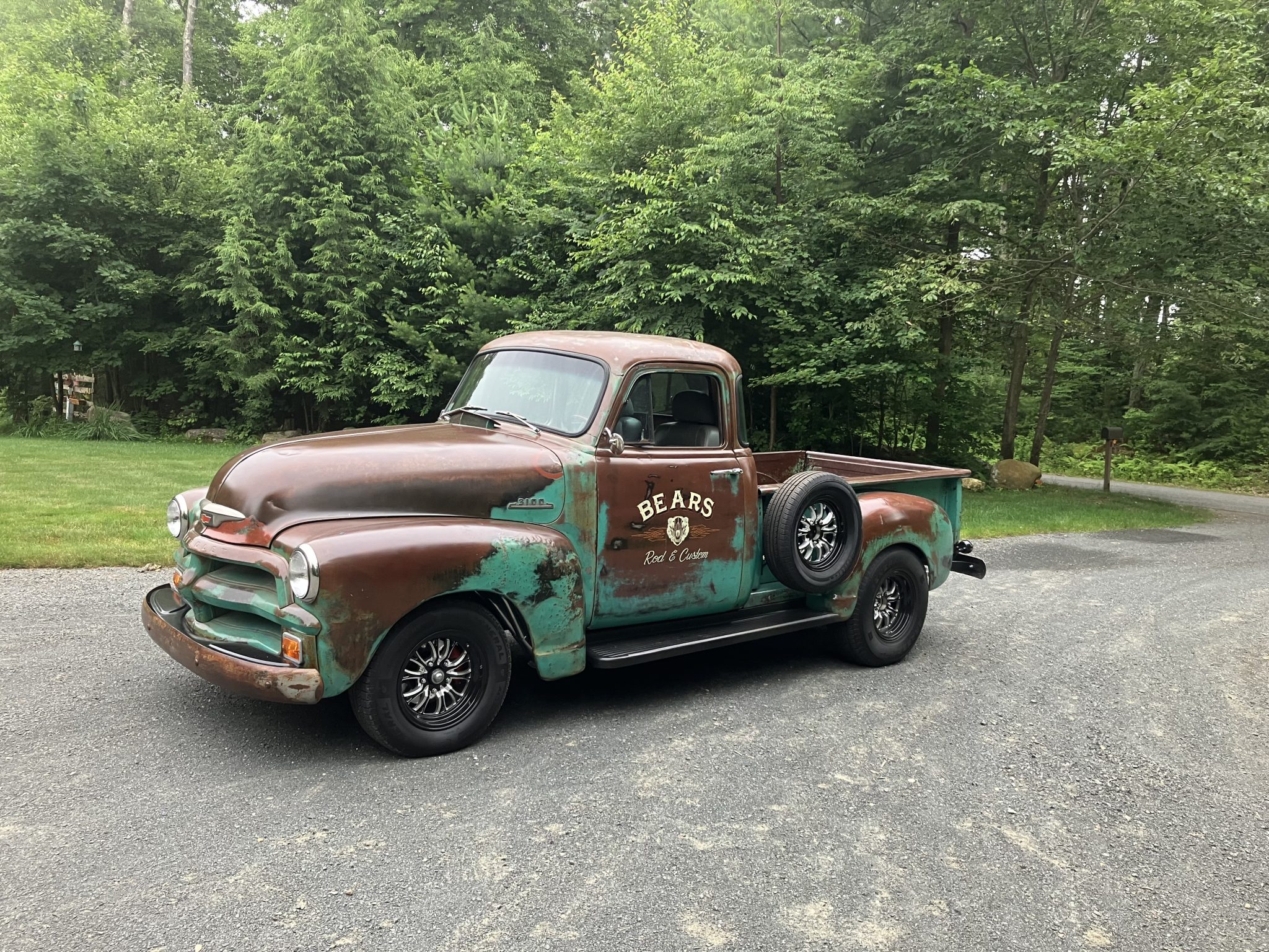 The Jegs 15″ wheels are mounted with General Altimax tires measuring 265/75, and a matching spare is housed on the side of the bed. Braking is provided by discs at each corner, and the truck is equipped with rack-and-pinion steering.