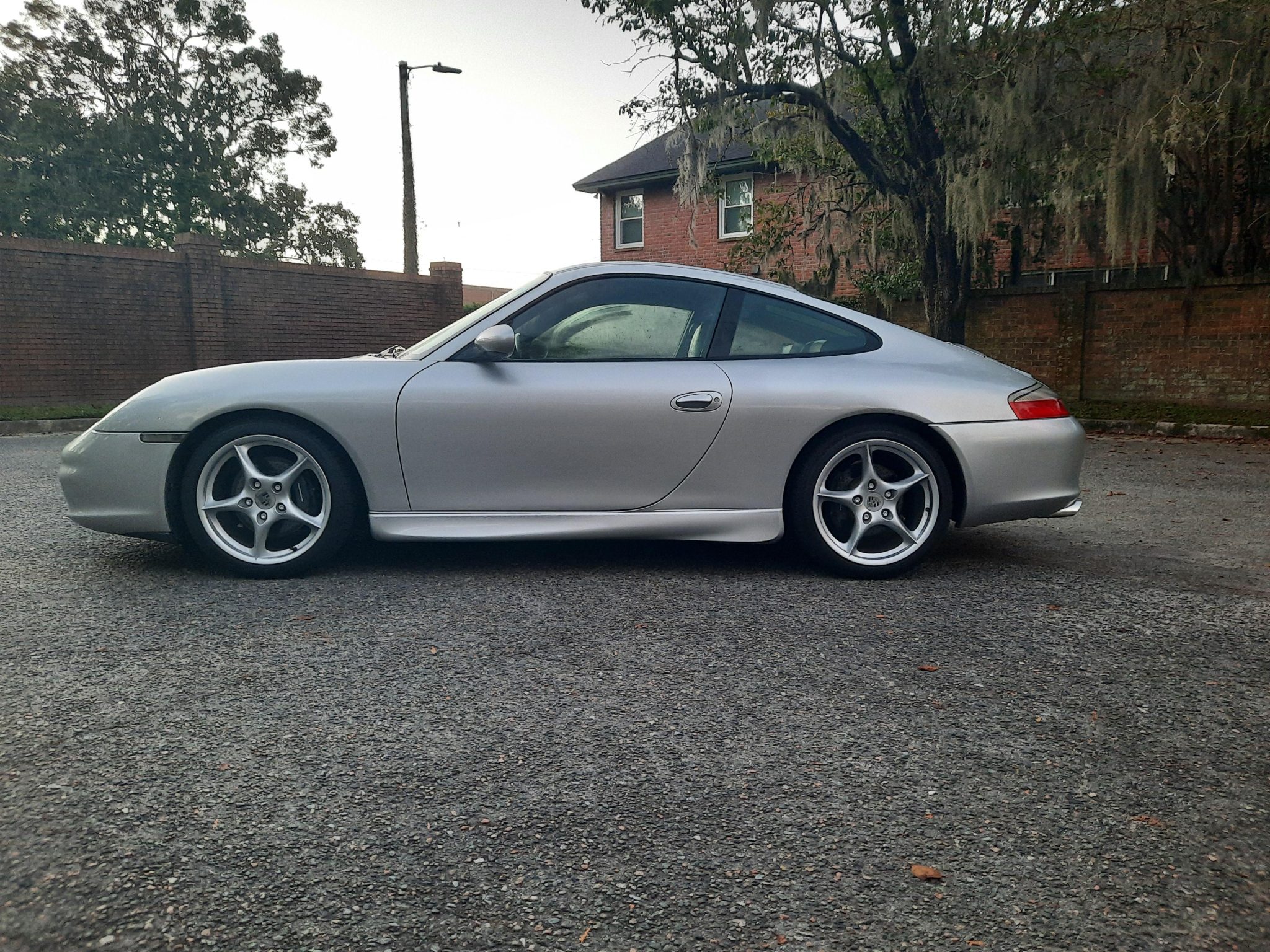 The 18” Carrera II wheels are mounted with Continental ExtremeContact Sport SRS tires, which show date codes from 2018, 2022, and 2023. Braking is handled by four-piston Porsche-branded calipers fitted over cross-drilled rotors at all four corners, and the car is equipped with Porsche Stability Management.