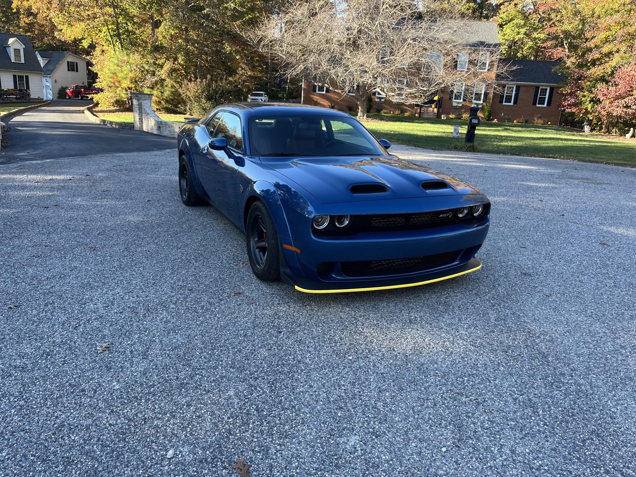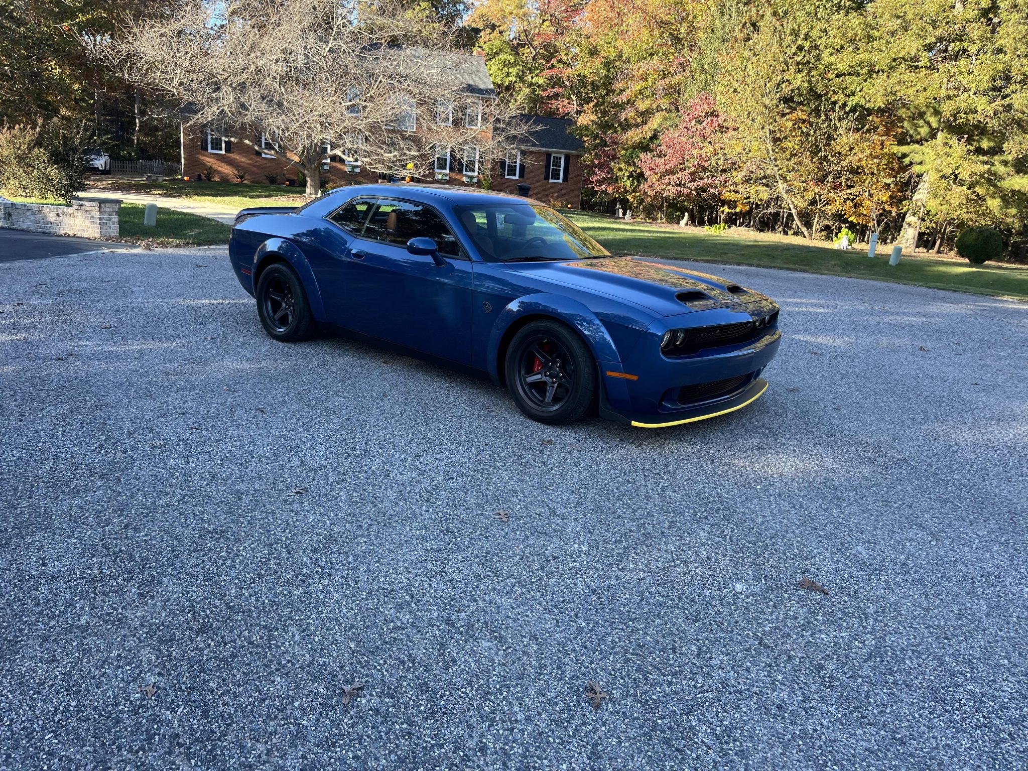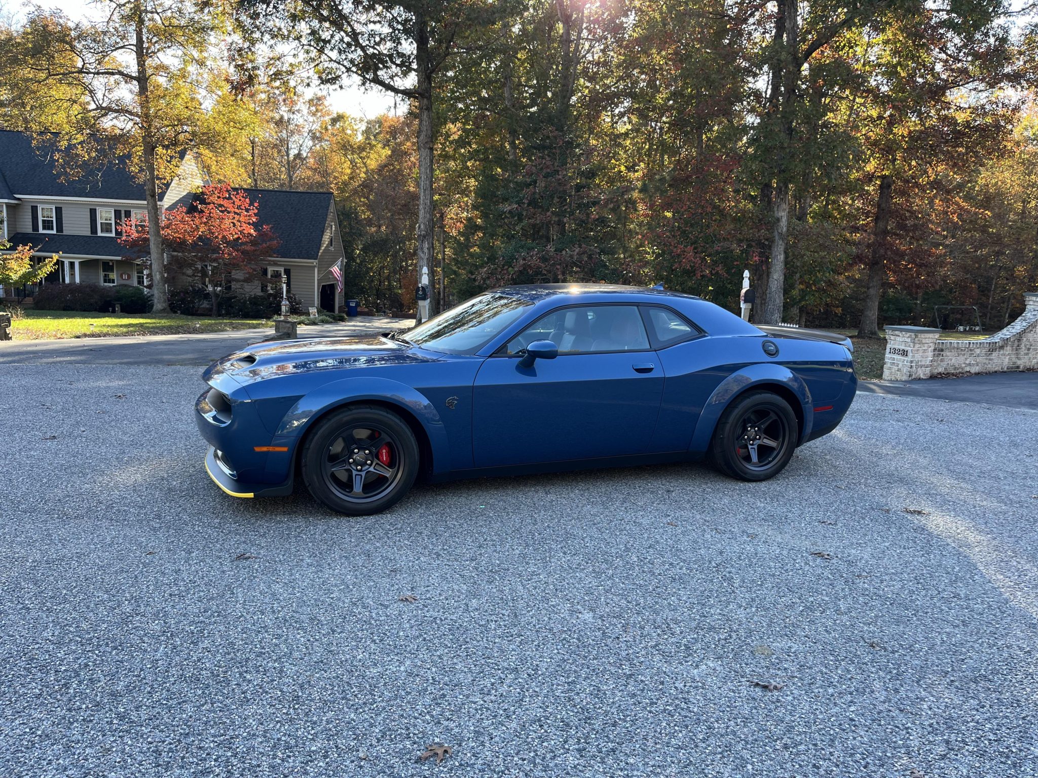 The 18″ aluminum wheels are mounted with Nitto tires. The Super Stock suspension features adaptive Bilstein dampers, and the car is equipped with electronic stability control and Launch Control with Launch Assist, which adjusts engine-management profiles and activates a line-lock function. Braking is provided by red-finished four-piston Brembo calipers at all four corners.