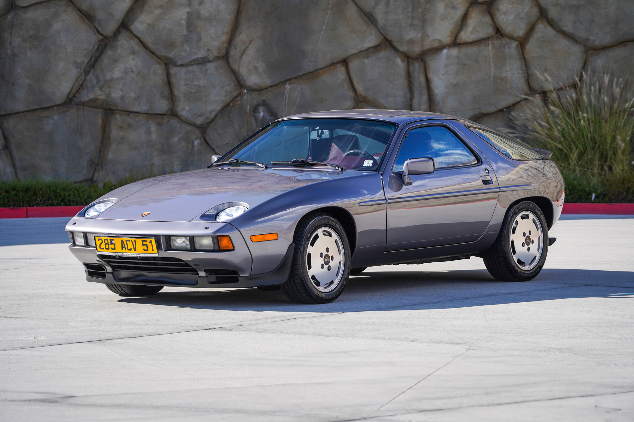 Polished 16″ seven-hole alloy wheels were mounted with Pantera Sport A/S tires in 2020. Compared to earlier models, the 1986.5 928S features revised brakes with an anti-lock disc at each corner.