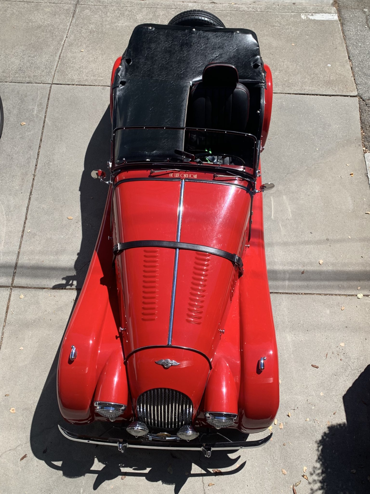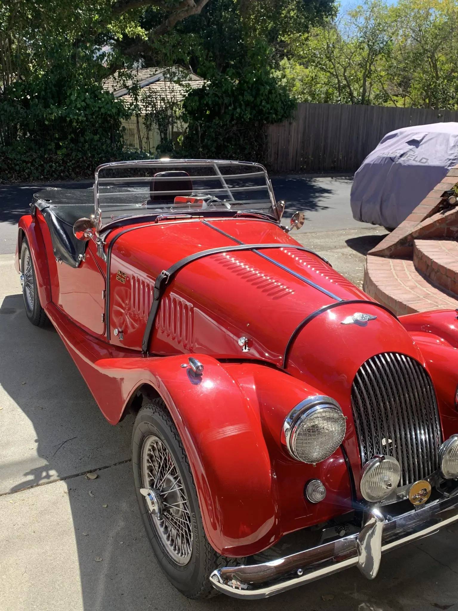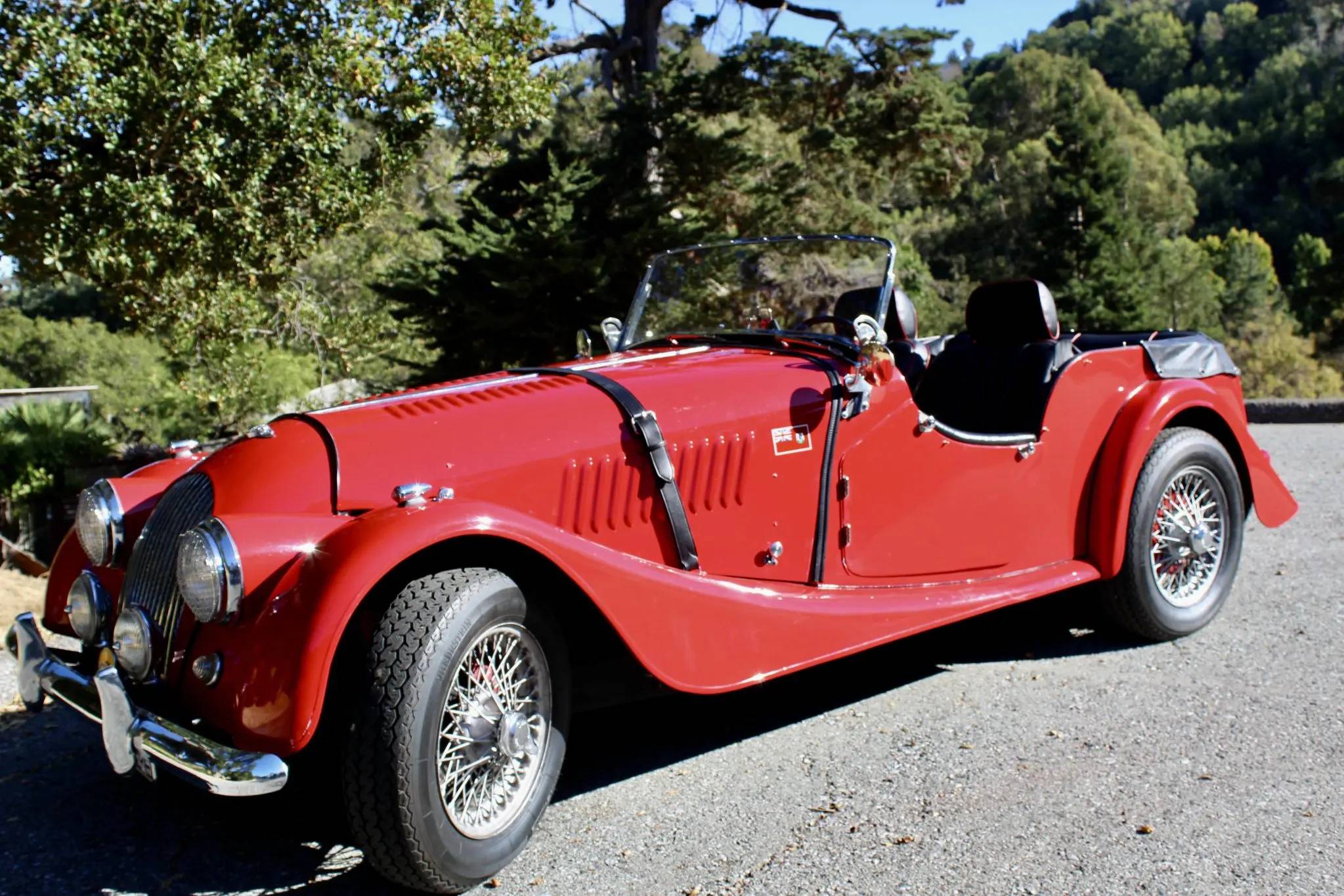 Silver-finished 15″ wire wheels with knock-off hubs are mounted with 165HR15 Vredestein Sprint Classic tires that were installed in 2019; an older spare is affixed to the rear of the car. Braking is provided by front discs and rear drums, and a dual brake master cylinder has been added along with Koni rear tube shocks. The front brake calipers were rebuilt and the wheel bearings were replaced in 2018.
