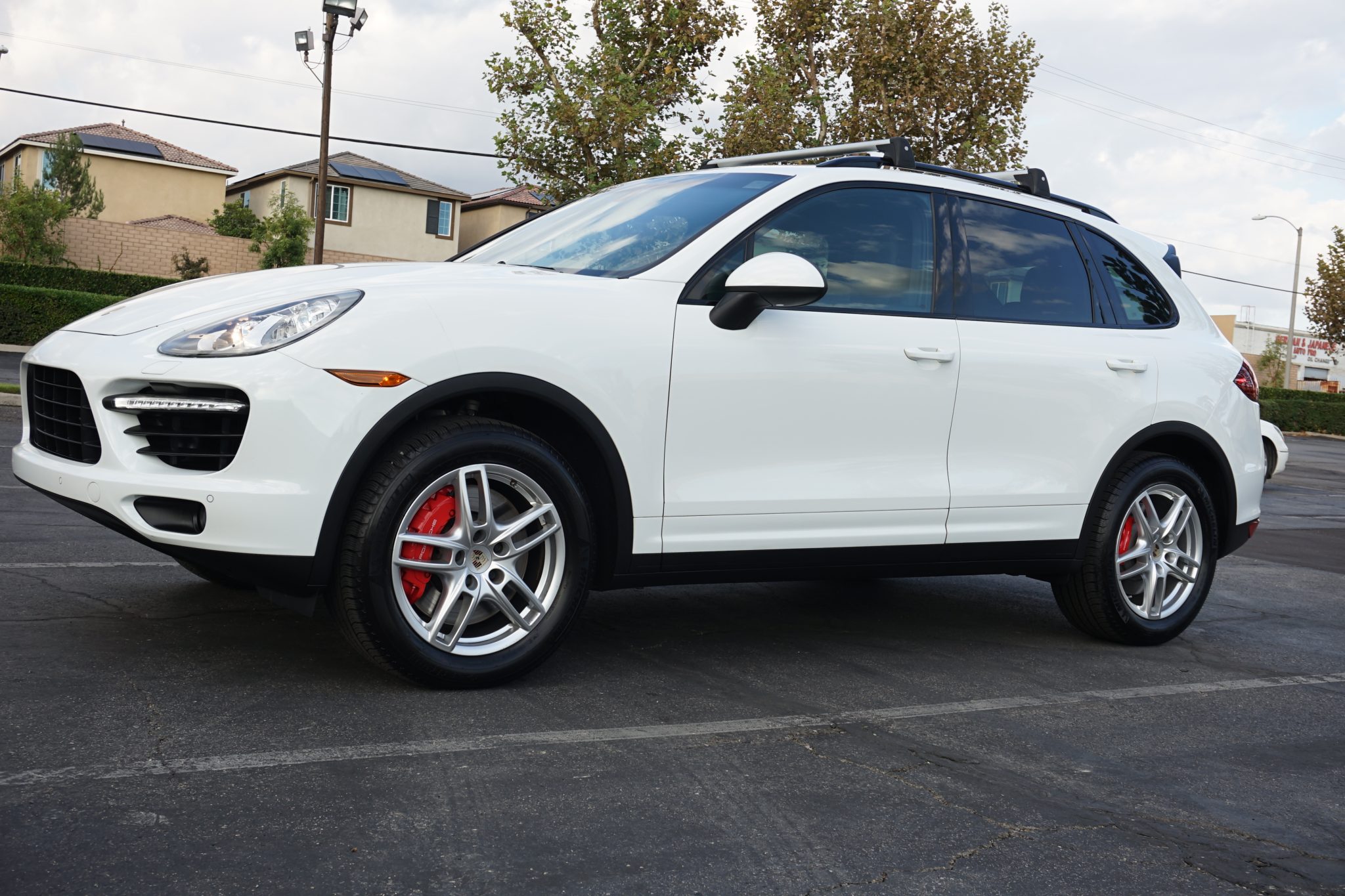 The 19″ Cayenne Turbo alloy wheels are mounted with 265/50 Michelin Latitude tires. The truck is equipped with an adjustable air suspension. Stopping power is provided by red-finished six-piston front and four-piston rear brake calipers over ventilated rotors at each corner.