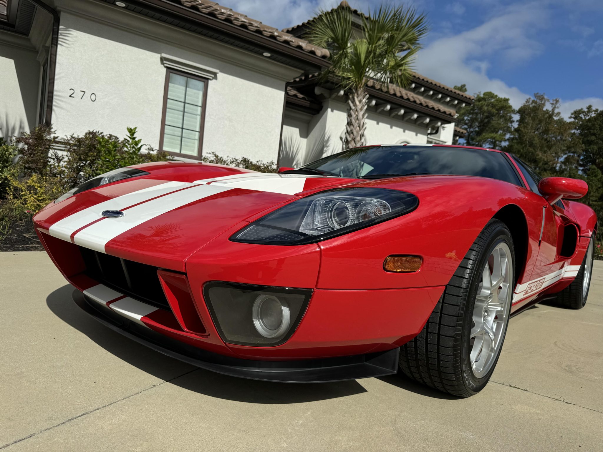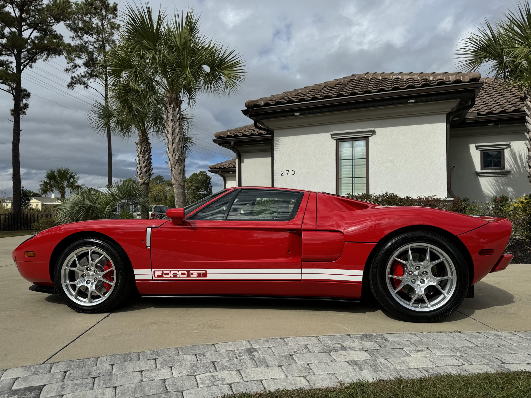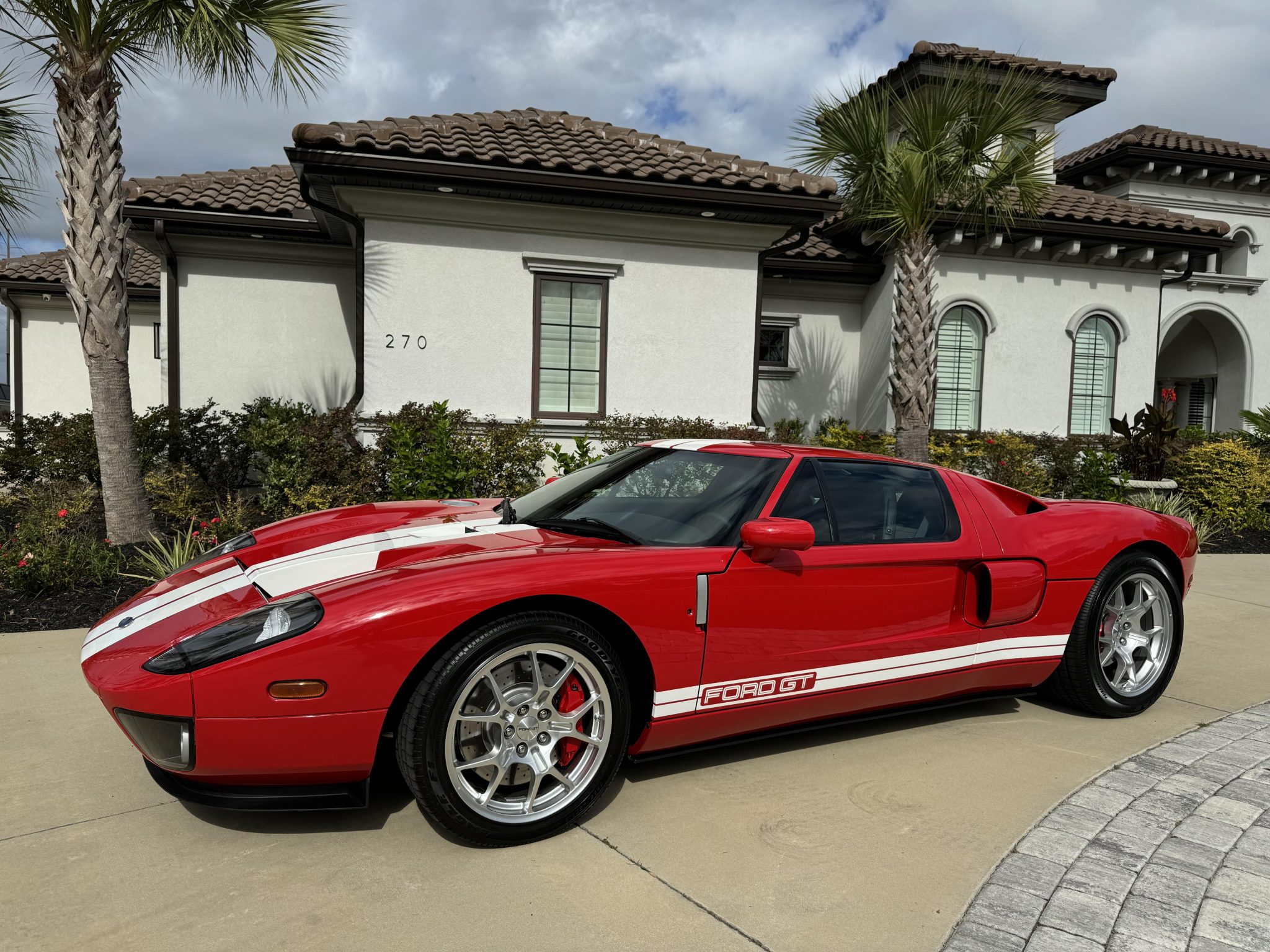 Factory-optional BBS forged lightweight aluminum wheels measure 18” up front and 19” out back and are mounted with Goodyear Eagle F1 Supercar tires that measure 235/45 and 315/40, respectively. The Brembo braking system features optional red-painted four-piston monoblock calipers with cross-drilled and ventilated rotors that measure 14” up front and 13.2” out back.