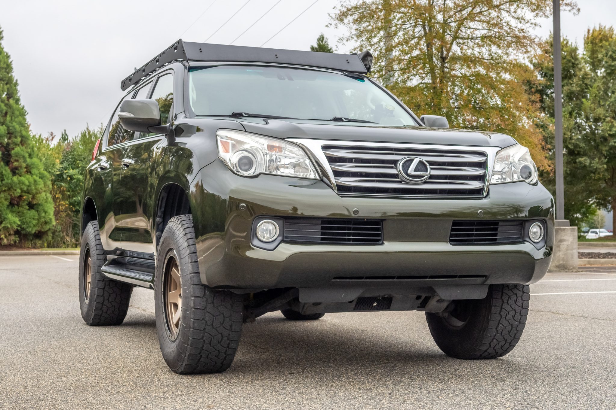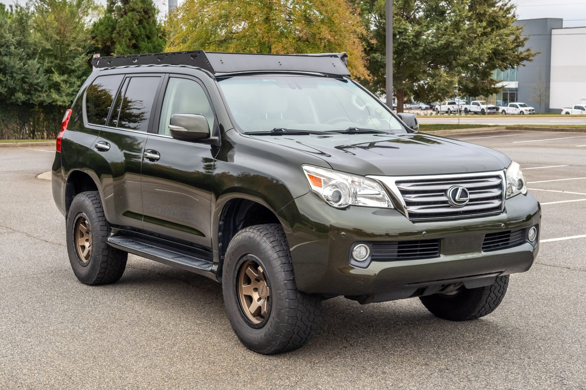The bronze-finished Rotiform 17″ wheels are mounted with 285/70 Toyo Open Country tires. A spare wheel and tire assembly is secured to the undercarriage. The truck is equipped with a Dobinsons 2.5″ lift, PowerStop drilled and slotted brake rotors. The rear brake pads are due for replacement.