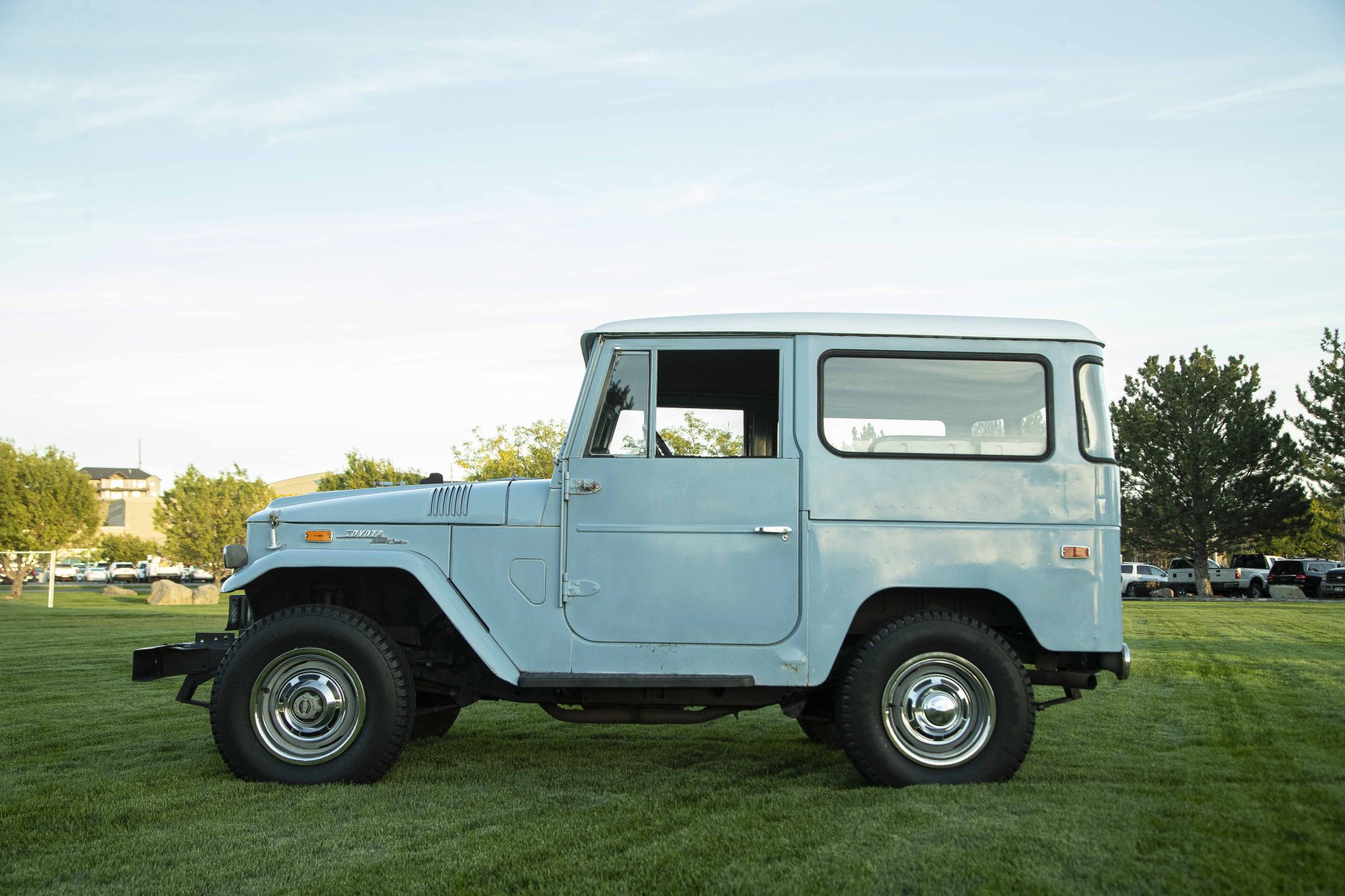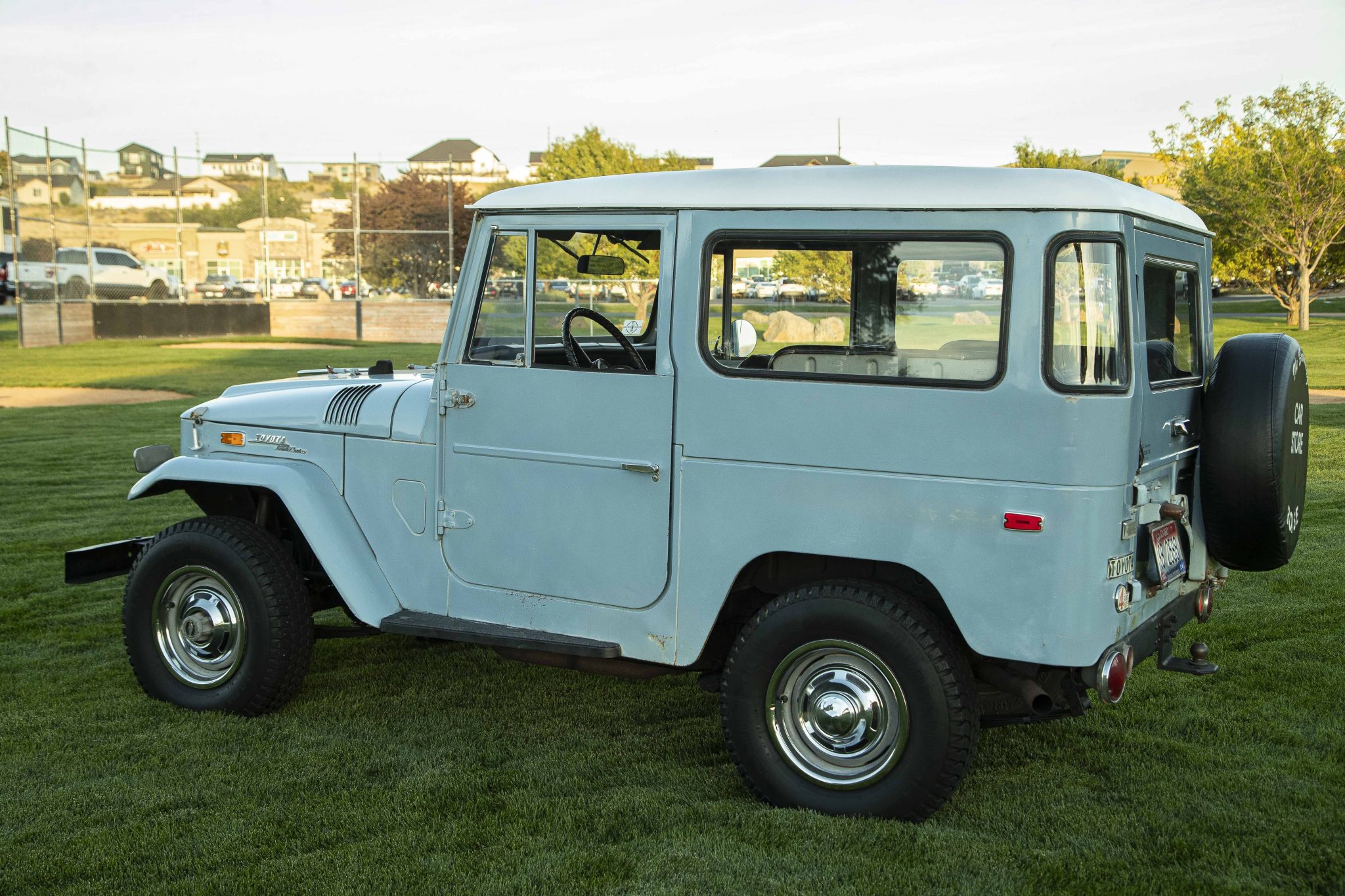 Silver-finished 15″ steel wheels with bright trim rings are mounted with 235/75 Eldorado ZR4 Radial LT tires. The front axle is equipped with Warn manually locking hubs, and braking is provided by drums at all four corners.