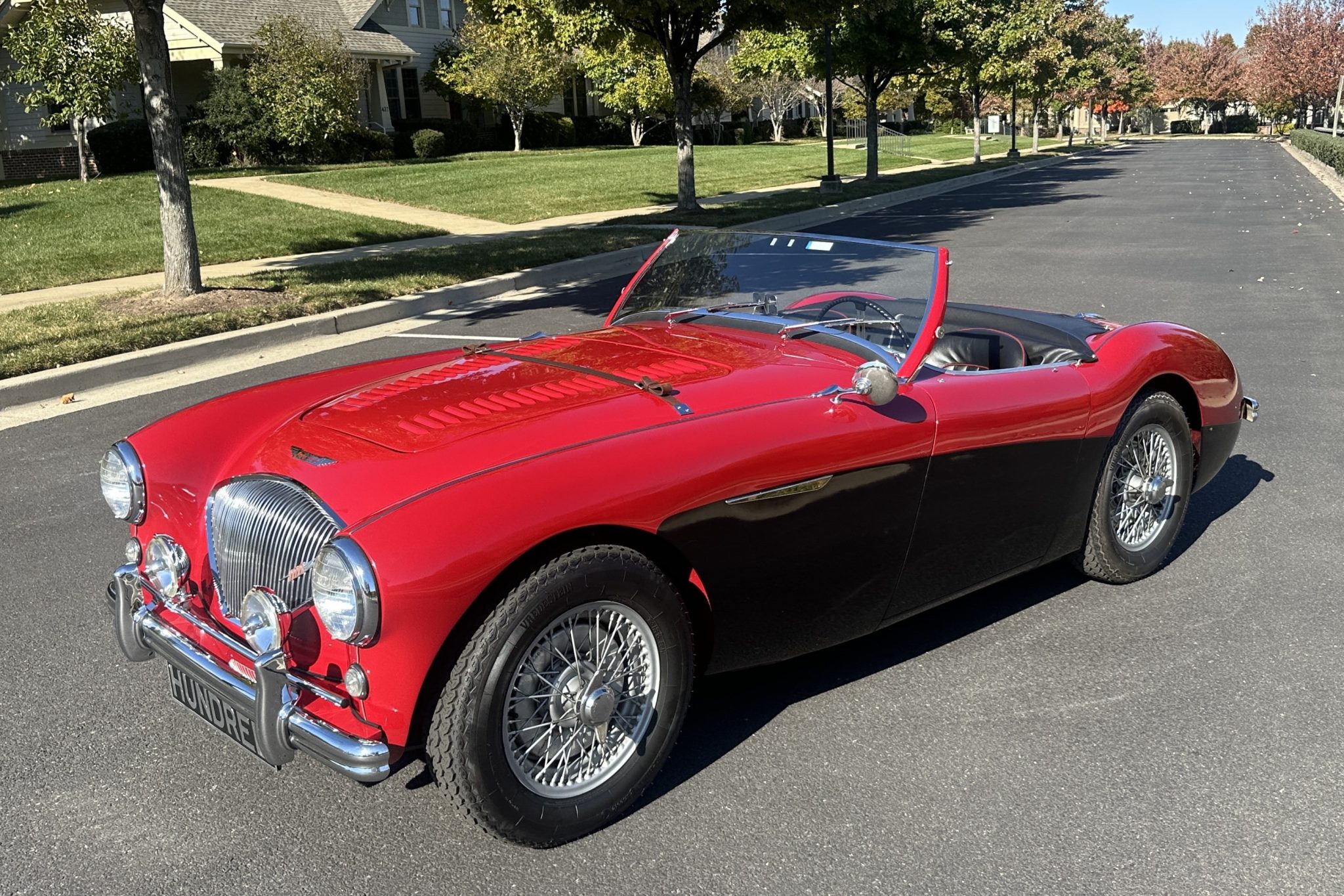 Silver-finished 15″ knock-off wire wheels are wrapped with 165HR15 Vredestein Sprint Classic tires that were installed in 2016. Braking is handled by drums at each corner. The steering column, the steering box, and the turn-signal switch were replaced in 2017.