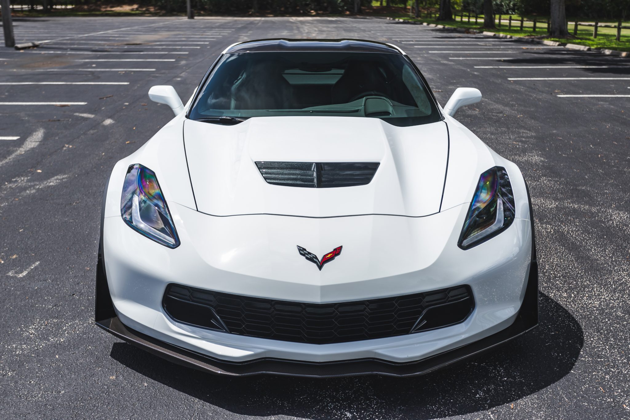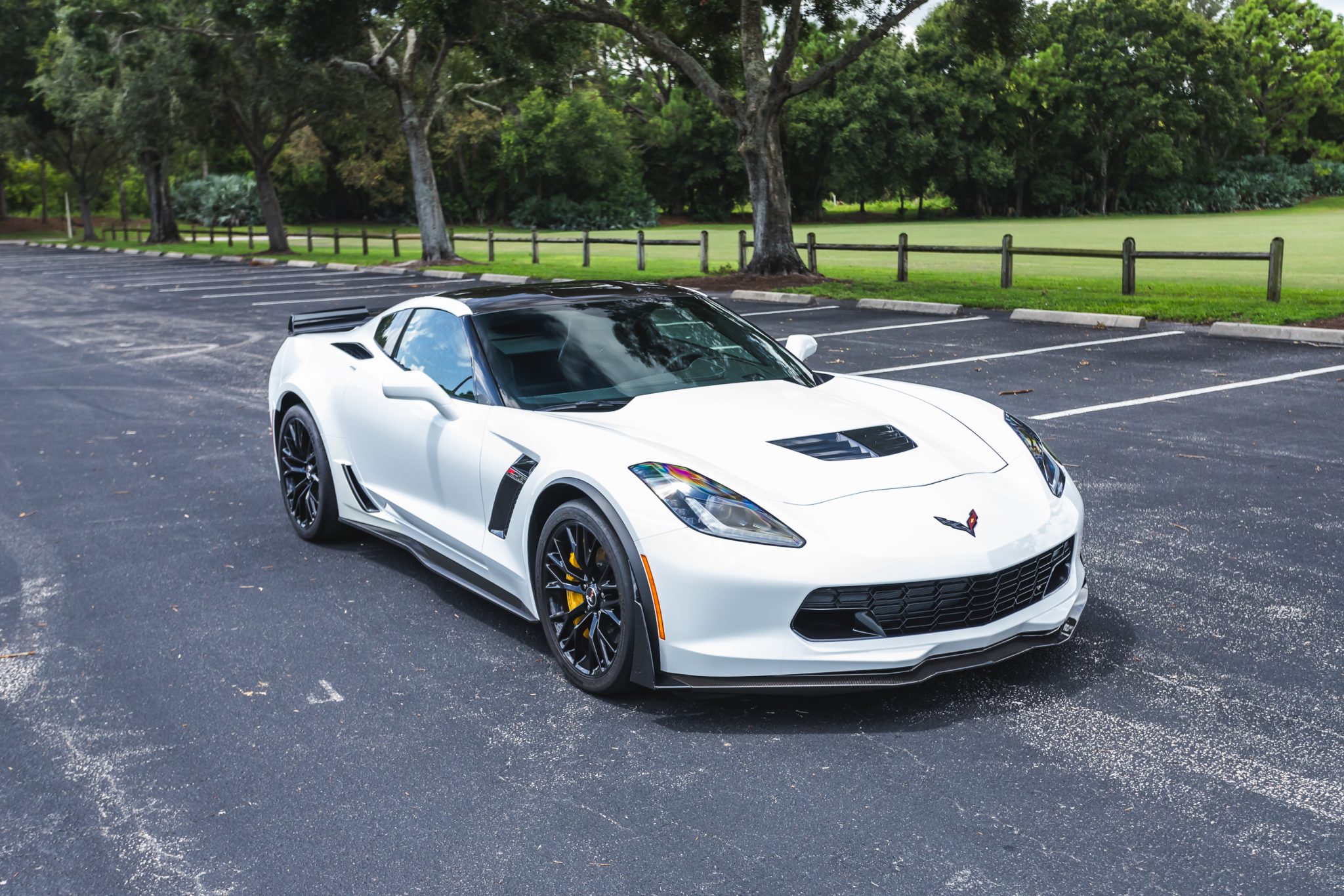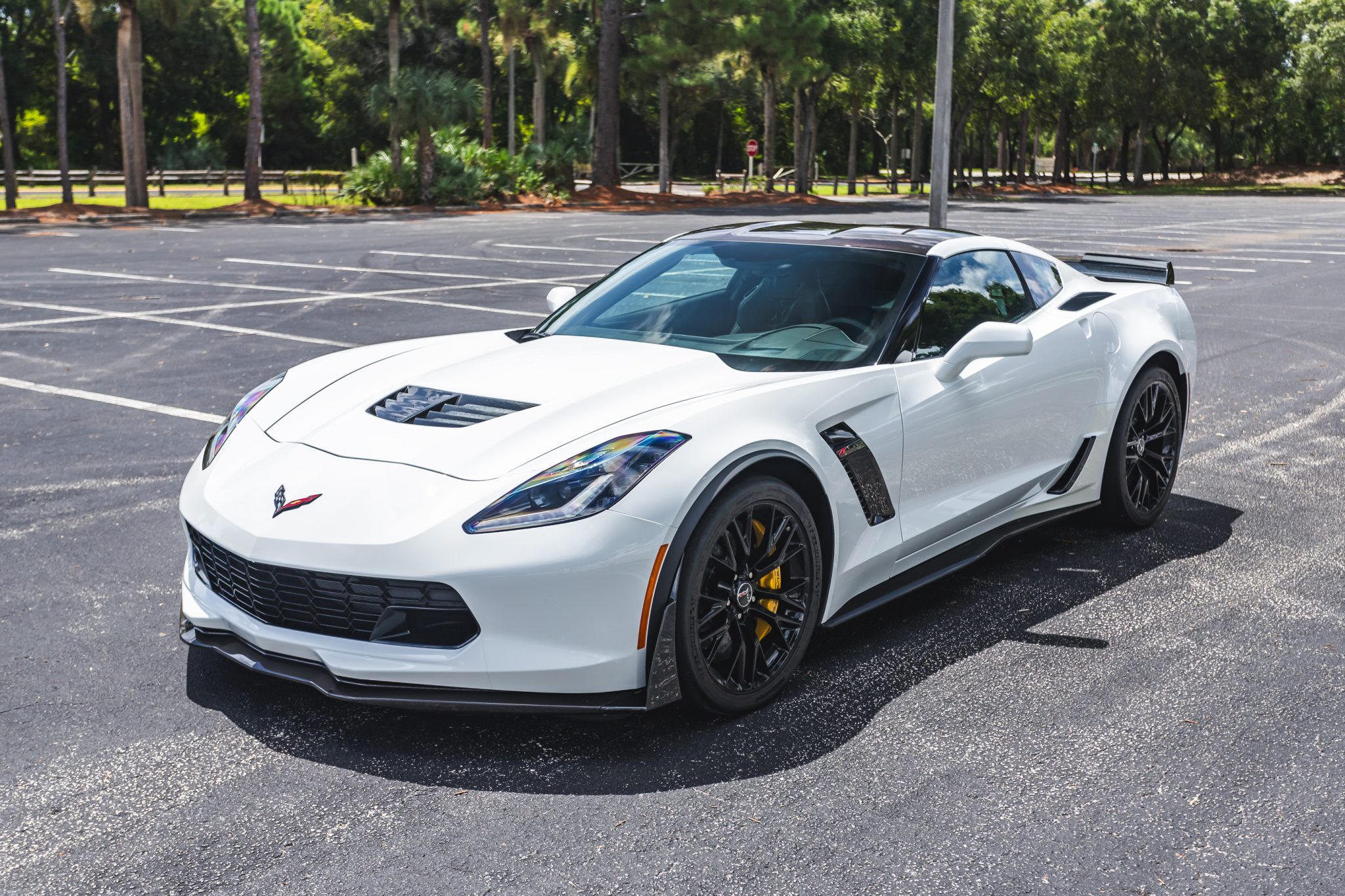 Black-finished 19″ and 20″ Z06 alloy wheels are mounted with Michelin Pilot Sport Cup tires. The car is equipped with Magnetic Ride Control, Performance Traction Management, and an Active Handling System. Stopping power is provided by yellow-finished Brembo brake calipers over slotted and ventilated carbon-ceramic rotors at each corner.
