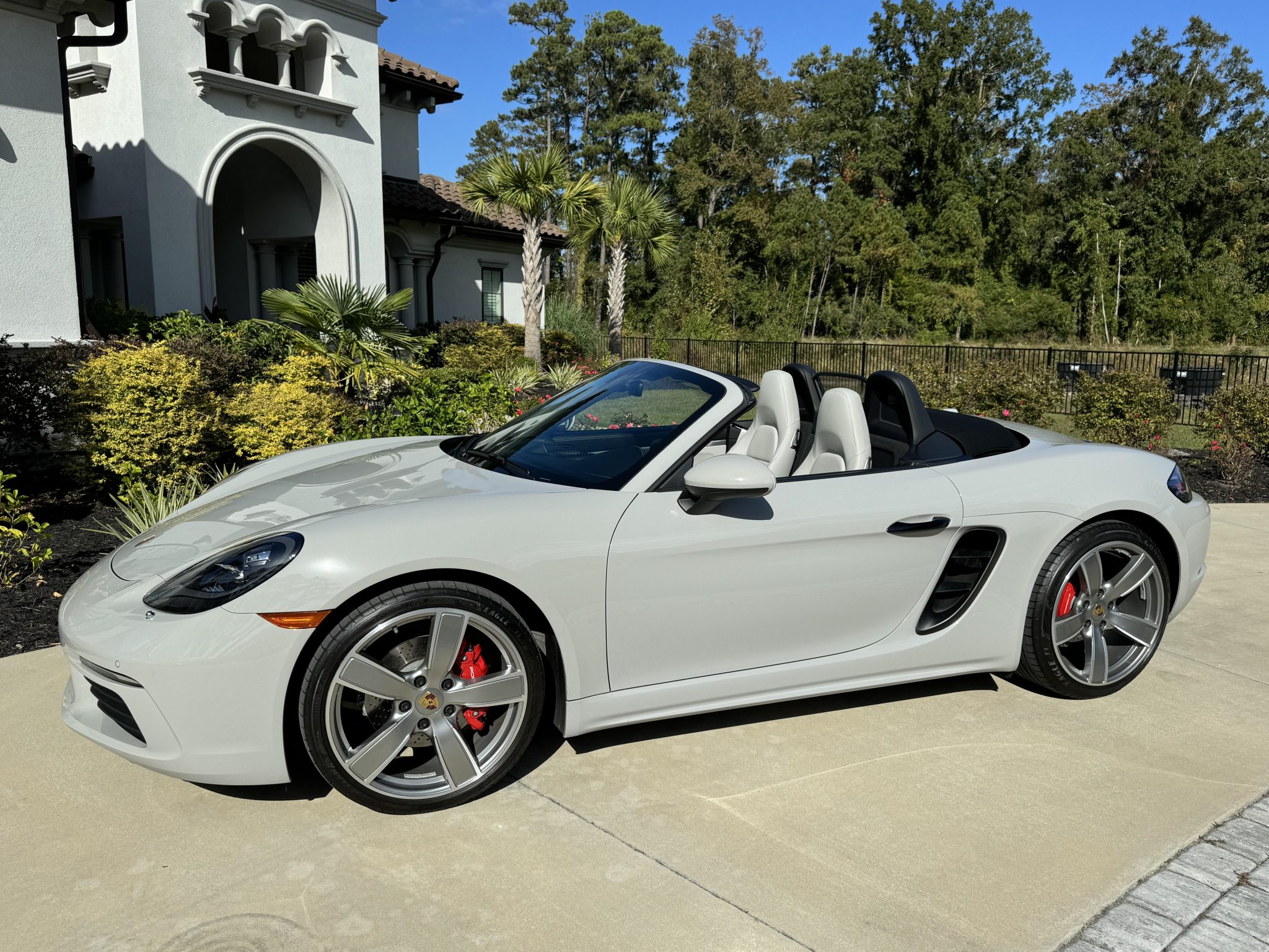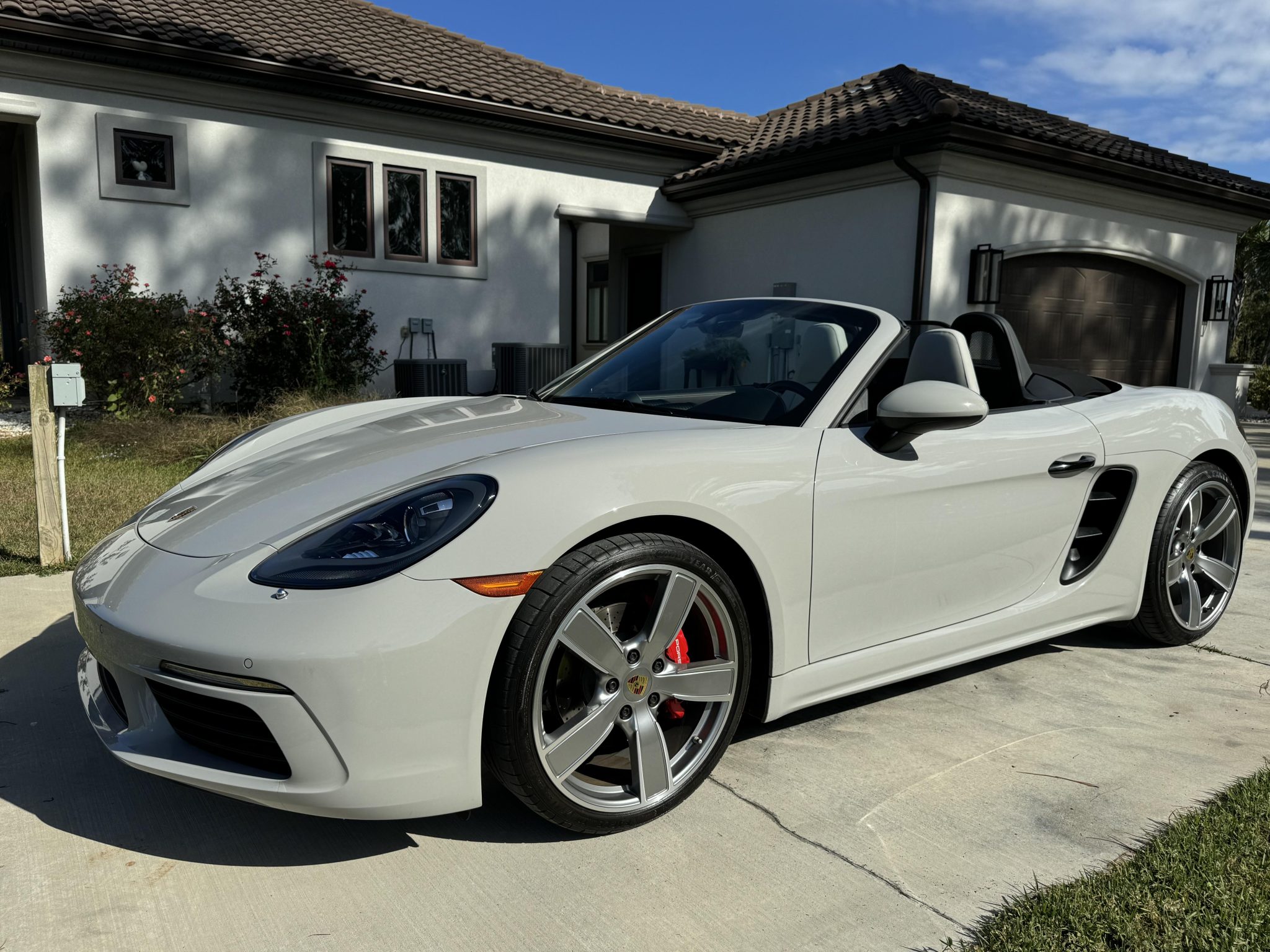 The 20″ Carrera Sport wheels are mounted with Goodyear Eagle F1 tires. Braking is handled by red Porsche-branded calipers over cross-drilled and ventilated discs at each corner. A brake fluid flush was performed in October 2024.