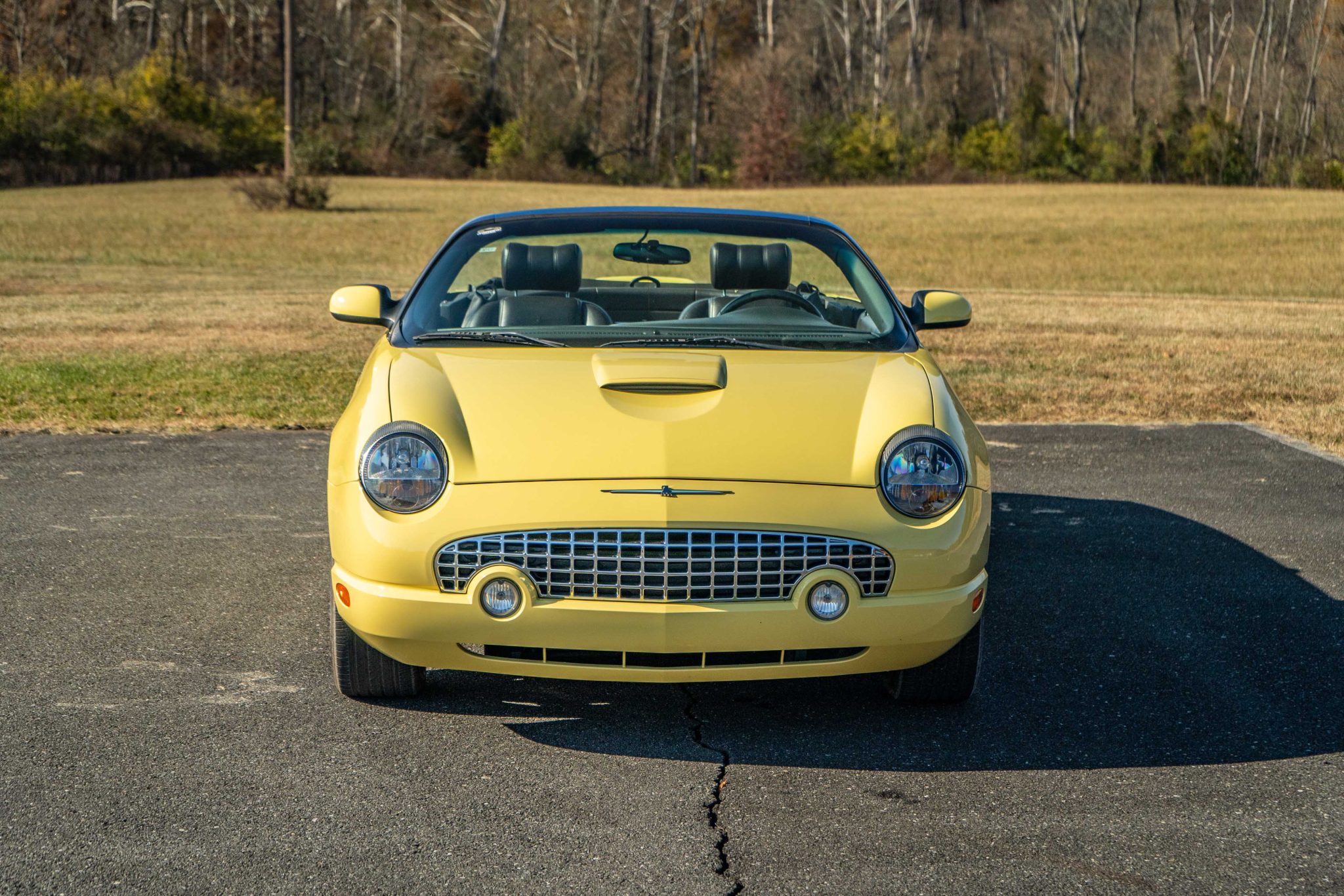 The 17″ seven-spoke chrome wheels feature Thunderbird-branded center caps and are mounted with 255/50 Michelin HX MXM4 tires. The car is equipped with traction control, four-wheel independent suspension, and ventilated disc brakes.