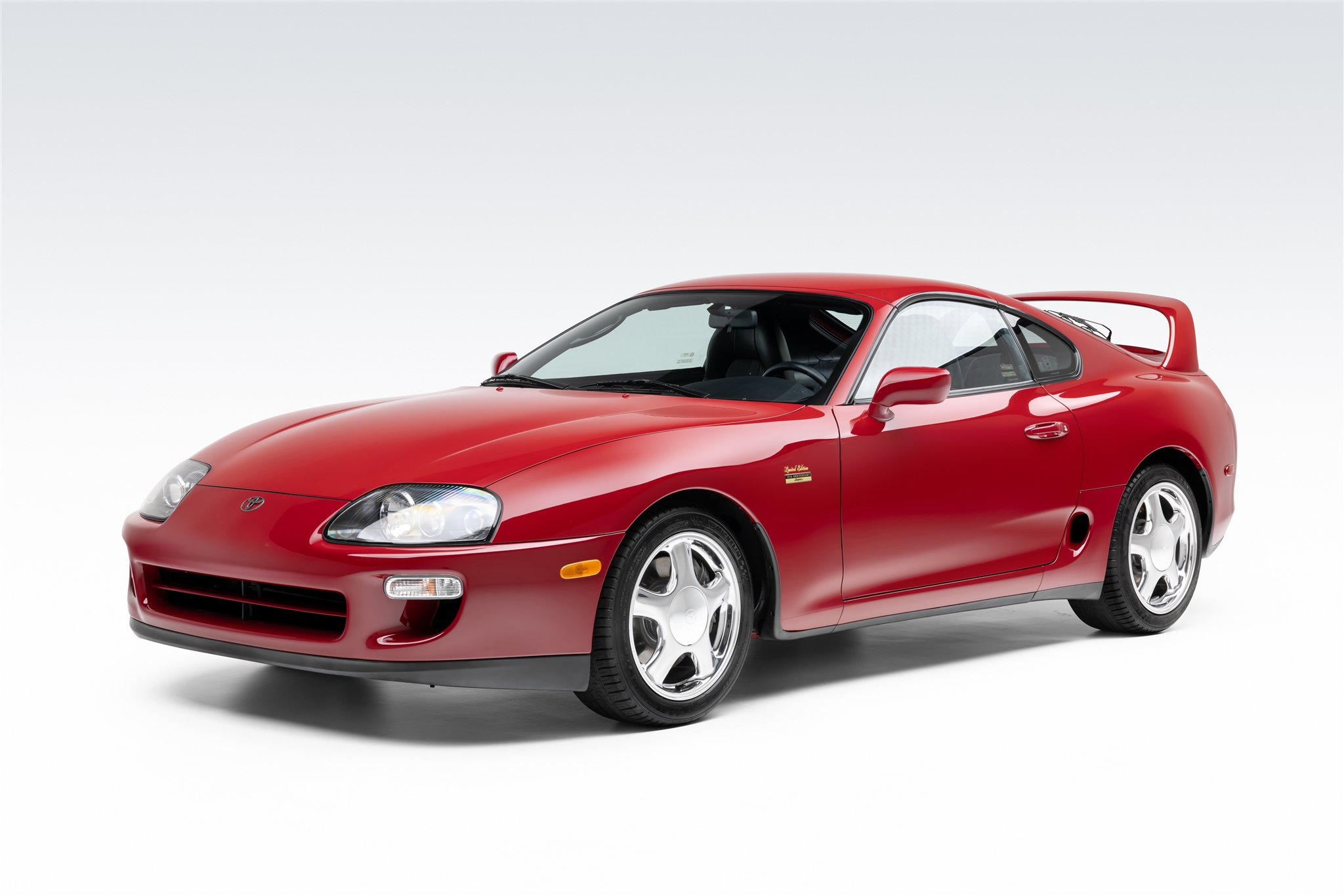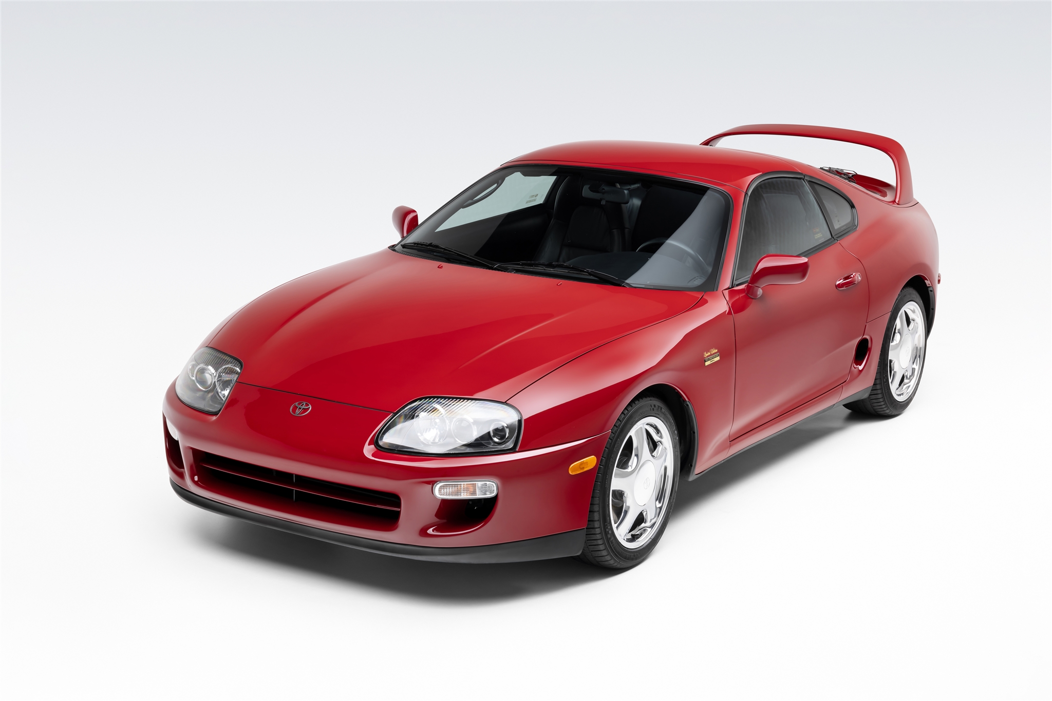 Five-spoke 17″ alloy wheels are mounted with Michelin Pilot Sport A/S 3 tires. The car rides on a four-wheel double-wishbone suspension system and features speed-sensing progressive power rack-and-pinion steering and electronic traction control. Braking is provided by discs with Supra-script calipers. Curb marks are noted on the right-rear wheel.