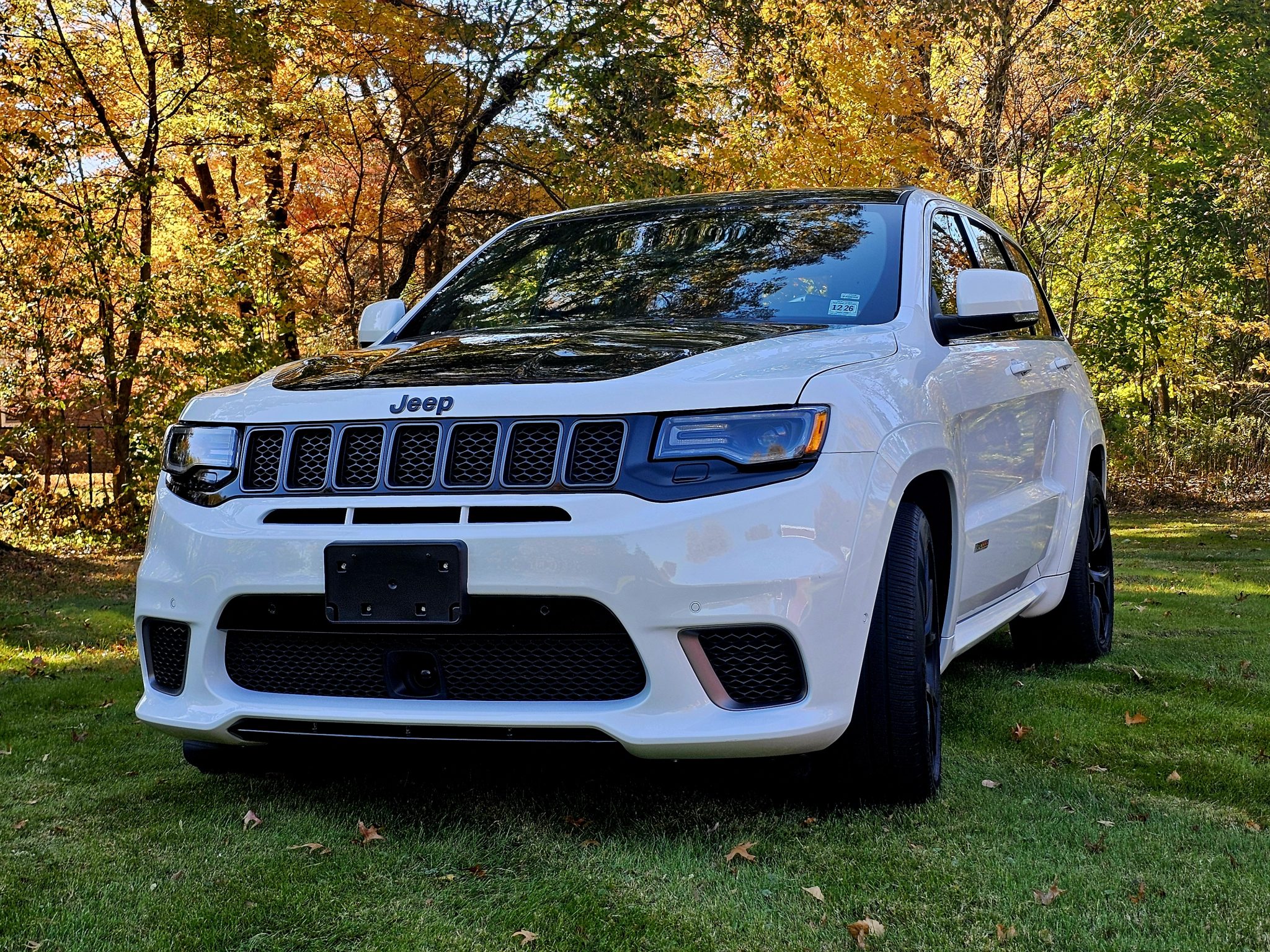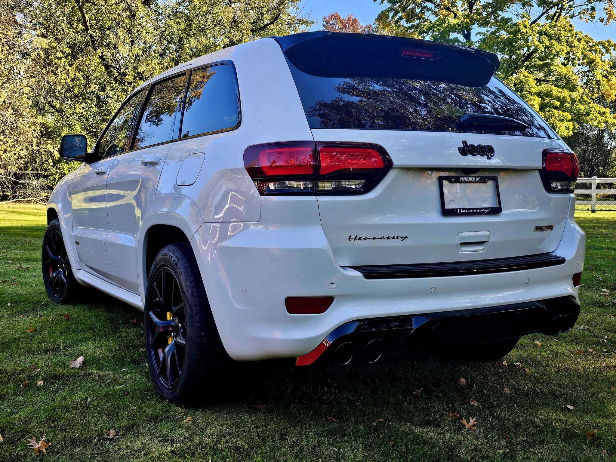 Black Satin-finished 20″ aluminum wheels are mounted with 295/45 Pirelli Scorpion Zero tires. The Trackhawk rides on a Bilstein competition suspension with adaptive damping and is equipped with a Selec-Trac system with launch control and five drive modes. Braking is provided by yellow-finished six-piston front and four-piston rear Brembo calipers as well as vented and slotted rotors. The brake fluid was flushed in May 2024, and the right-rear wheel was replaced. The removed wheel was repaired and is included in the sale.