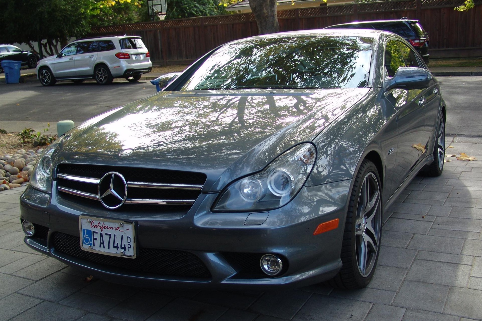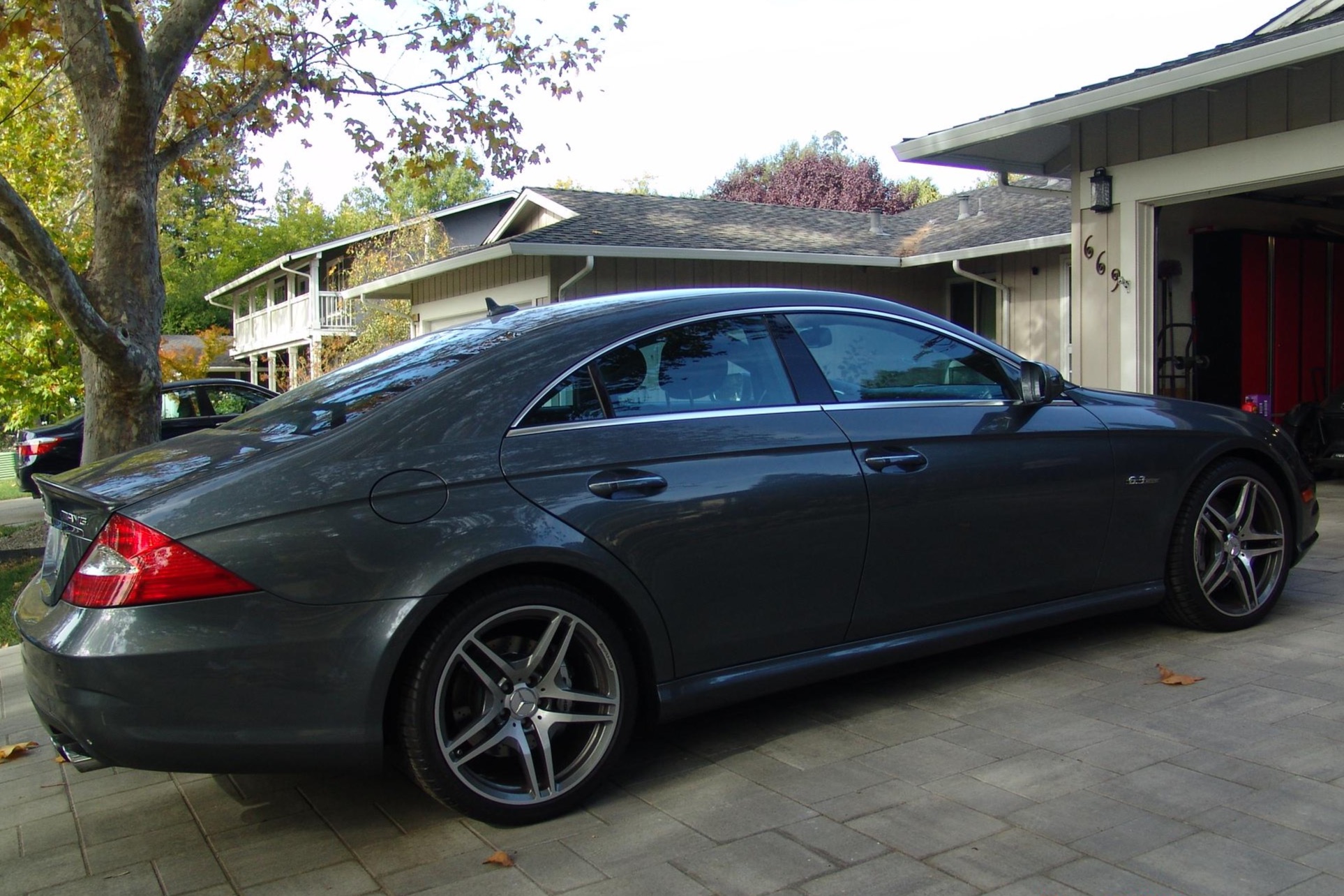 The 19″ AMG multi-spoke wheels are mounted with 255/35 front and 285/30 rear Michelin Pilot Sport A/S 3+ tires. The car is equipped with an Electronic Stability Program (ESP), speed-sensitive power steering, and Airmatic Dual Control air suspension with Adaptive Damping System (ADS-II). Stopping power is provided by perforated and ventilated discs measuring 14.2″ and 13″ front and rear, respectively. Curb marks are visible on the left-front wheel.