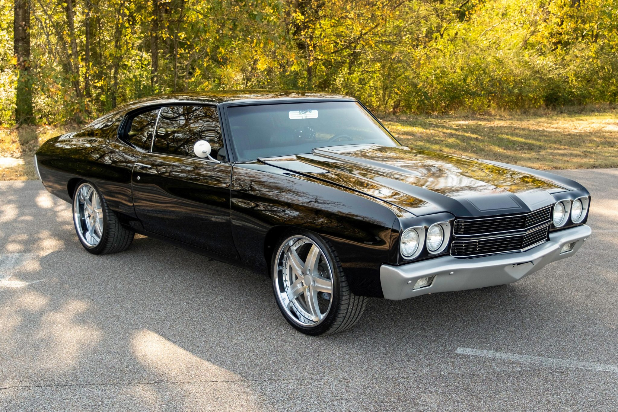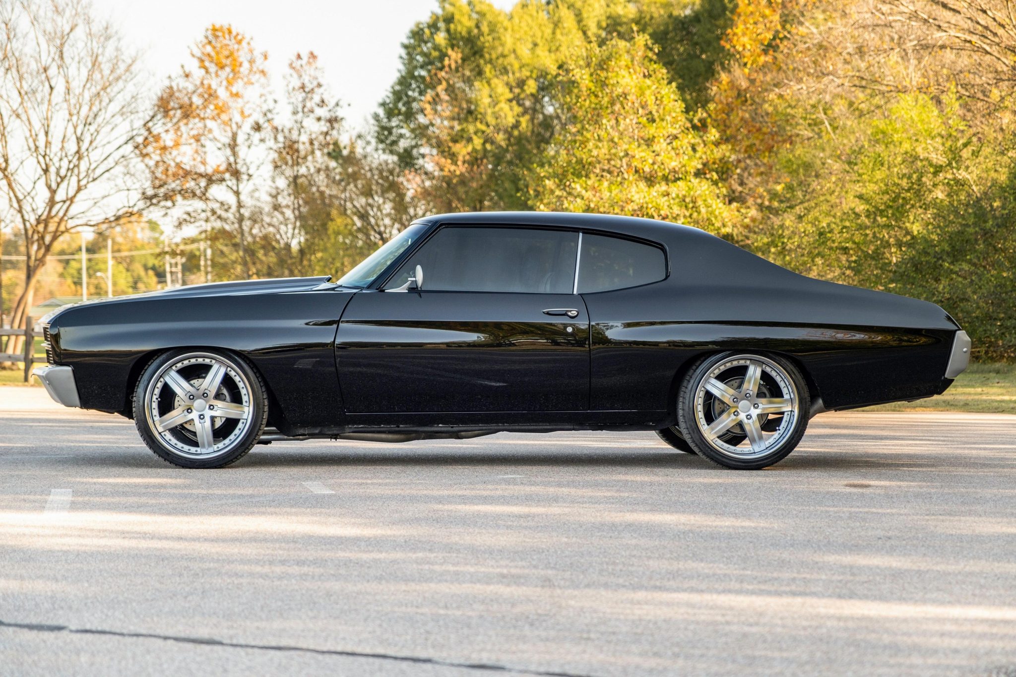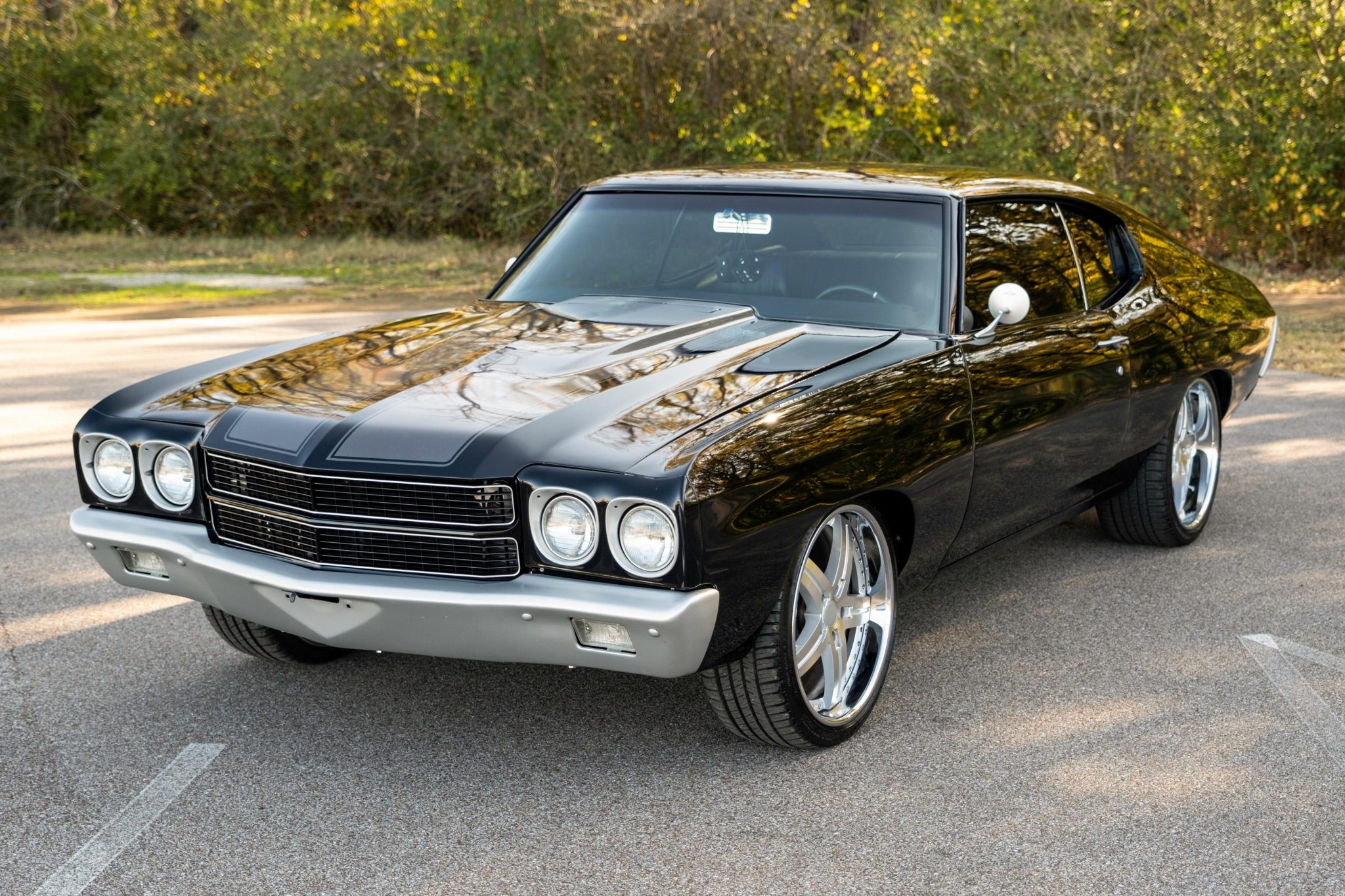 Beyern 20″ five-spoke wheels are wrapped in 245/35 front and 285/30 rear tires, and they are mounted over four-wheel disc brakes with drilled and slotted rotors. The car is equipped with power steering and features UMI Performance suspension components.