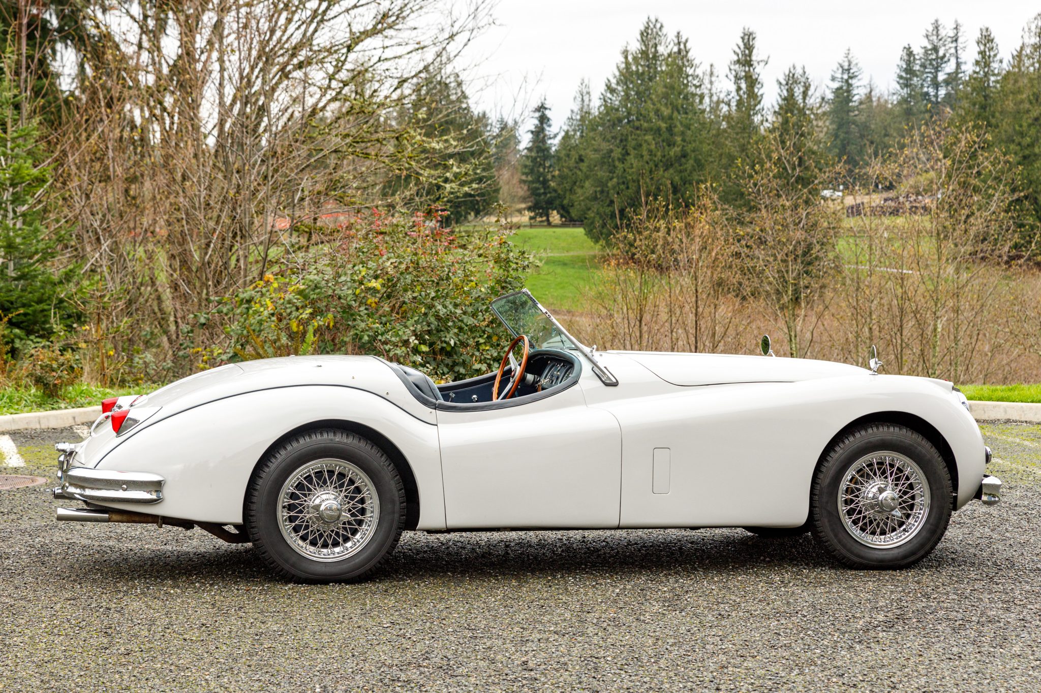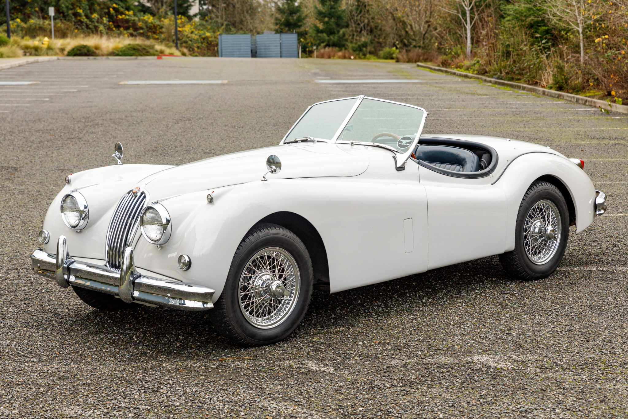 The car is said to have been repainted in 1977 in a color-matching Dove Gray. The removable black soft top has been replaced, and other features include a two-piece windshield, bright trim, fender-mounted dual side mirrors, dual exhaust outlets, rear bumperettes, and a full-width chrome front bumper with overriders. The windshield-wiper motor has been replaced, although a windshield-washer pump is not fitted. The seller notes chips and wear in the paint as well as wear to the soft top.