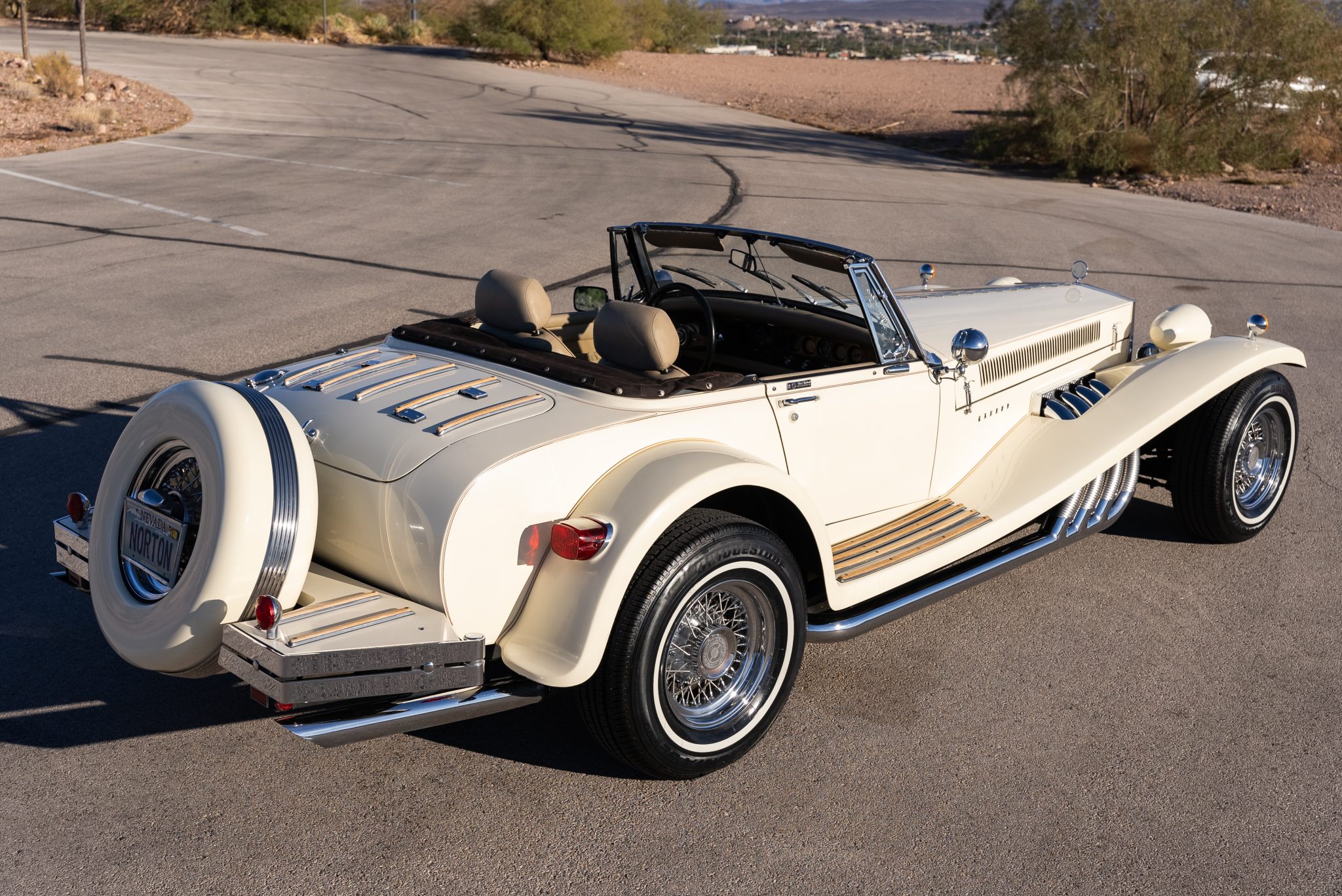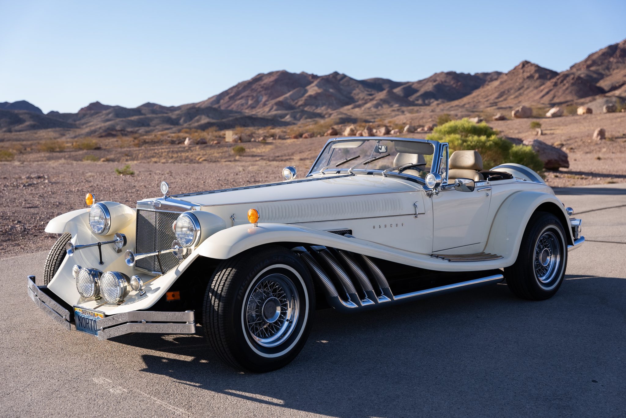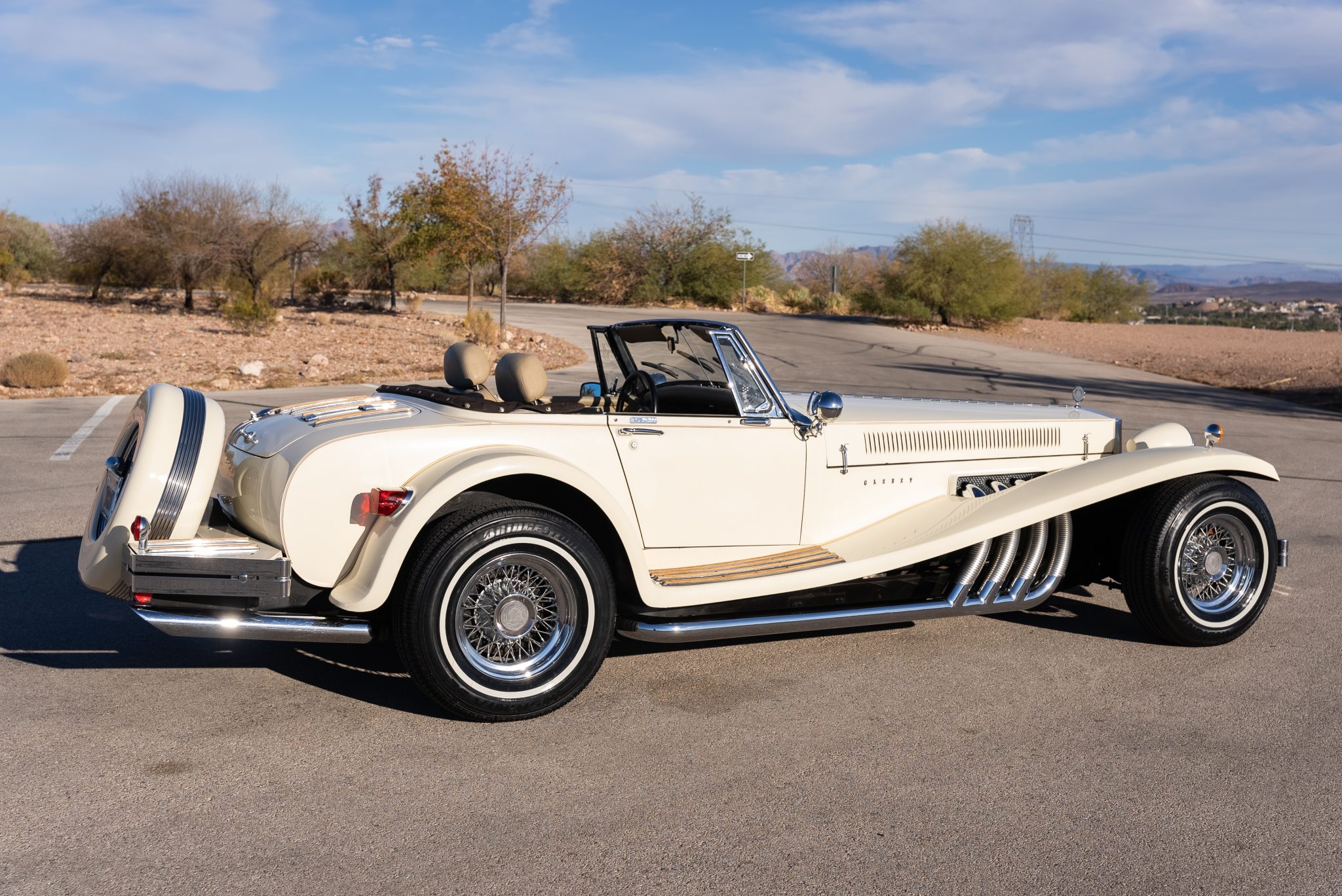 Chrome 15” wire wheels are mounted with 235/75 Bridgestone Insignia SE 200 narrow-whitewall tires. Braking is handled by front discs and rear drums.