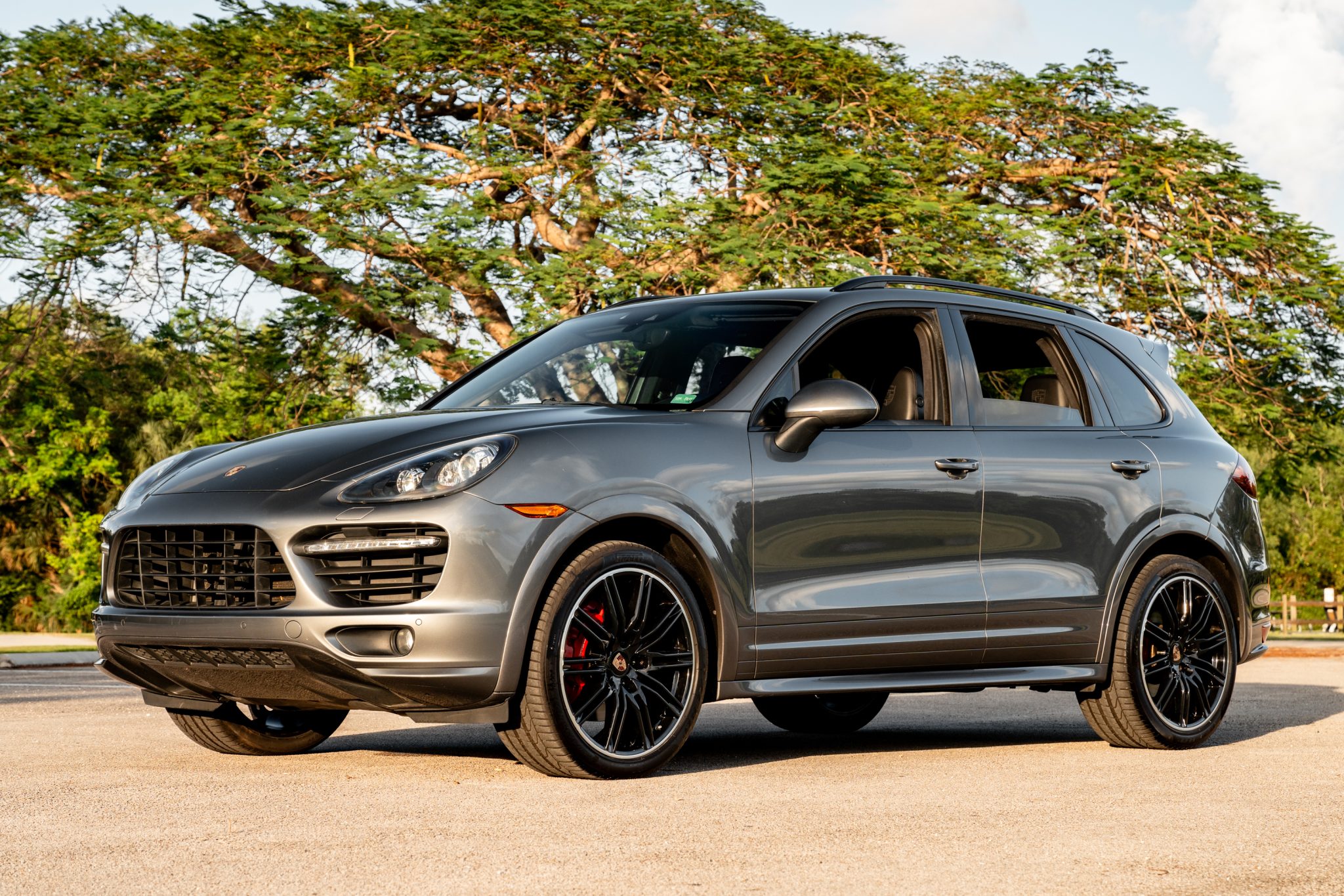 The 21″ Cayenne SportEdition alloy wheels are mounted with 295/35 Pirelli P Zero tires. The GTS sits 20mm lower than the standard S and features an adjustable air suspension with Porsche Active Suspension Management (PASM) and Porsche Traction Management (PTM) as standard. Stopping power is provided by red-finished six-piston front and four-piston rear brake calipers over ventilated rotors at each corner.
