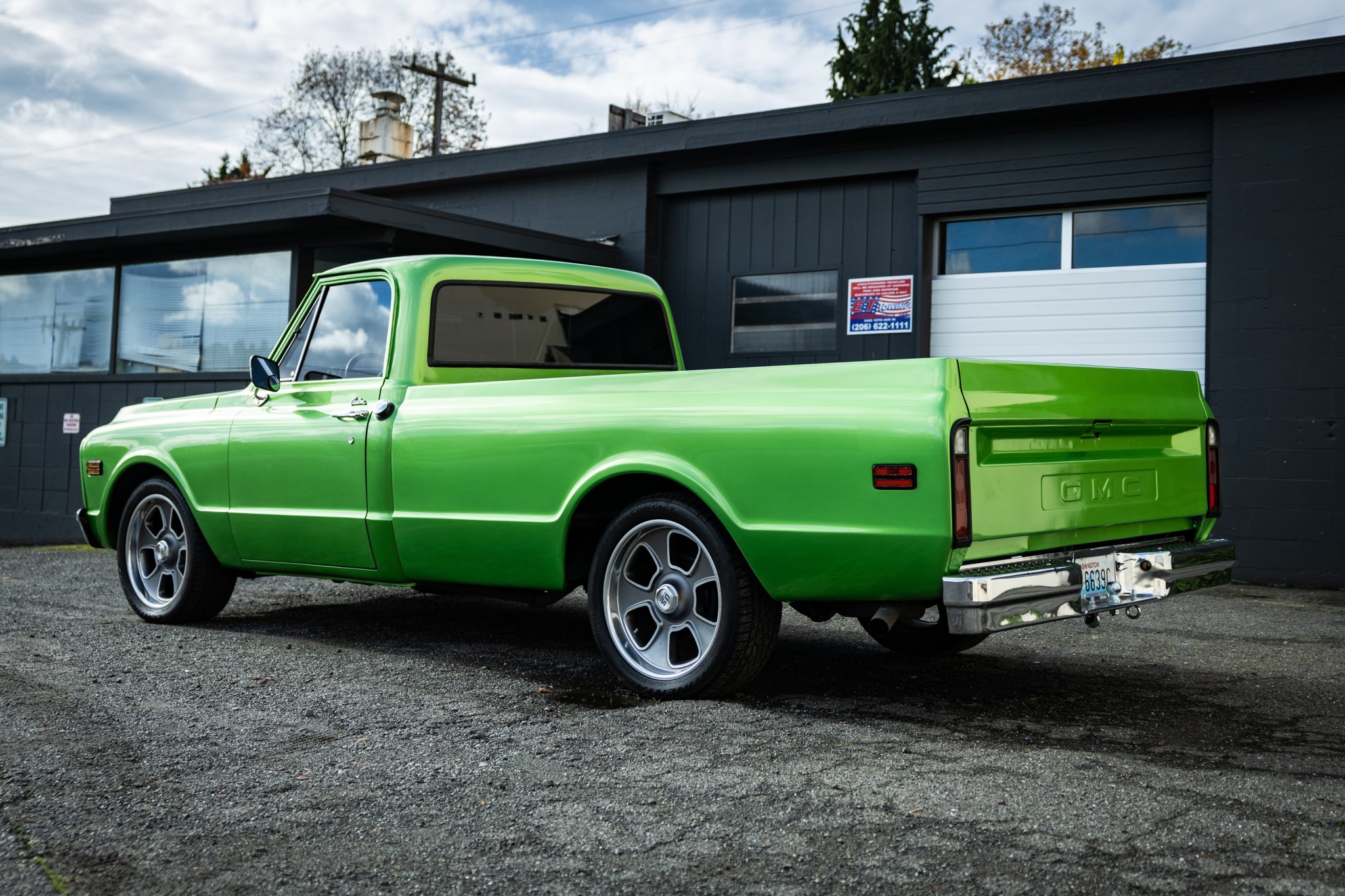 US Mags 20″ alloy wheels wear 255/45 Continental ExtremeContact tires, and stopping power is from power-assisted drum brakes. The ride height is lowered with modified suspension featuring front upper and lower control arms with coil springs as well as a solid rear axle with leaf springs.