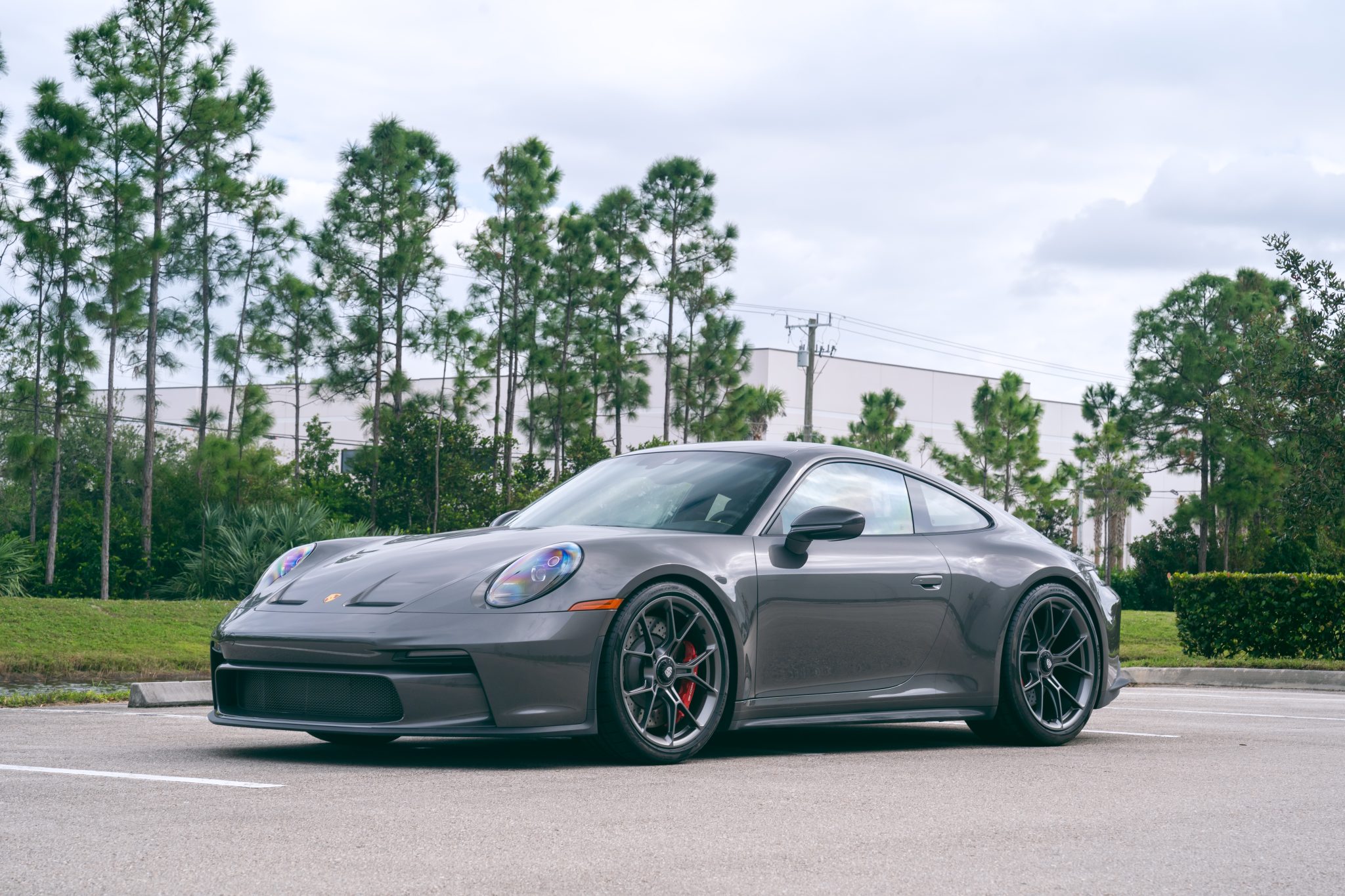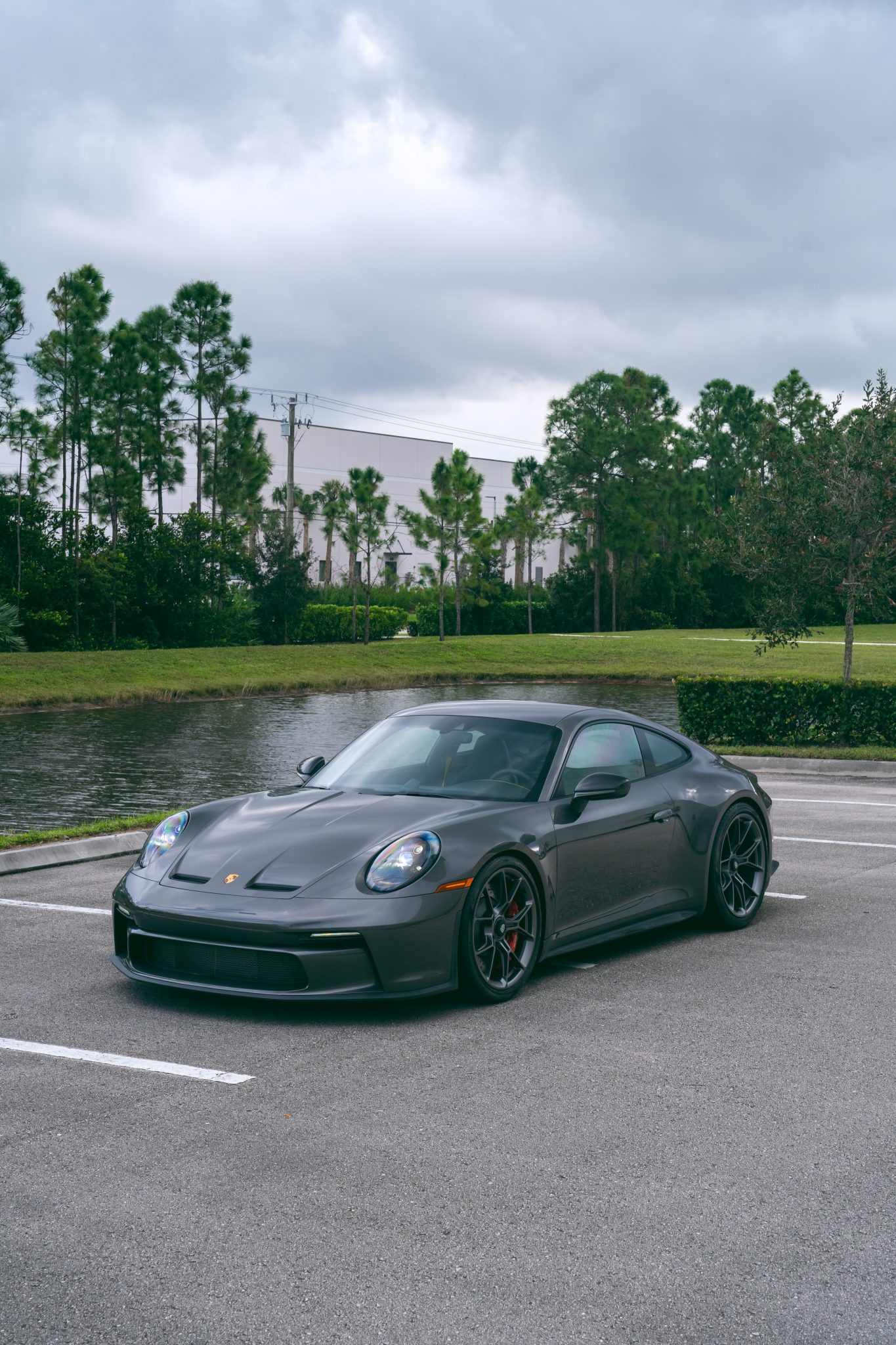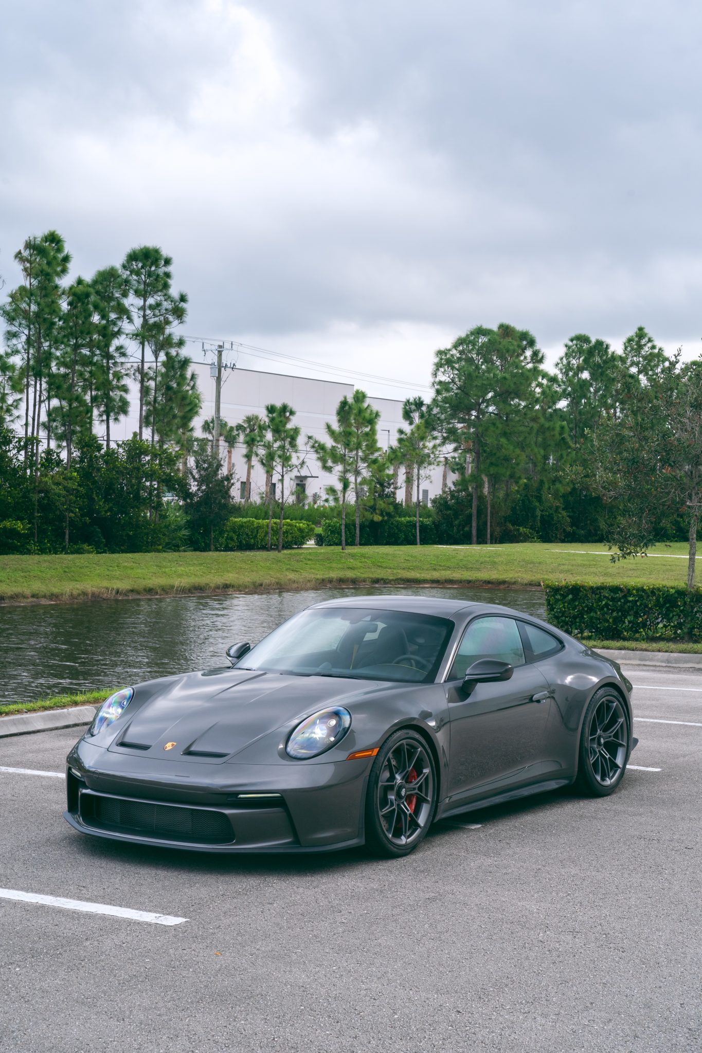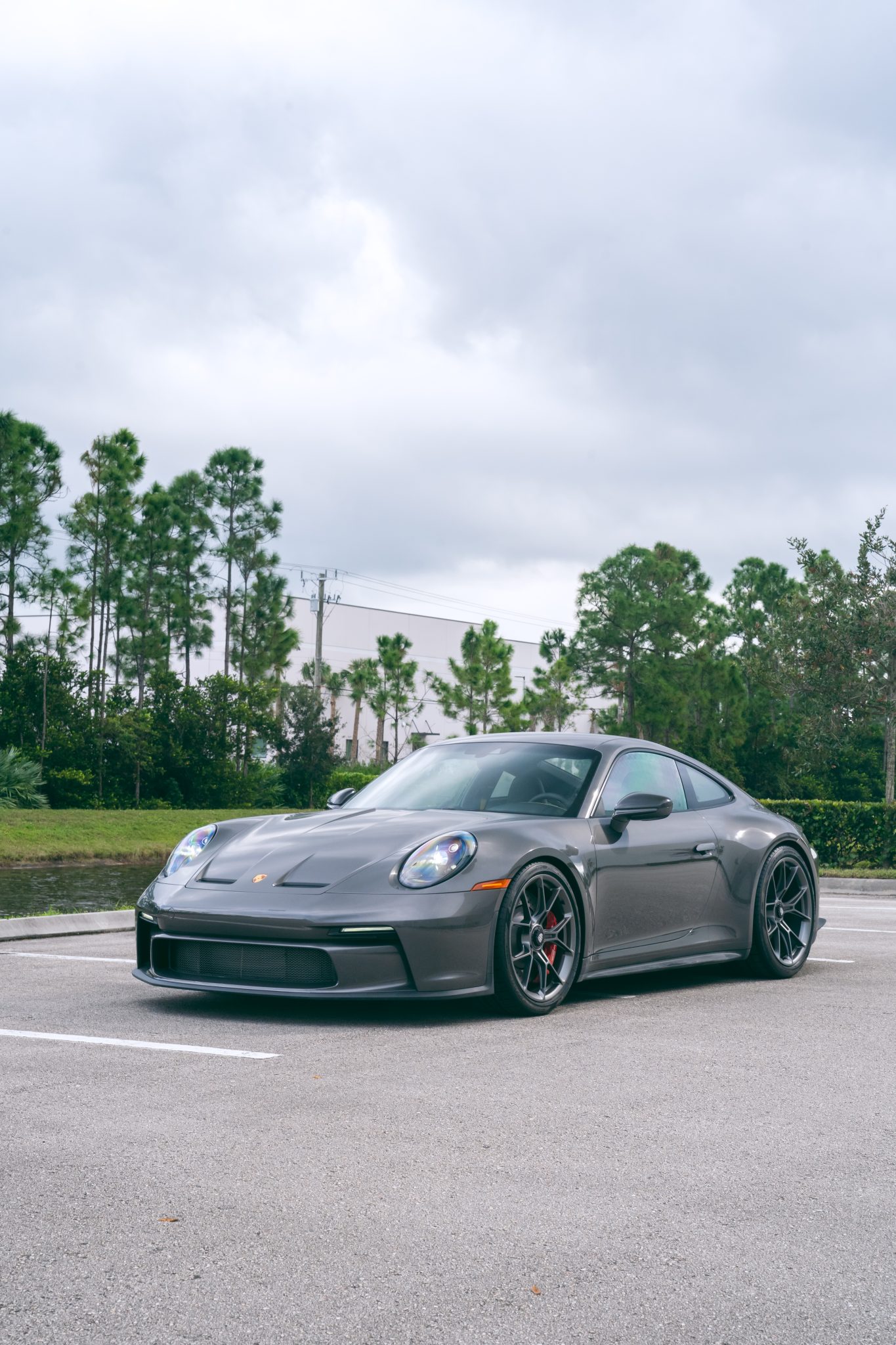 The 20″ front and 21″ rear GT3 center-lock wheels are mounted with Pirelli P Zero tires. Stopping power is provided by dimpled and ventilated discs at each corner. The car is equipped with a front-axle lift system and rear-axle steering.
