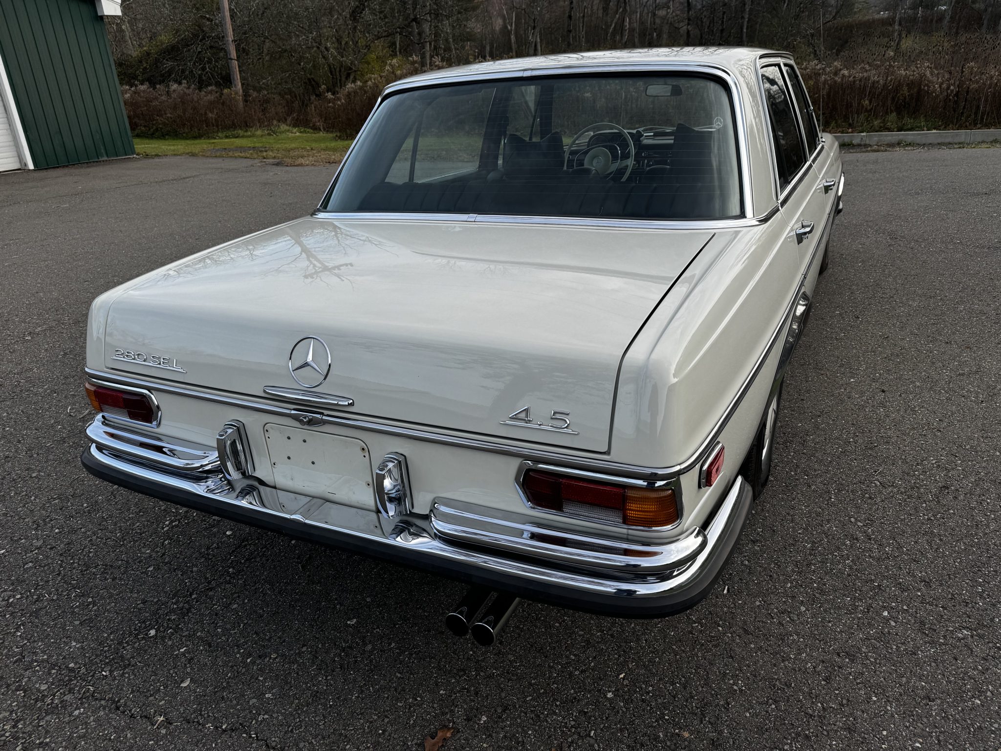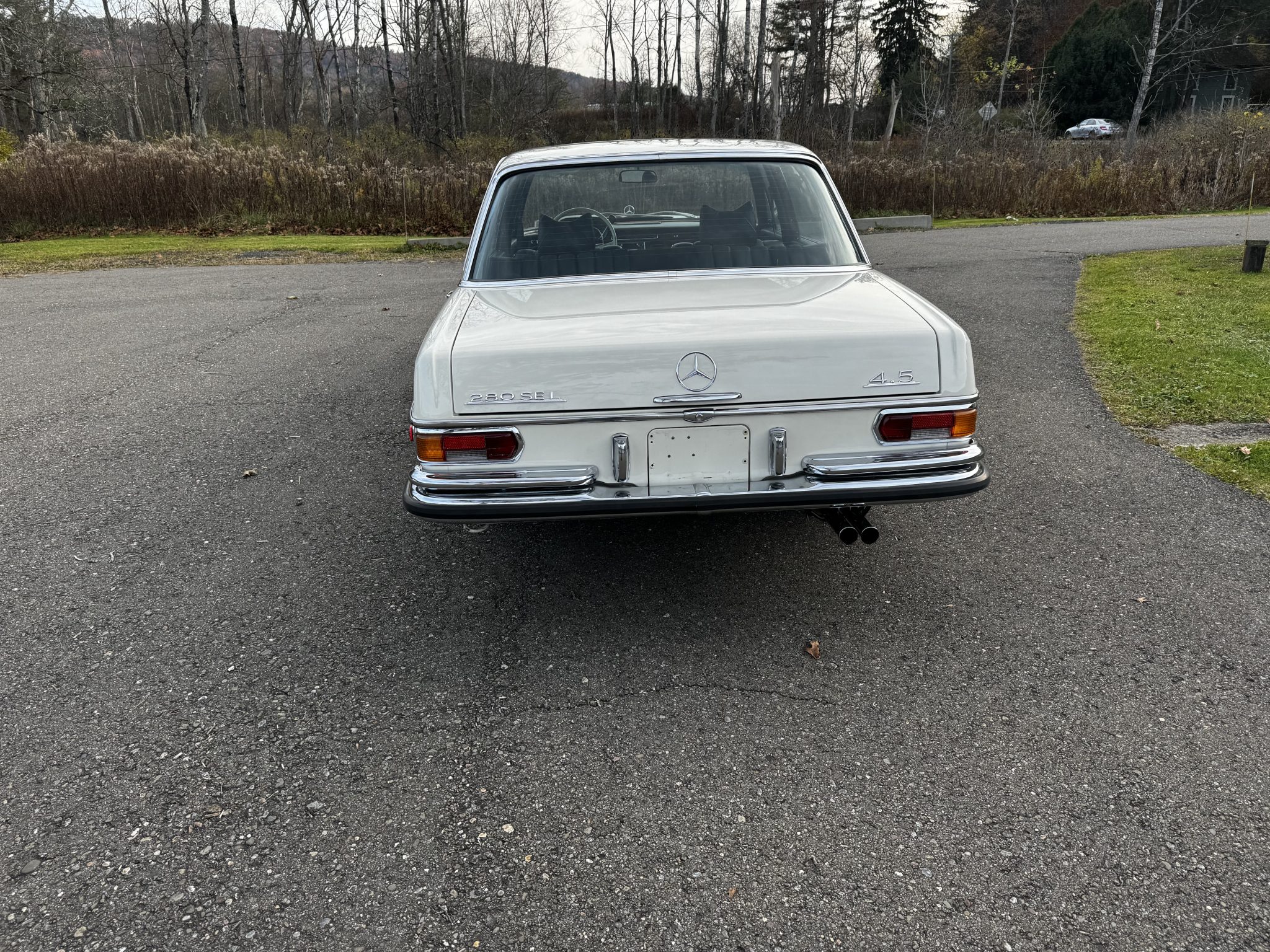 The 14″ steel wheels wear bright-finished covers with body-color centers and were mounted with 205/70 Hankook Kinergy ST tires in April 2024. The selling dealer states that the rear self-leveling suspension was replaced with a coil spring setup. Braking is provided by power-assisted discs at all four corners.