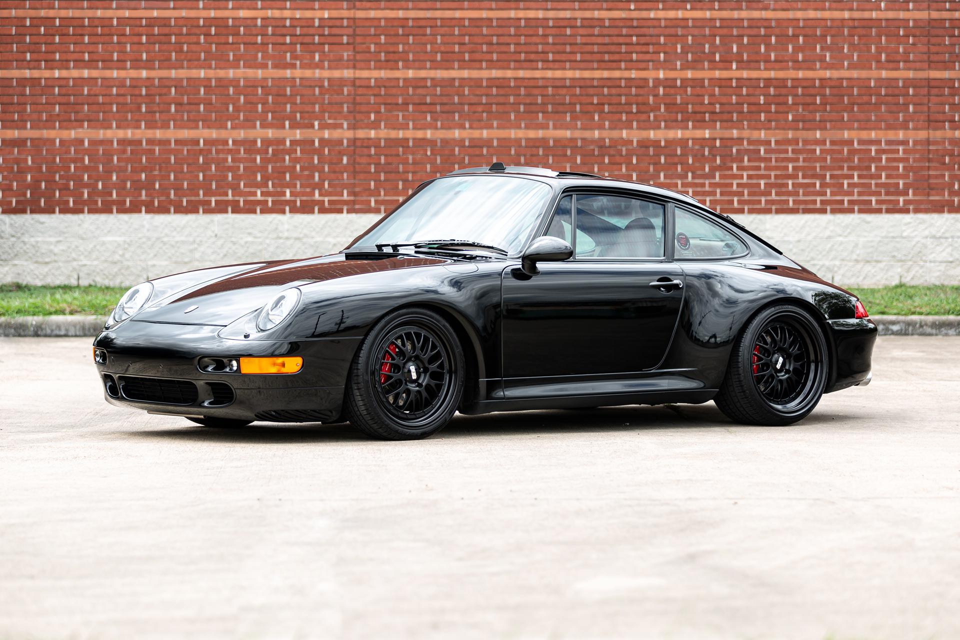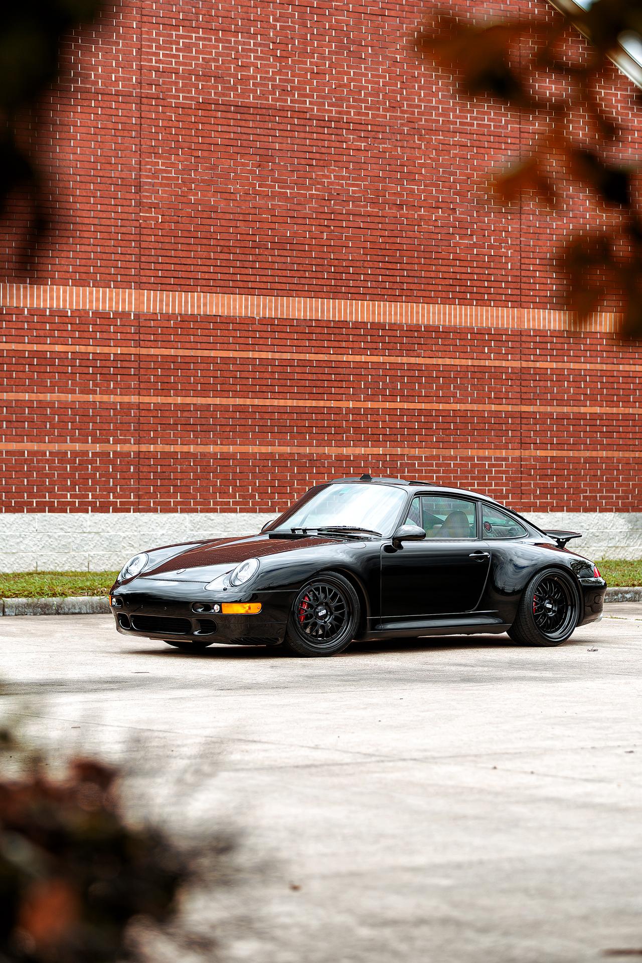 The 18″ BBS E88 multi-piece wheels are finished in black and mounted with 224/40 front and 285/30 rear Pirelli P-Zero Rosso tires. The car rides on Bilstein adjustable coilovers, while braking is handled by four-piston calipers over cross-drilled rotors at all four corners. The wheels were refinished and the brake calipers were painted red in June 2012.